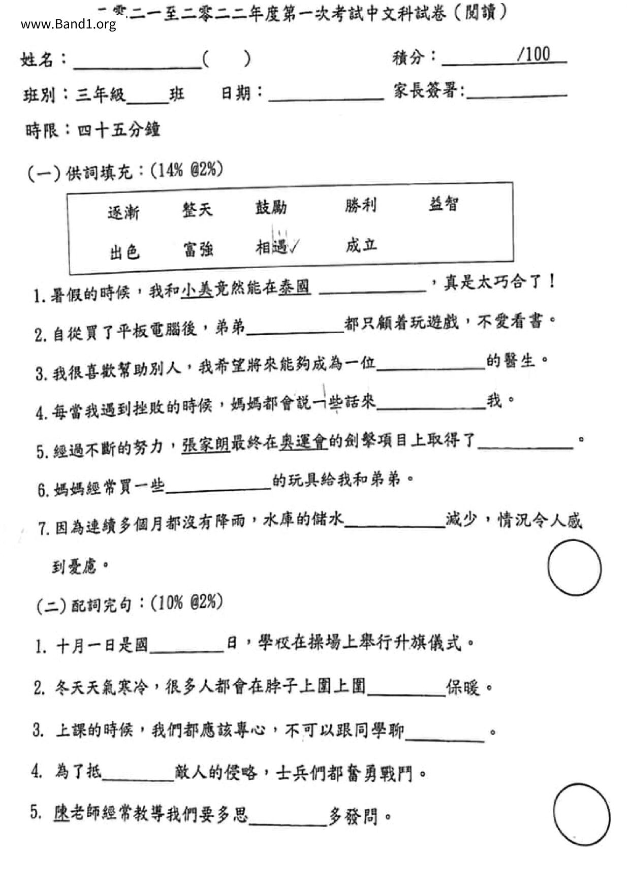 1. 明天要考試,小明感到很憂慮,因為他還沒有準備好。