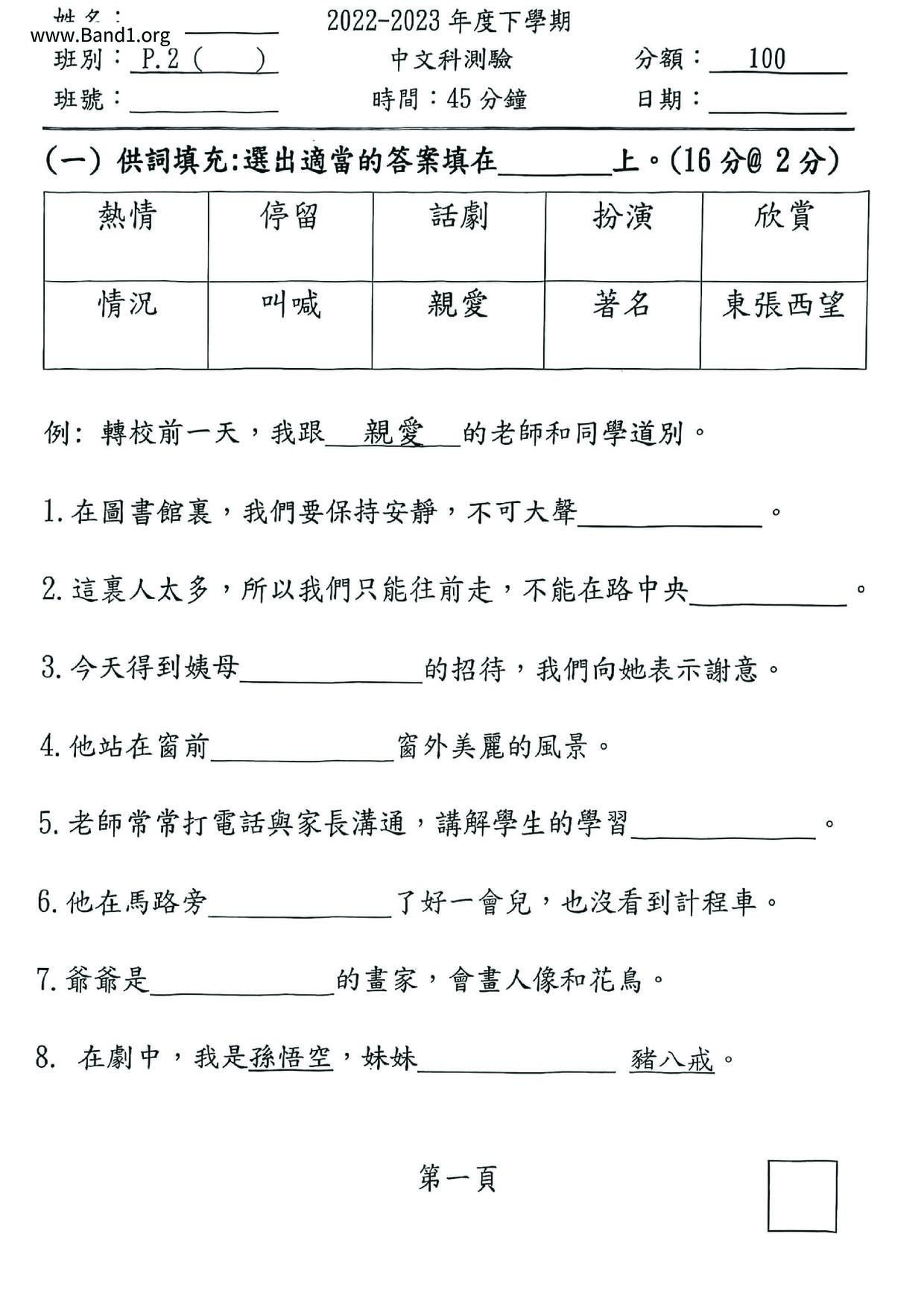 2. 做功課時,不要東張西望,要專心做完每一道題目。