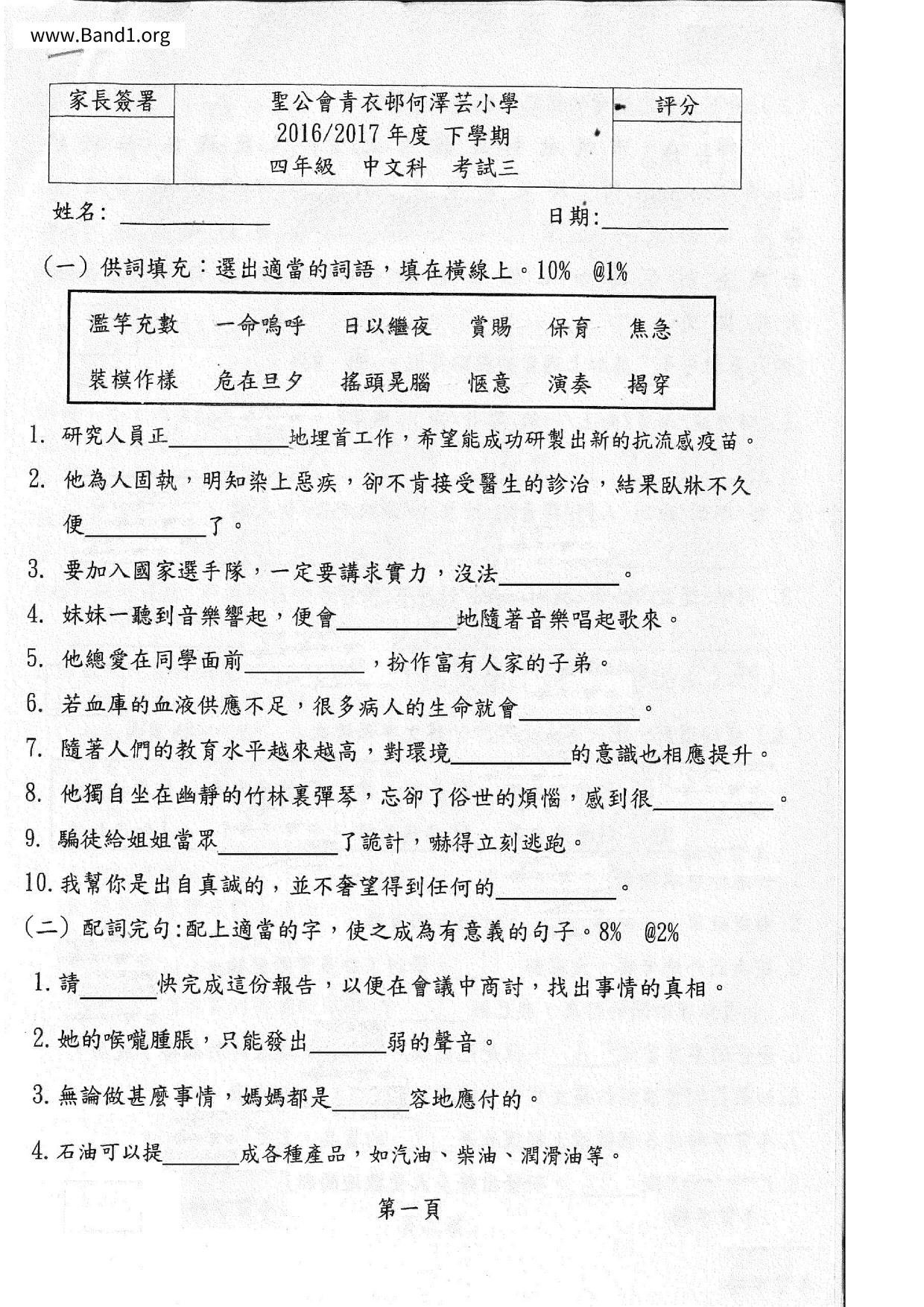 包含「歡笑」的試卷: