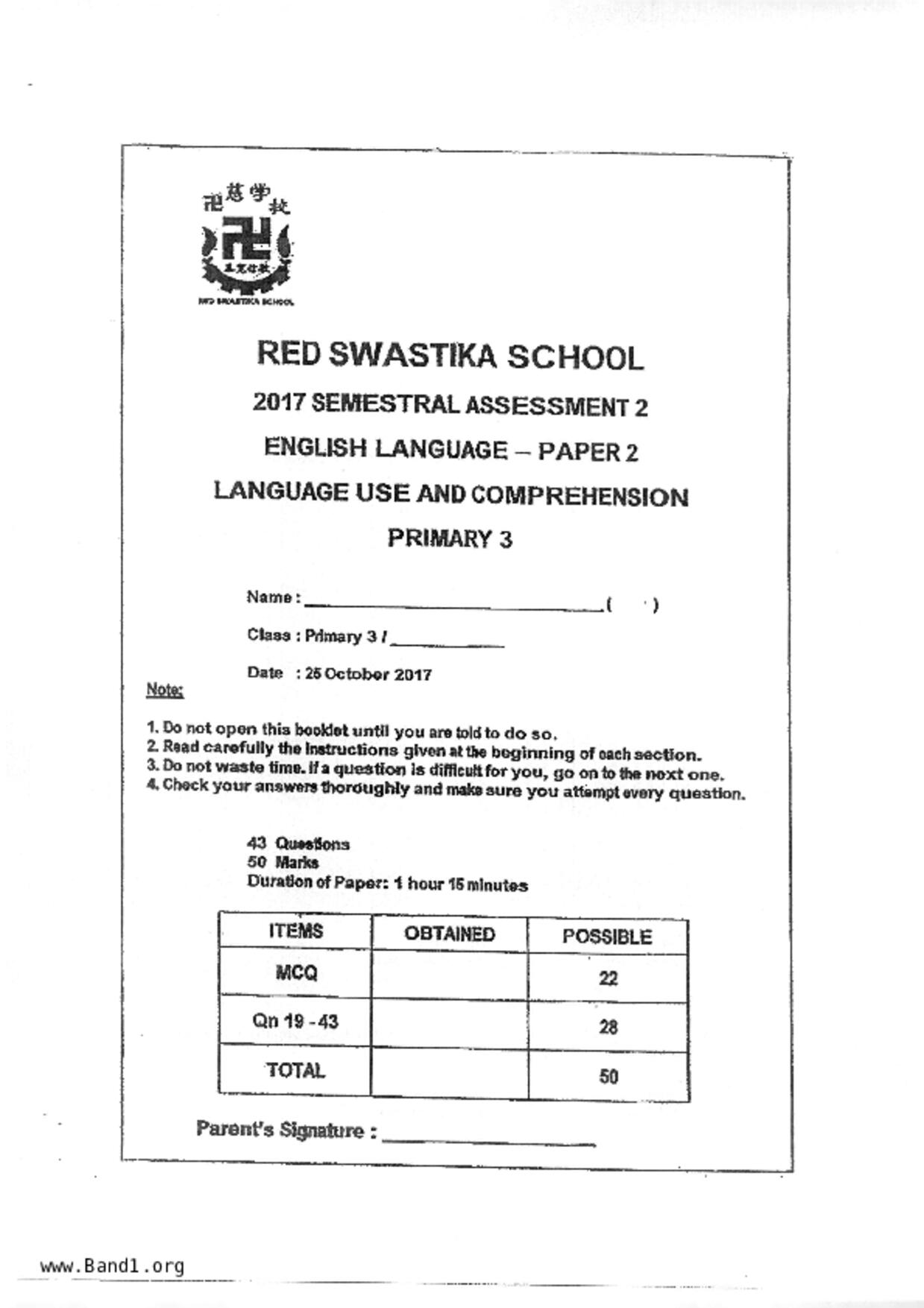 小三 英文 St. Joseph's Institution