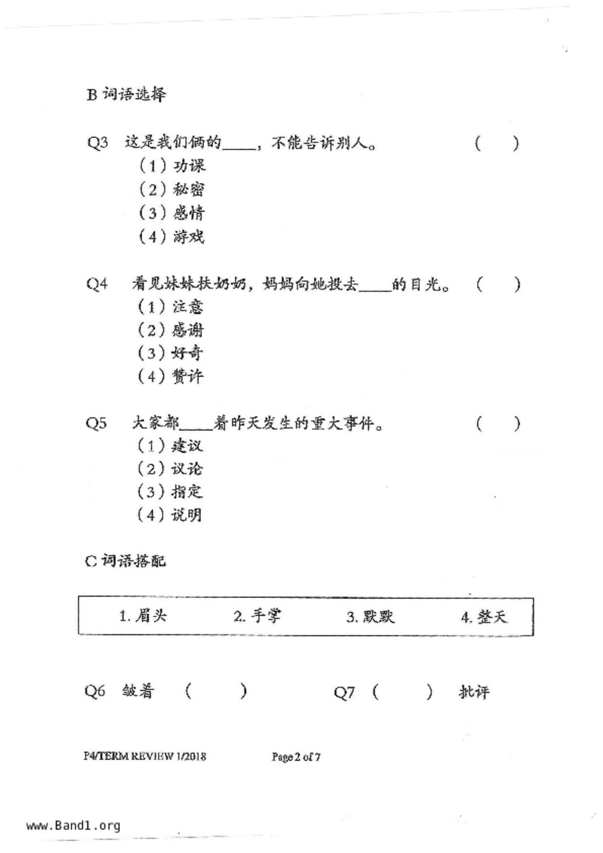 新加坡 中小學 中文 (SG Chinese) 試卷 pdf