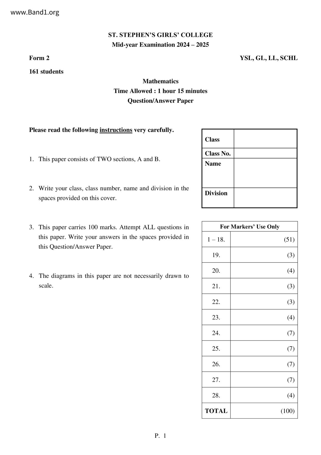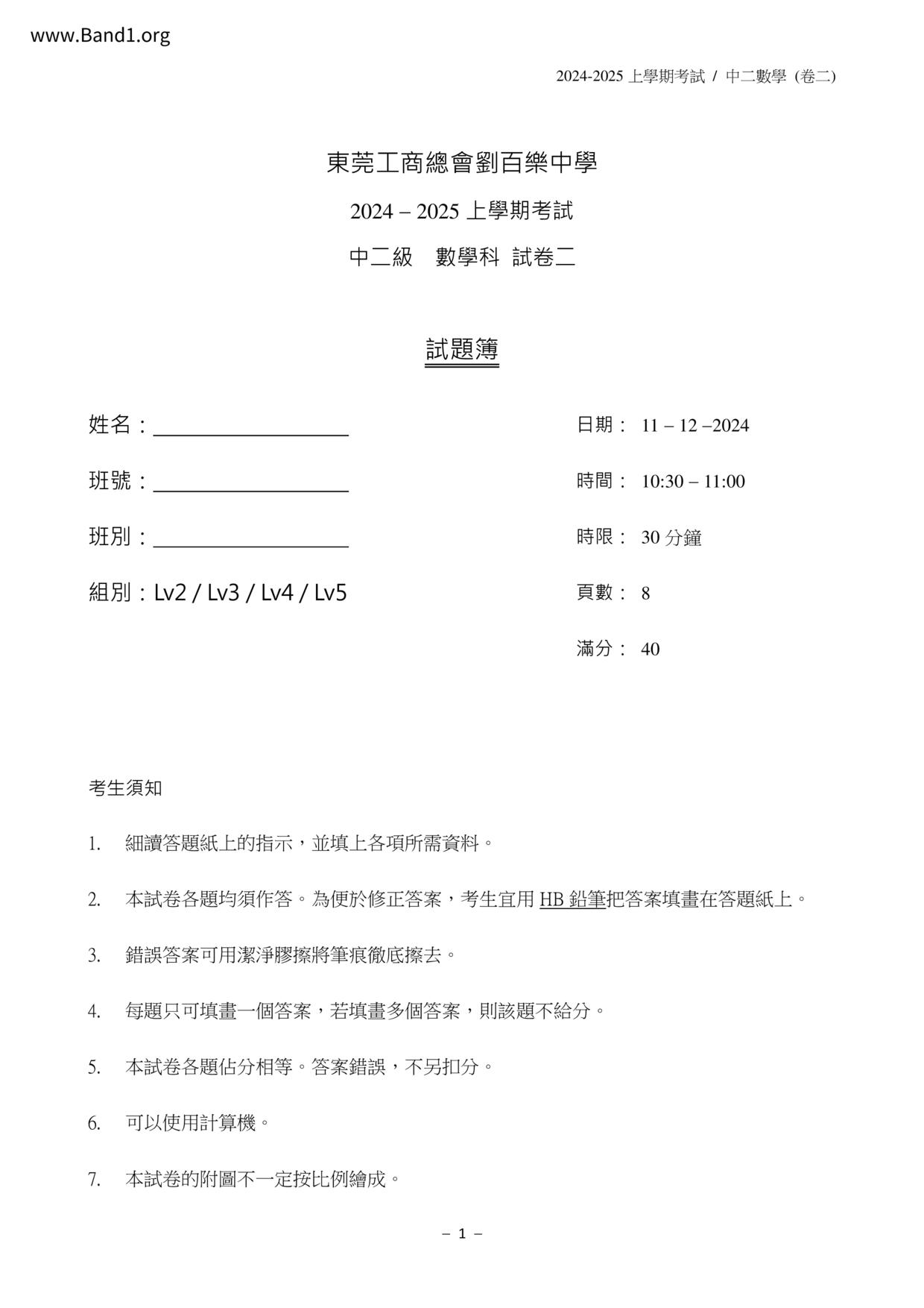 香港 中二 各科 (HK F2 maths) 試卷 pdf