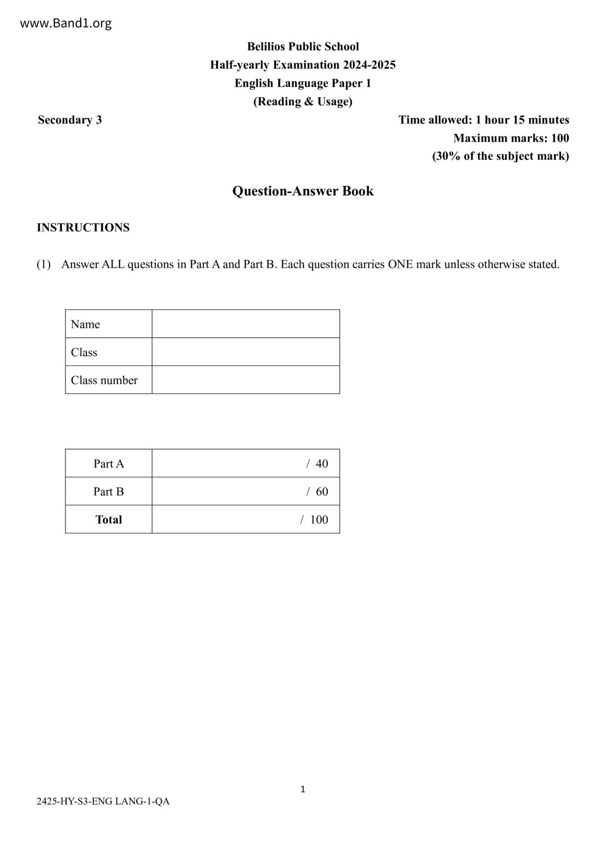中三 中文 浸信會呂明才中學