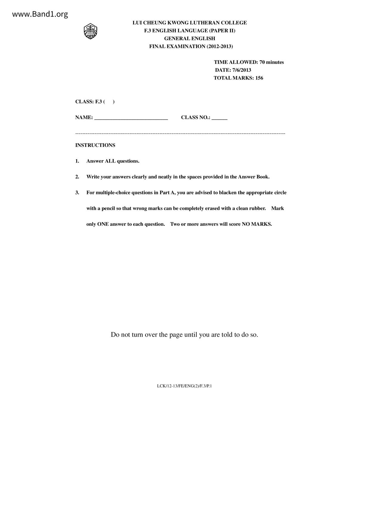 中三 英文 路德會呂祥光中學