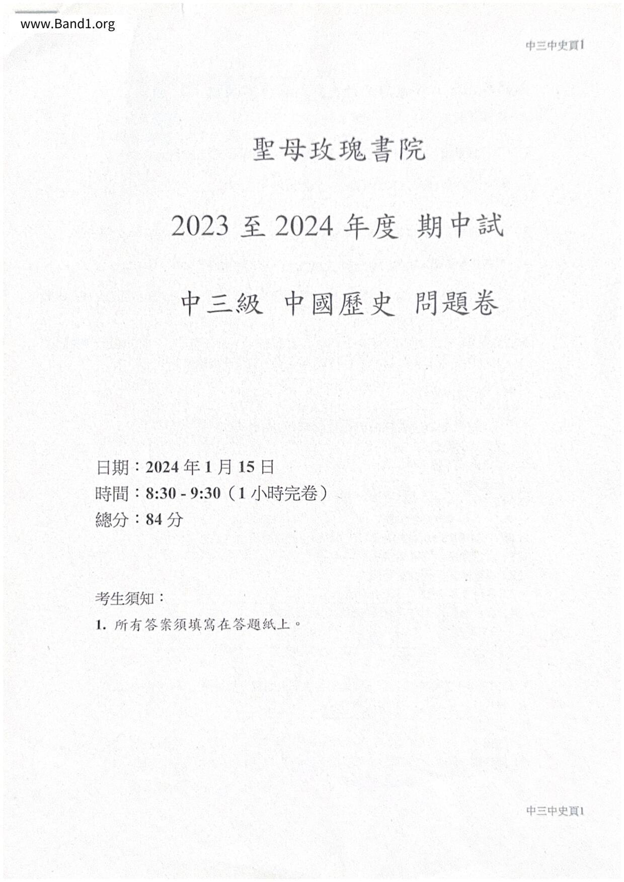 中三 中史 聖母玫瑰書院