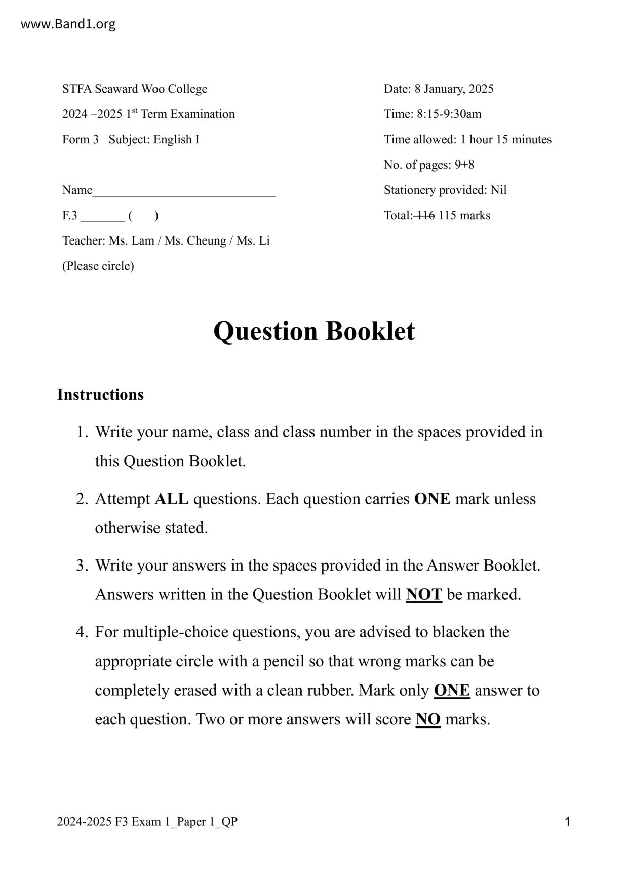 香港 中三 英文 (HK F3 English) 試卷 pdf