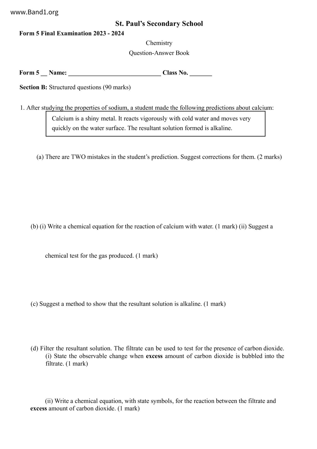 中四 化學 聖保羅書院