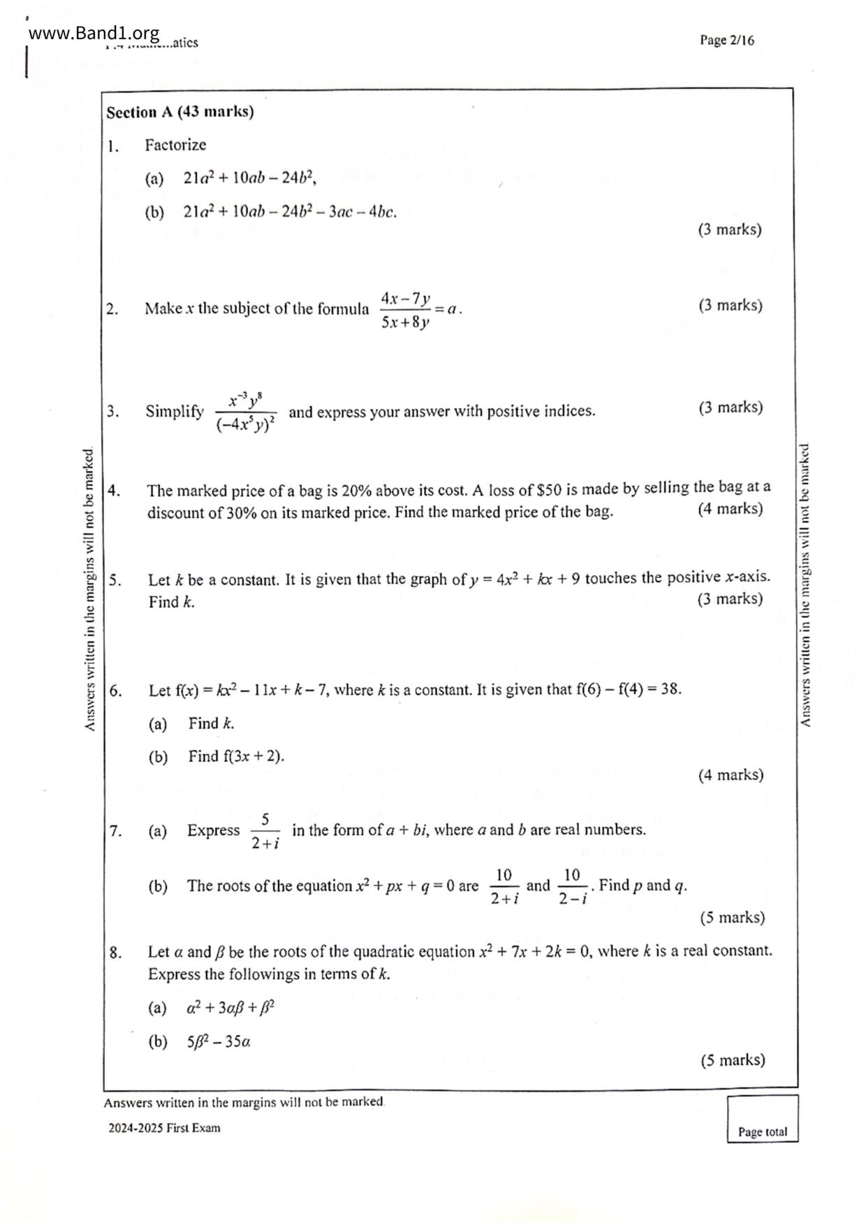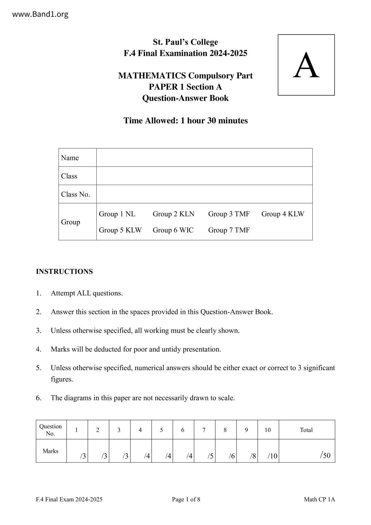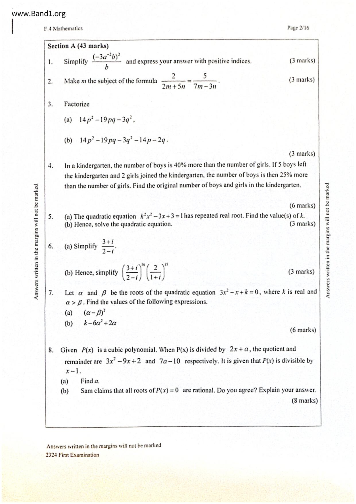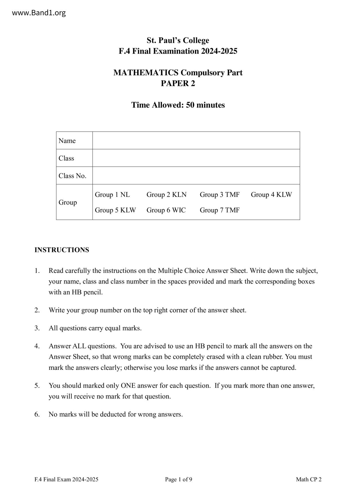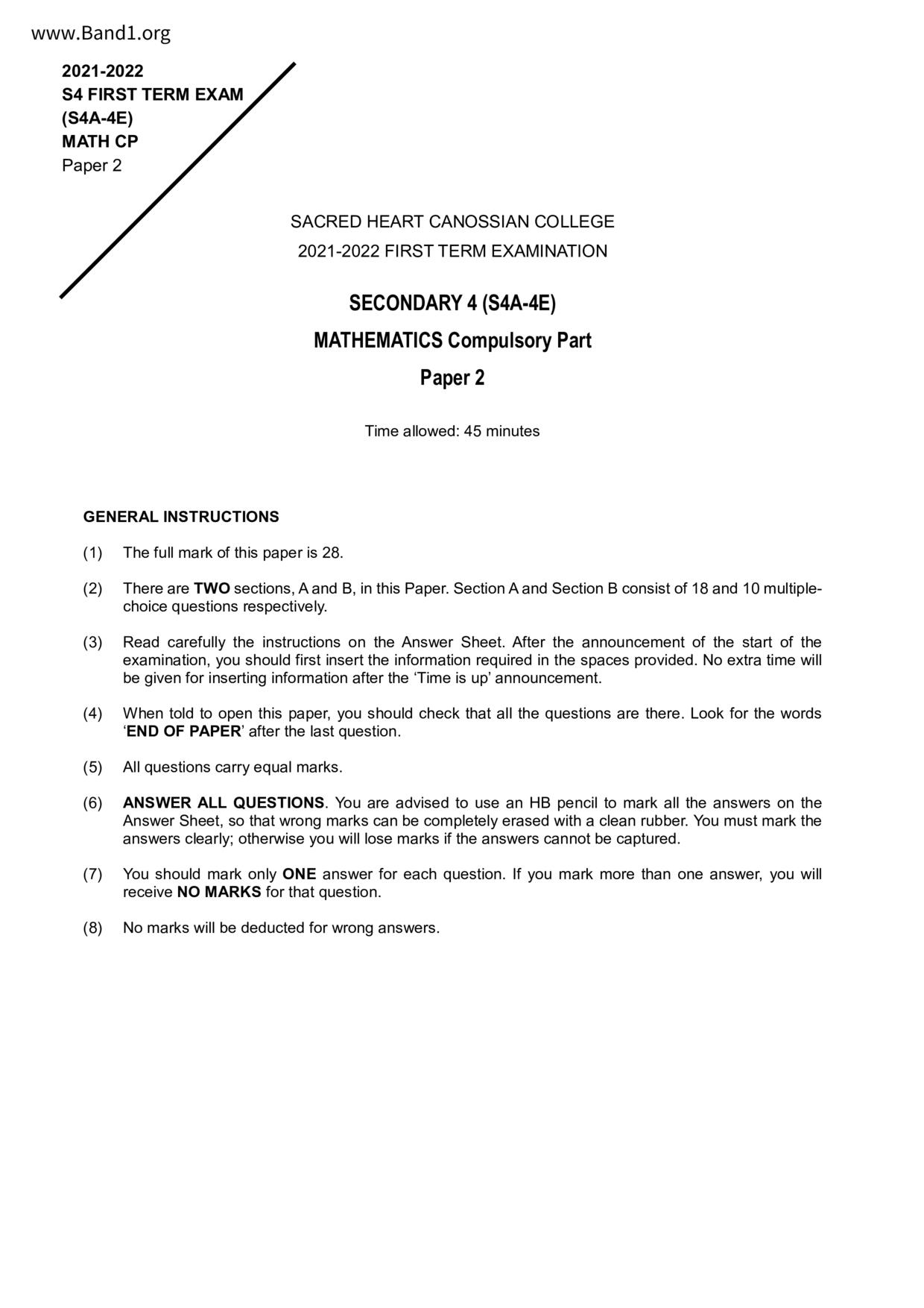 中四 數學 聖保羅書院