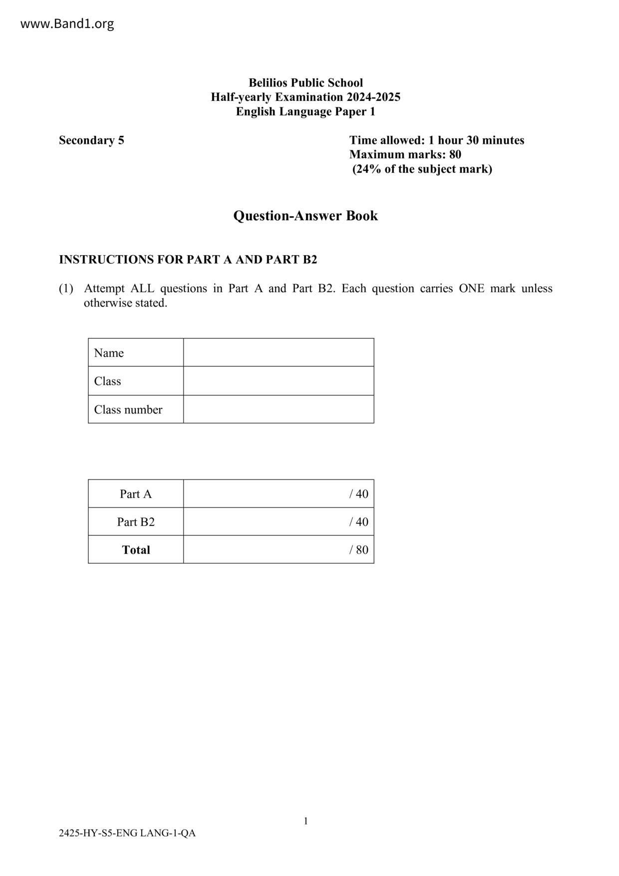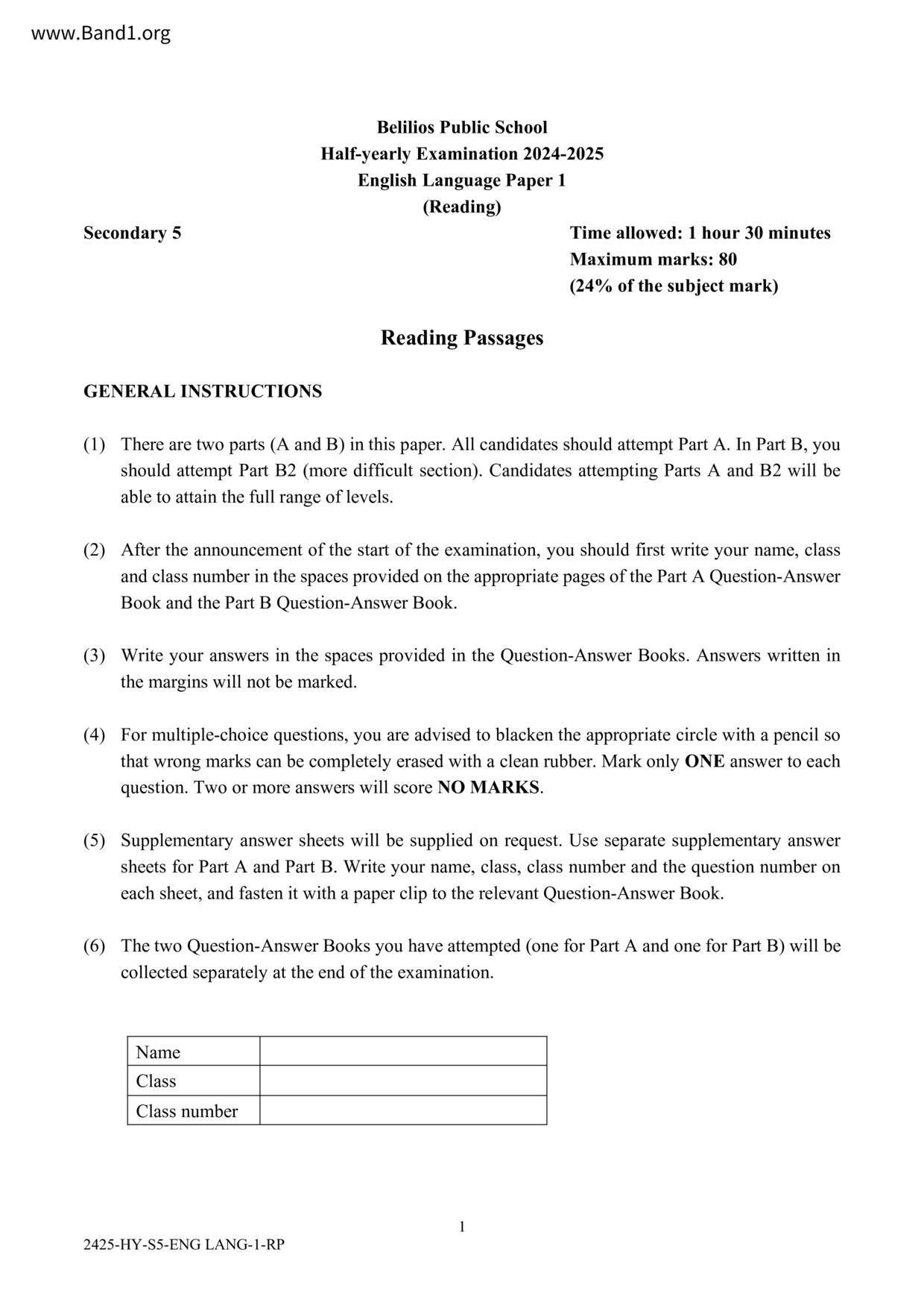 中五 中文 嗇色園主辦可譽中學暨可譽小學