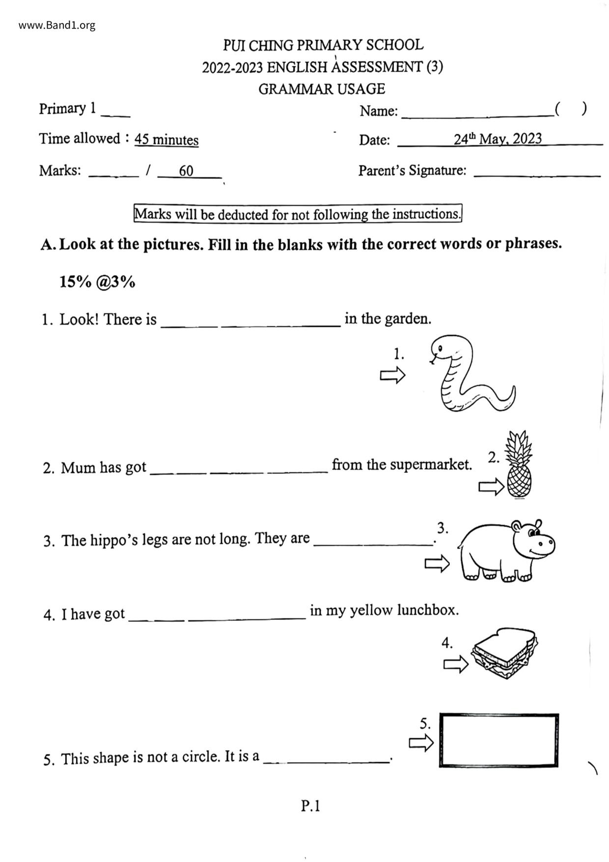 小一 英文 (P1 English)