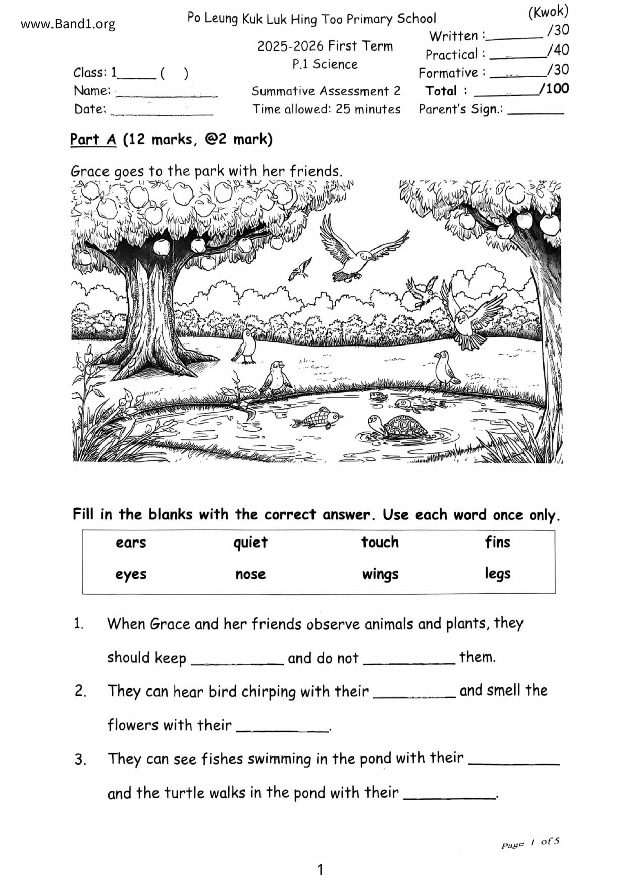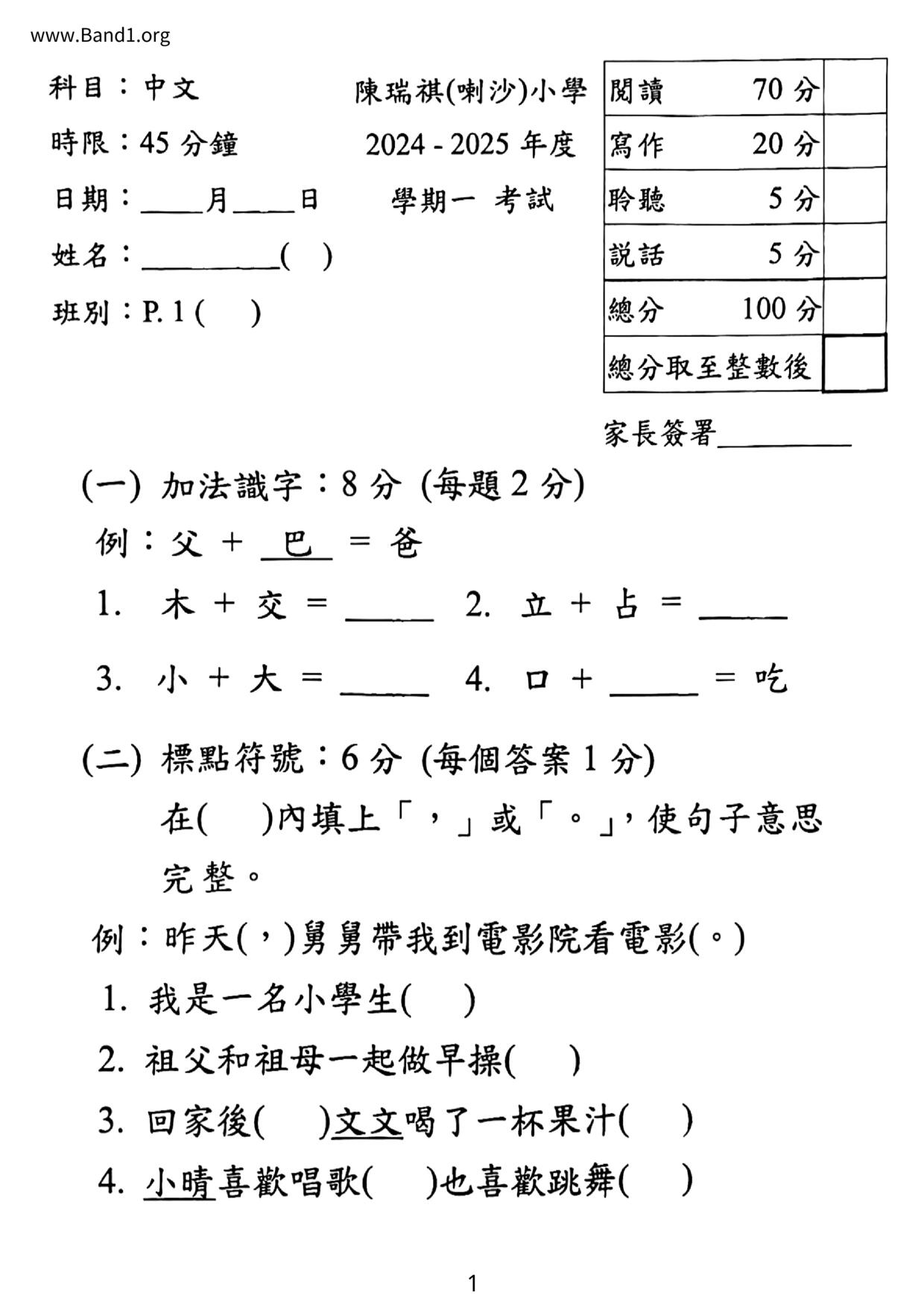 香港 小一 各科 (HK P1) 試卷 pdf