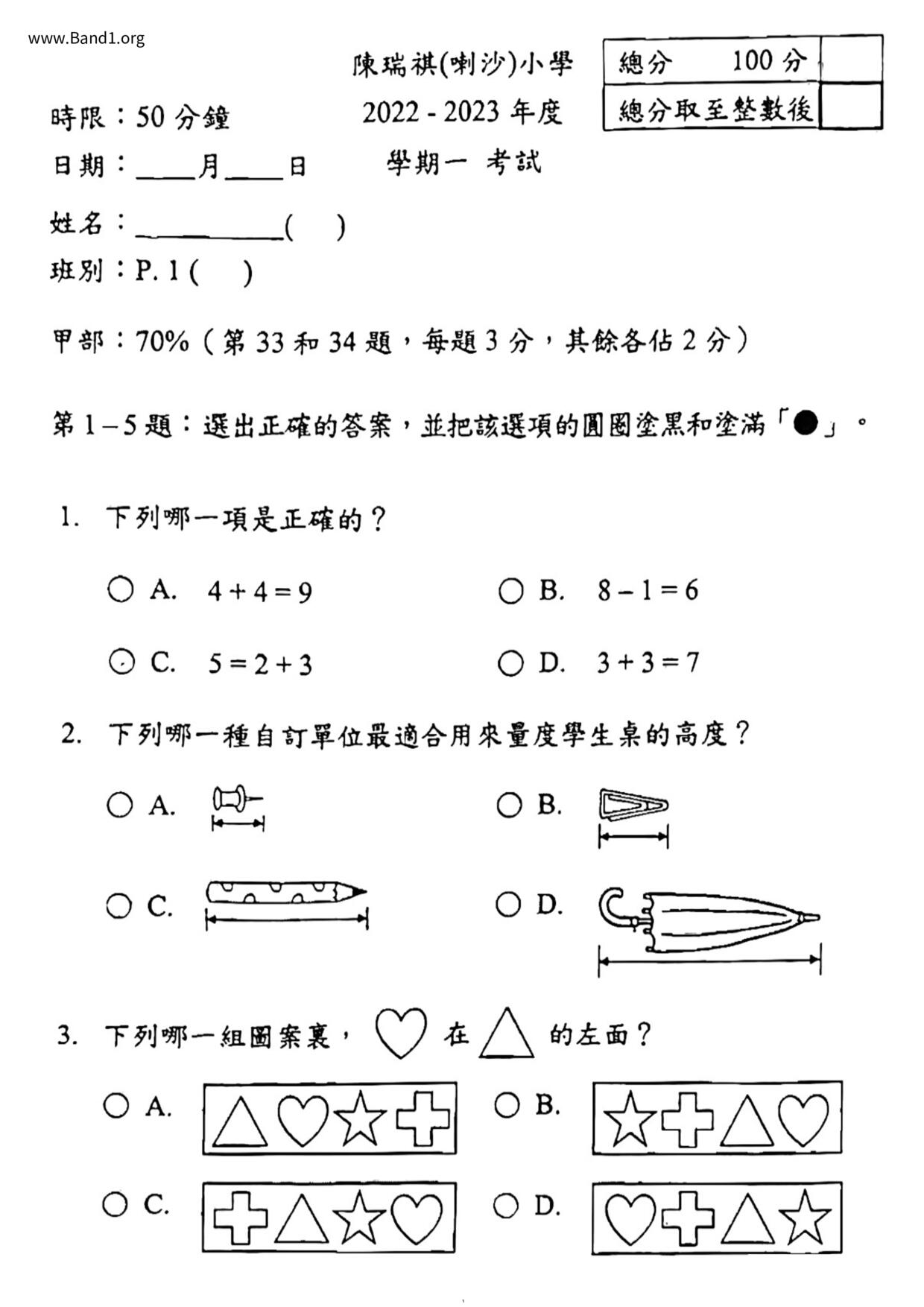 小一 數學 (P1 Maths)