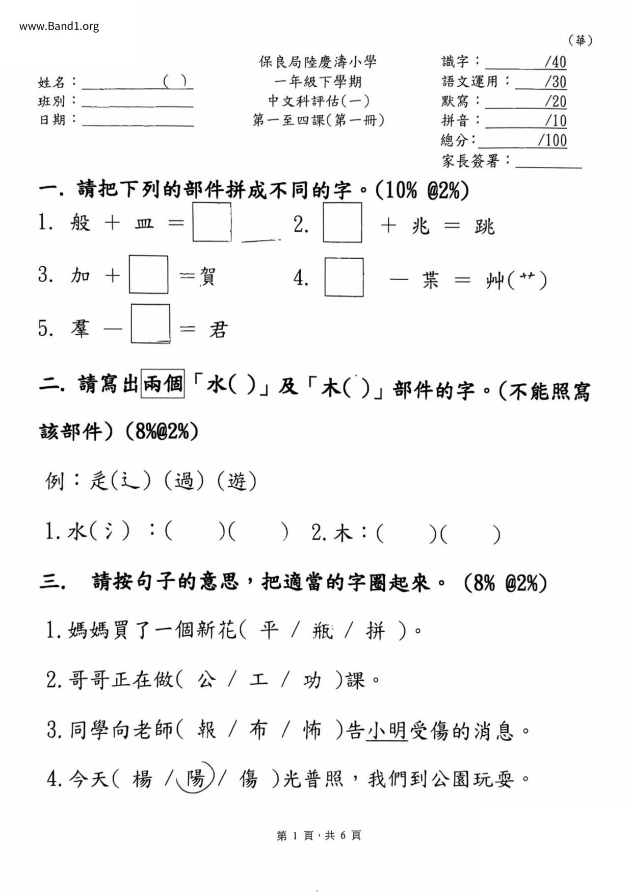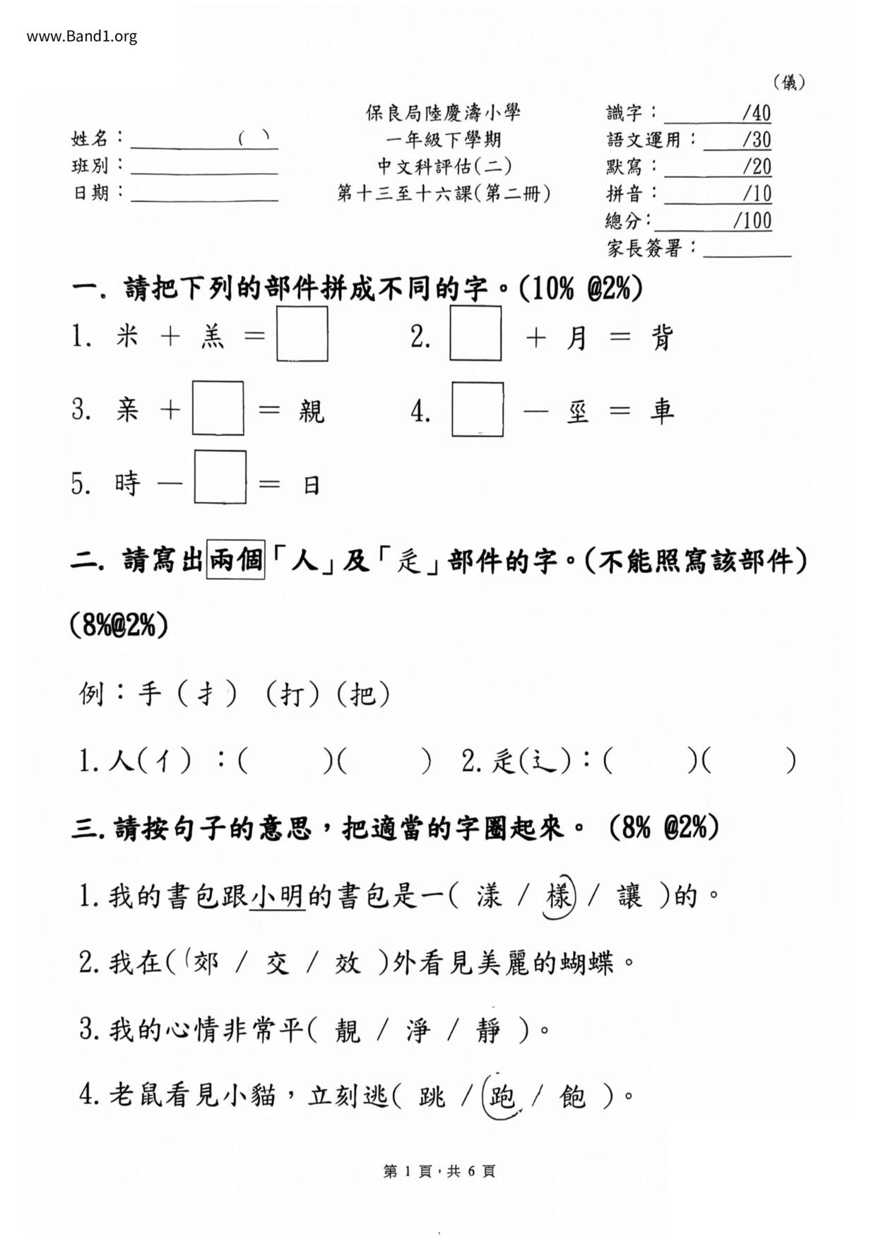 小一 中文 (P1 Chinese)