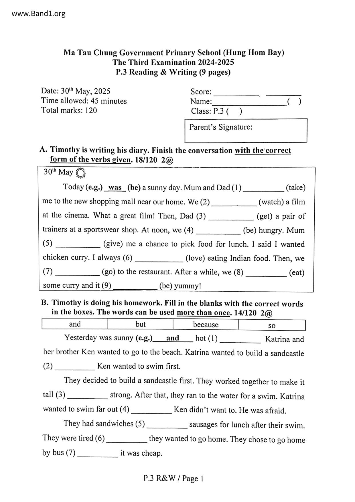 香港 小三 英文 (HK P3 English) 試卷 pdf