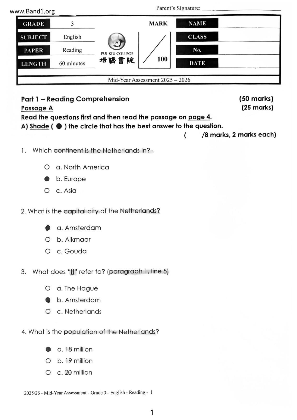 新加坡試卷