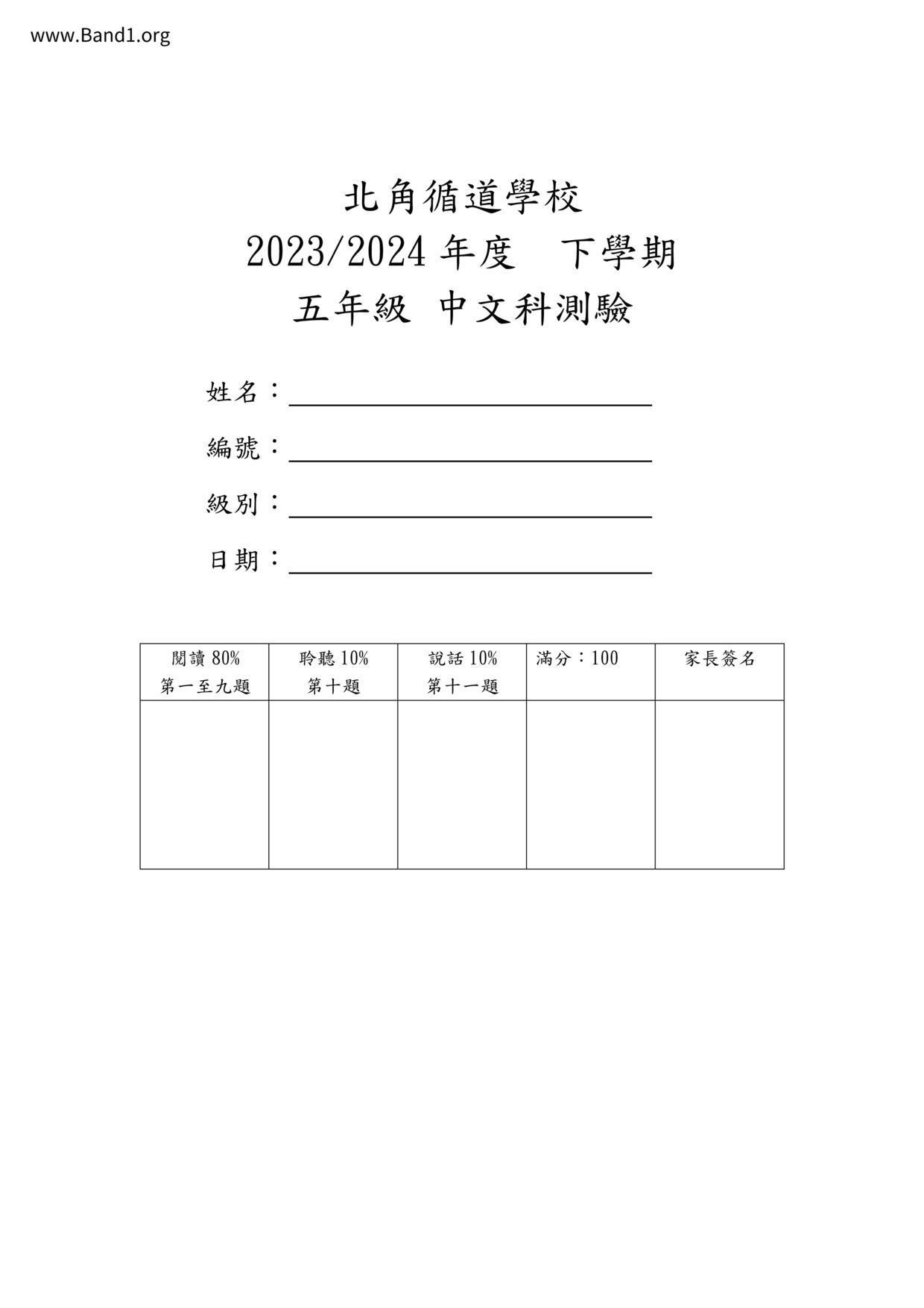 小五 中文 中華基督教會基灣小學(愛蝶灣)