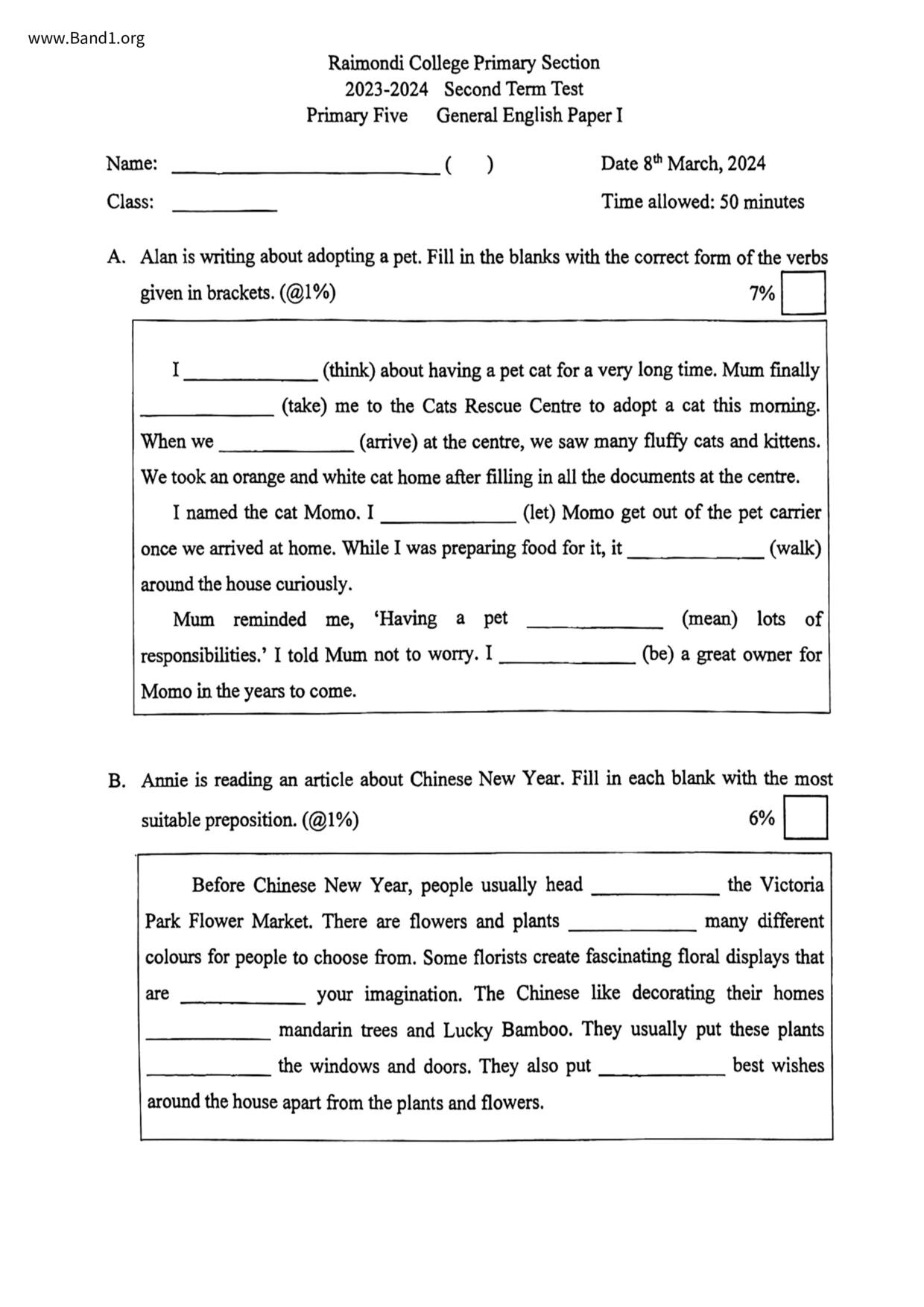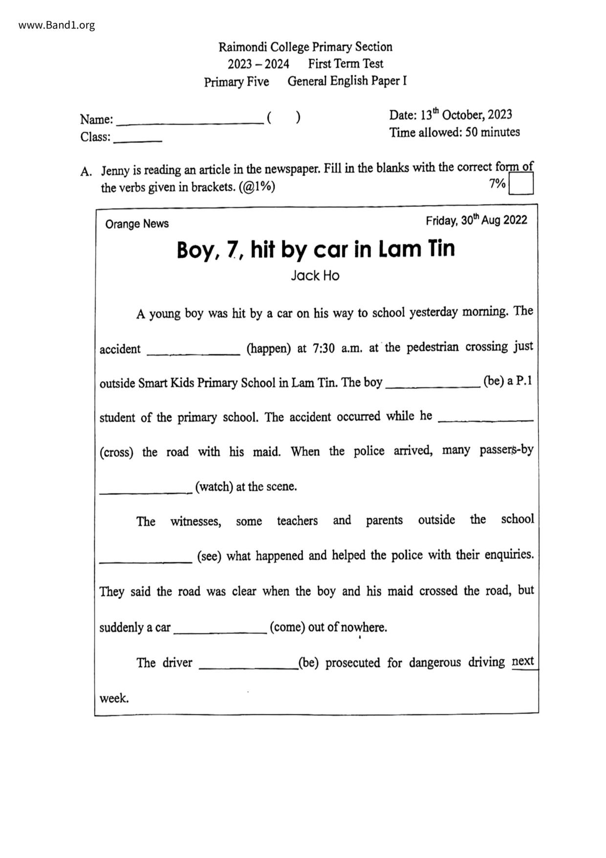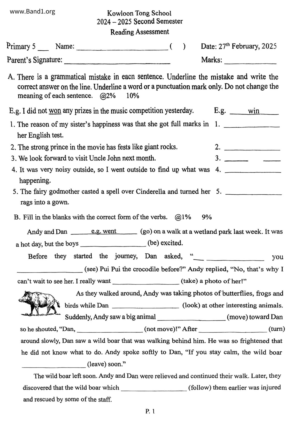 小五 英文 馬頭涌官立小學(紅磡灣)