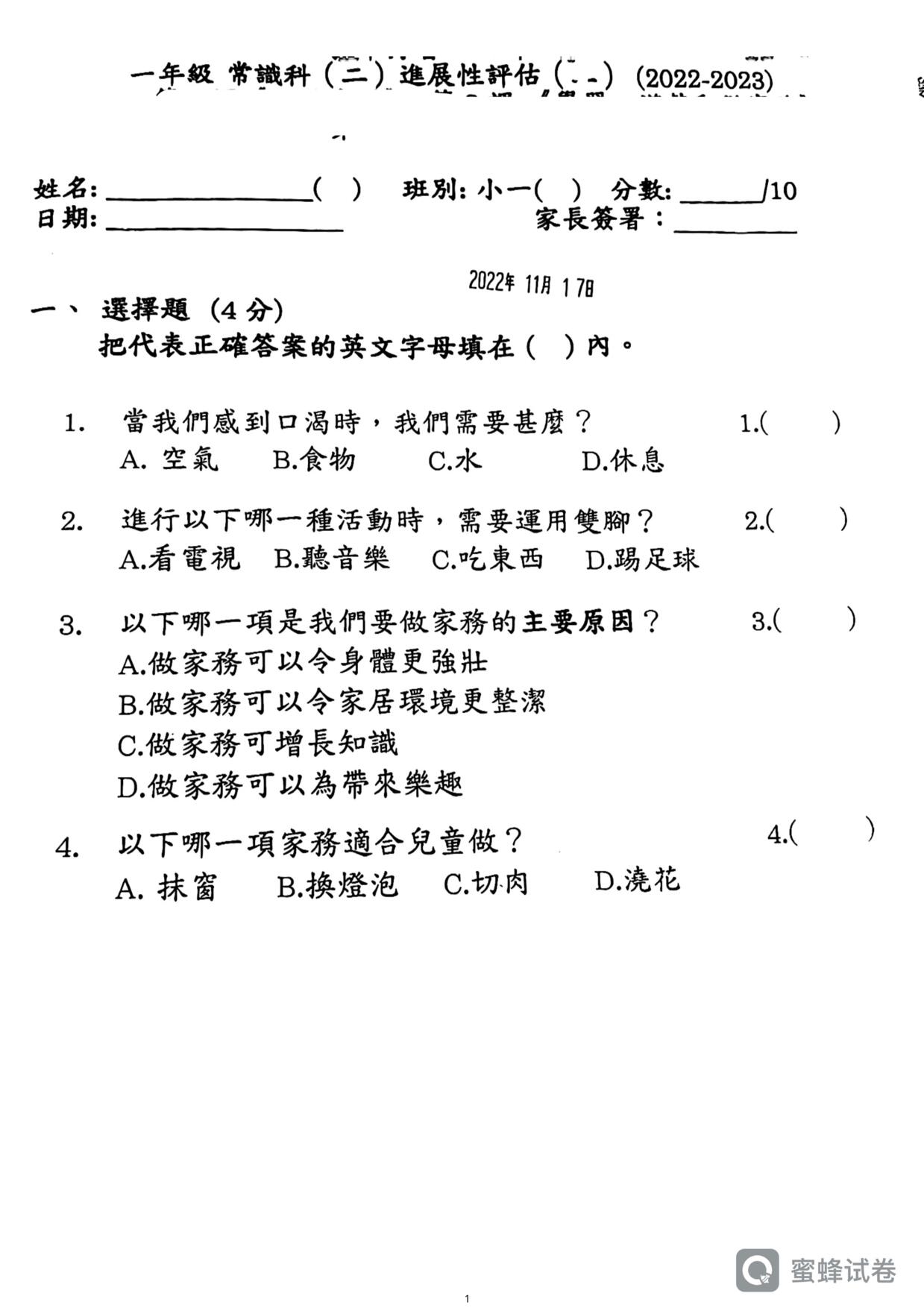 小一 常識 香港九龍塘基督教中華宣道會台山陳元喜小學