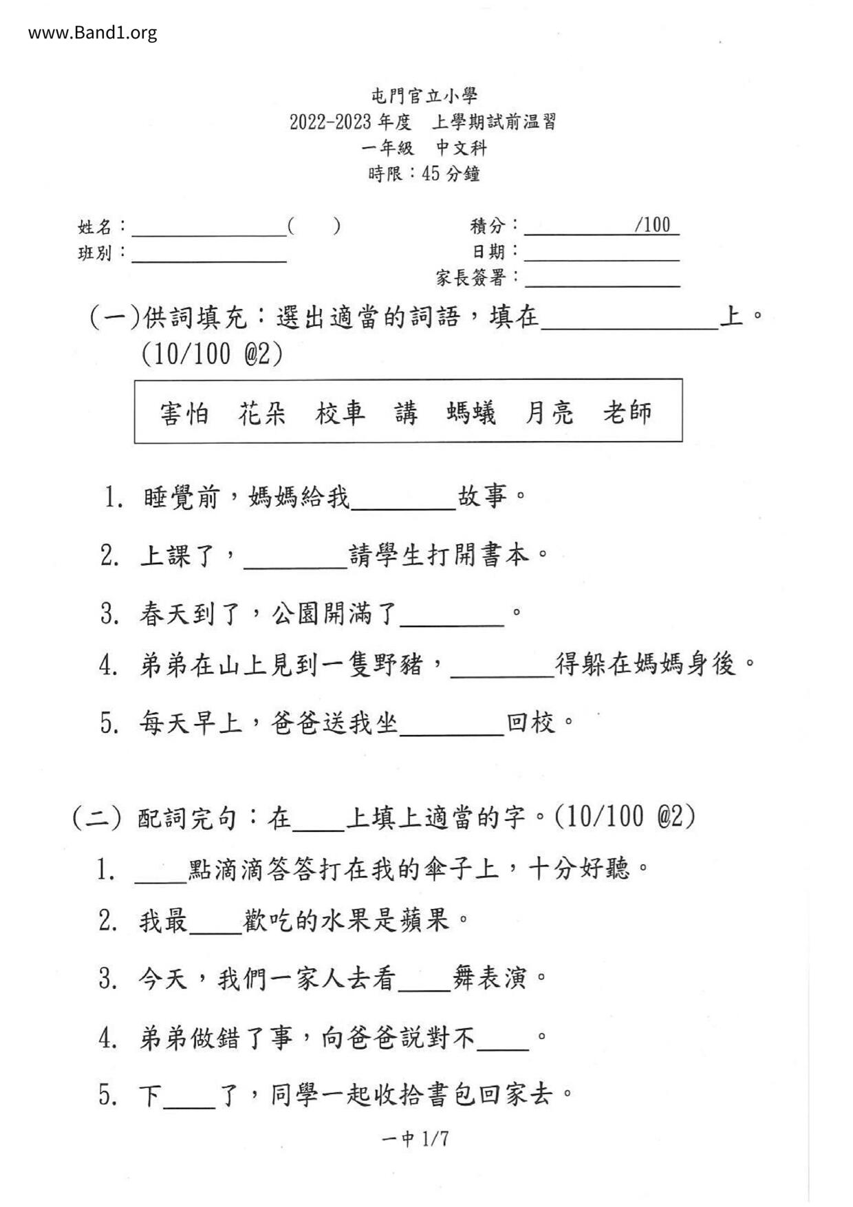 小一 中文 馬頭涌官立小學(紅磡灣)