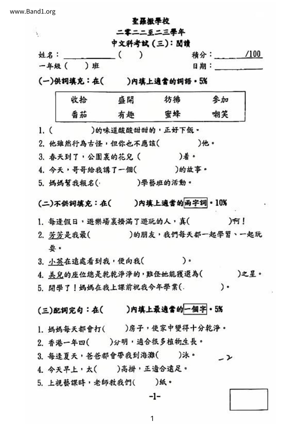 小一 中文 基督教香港信義會馬鞍山信義學校