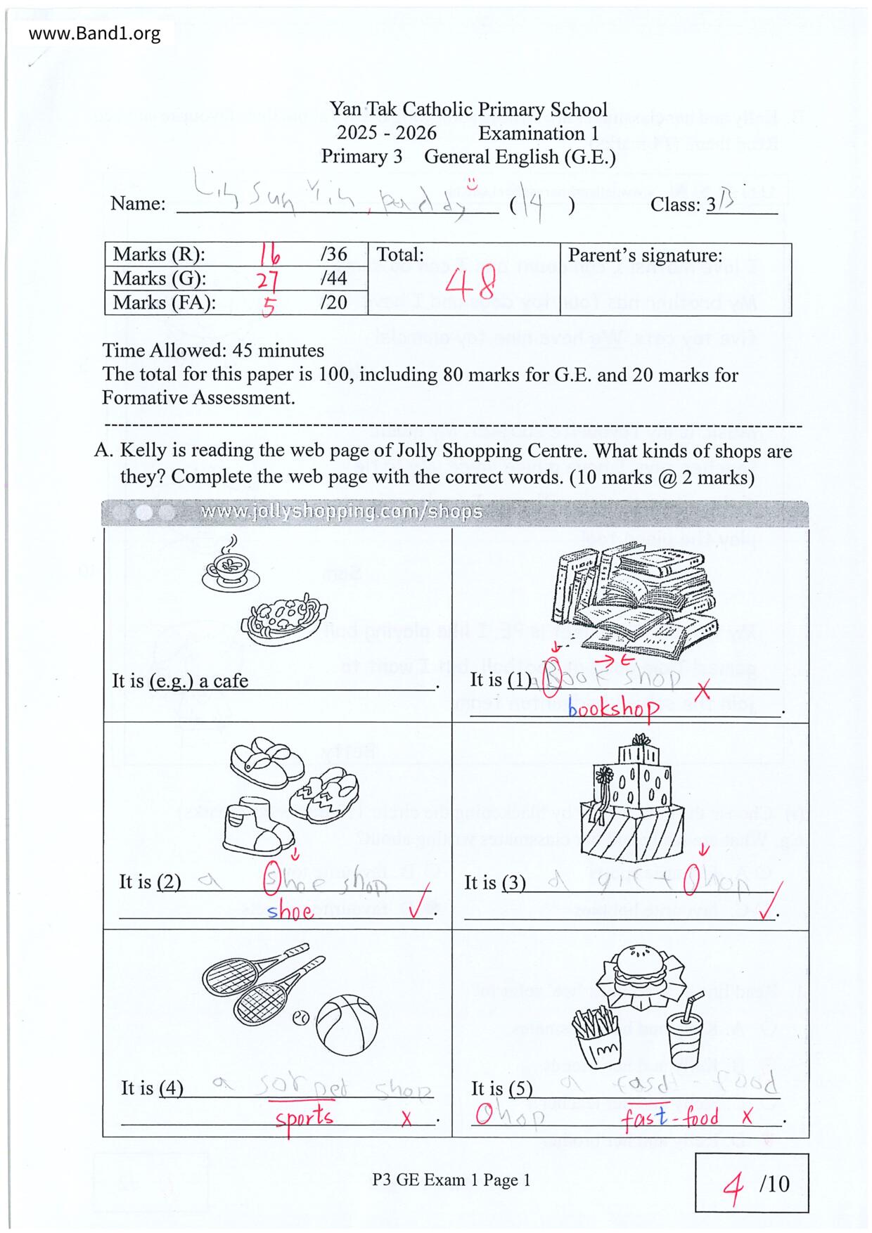 小三 英文 中華基督教會灣仔堂基道小學(九龍城)