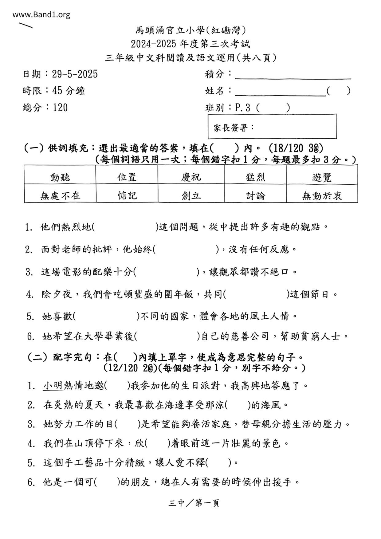 小三 中文 馬頭涌官立小學(紅磡灣)