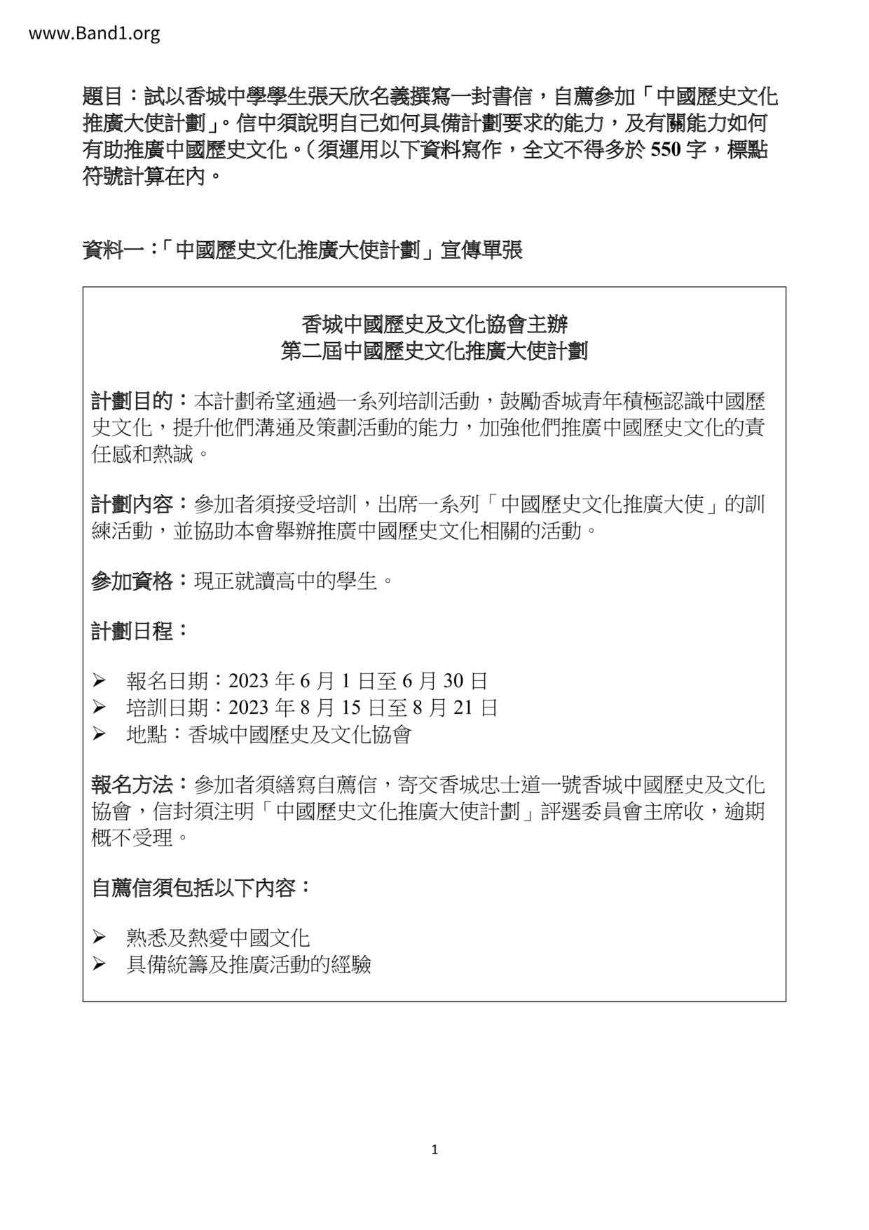 中五 中文 風采中學(教育評議會主辦)