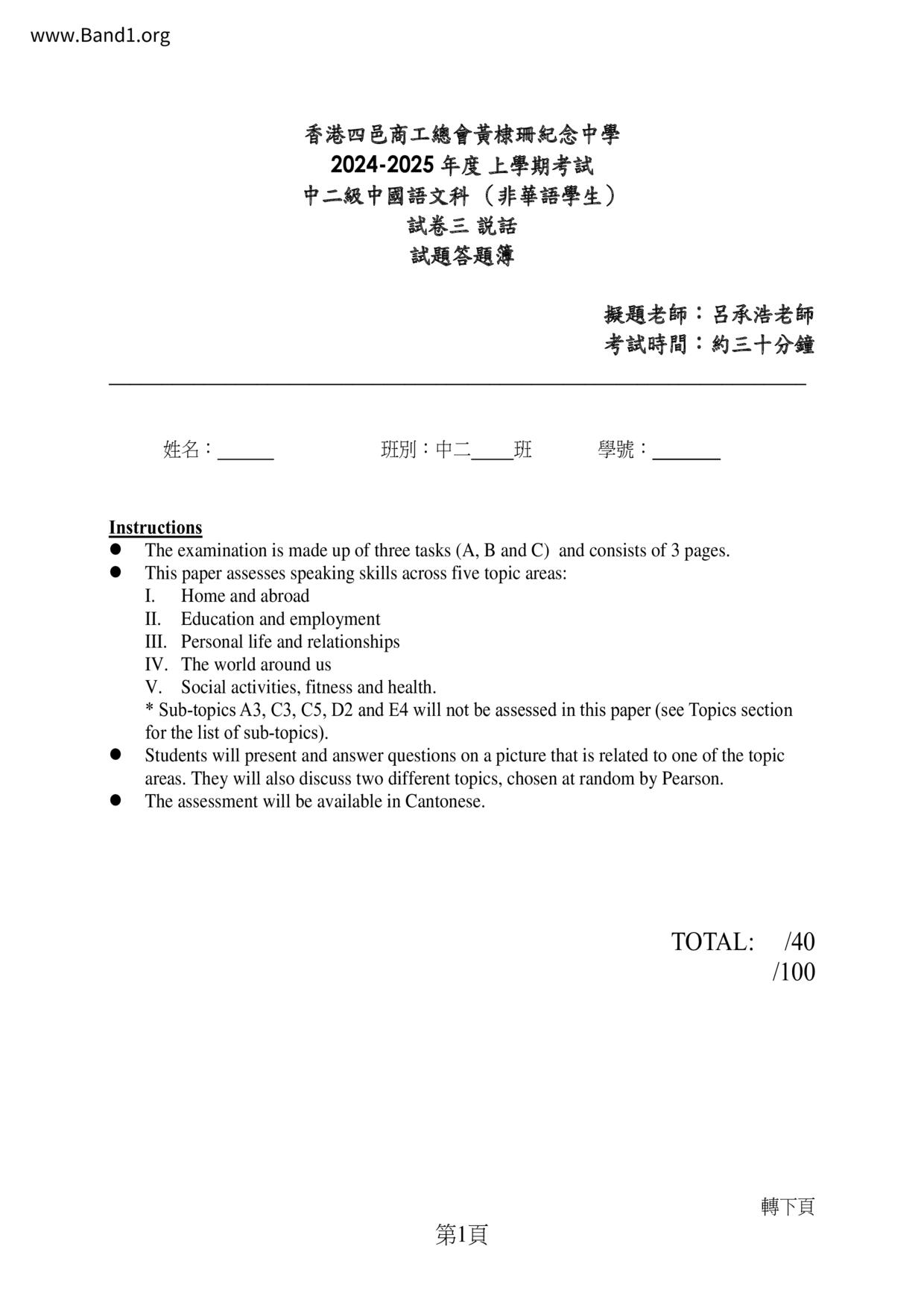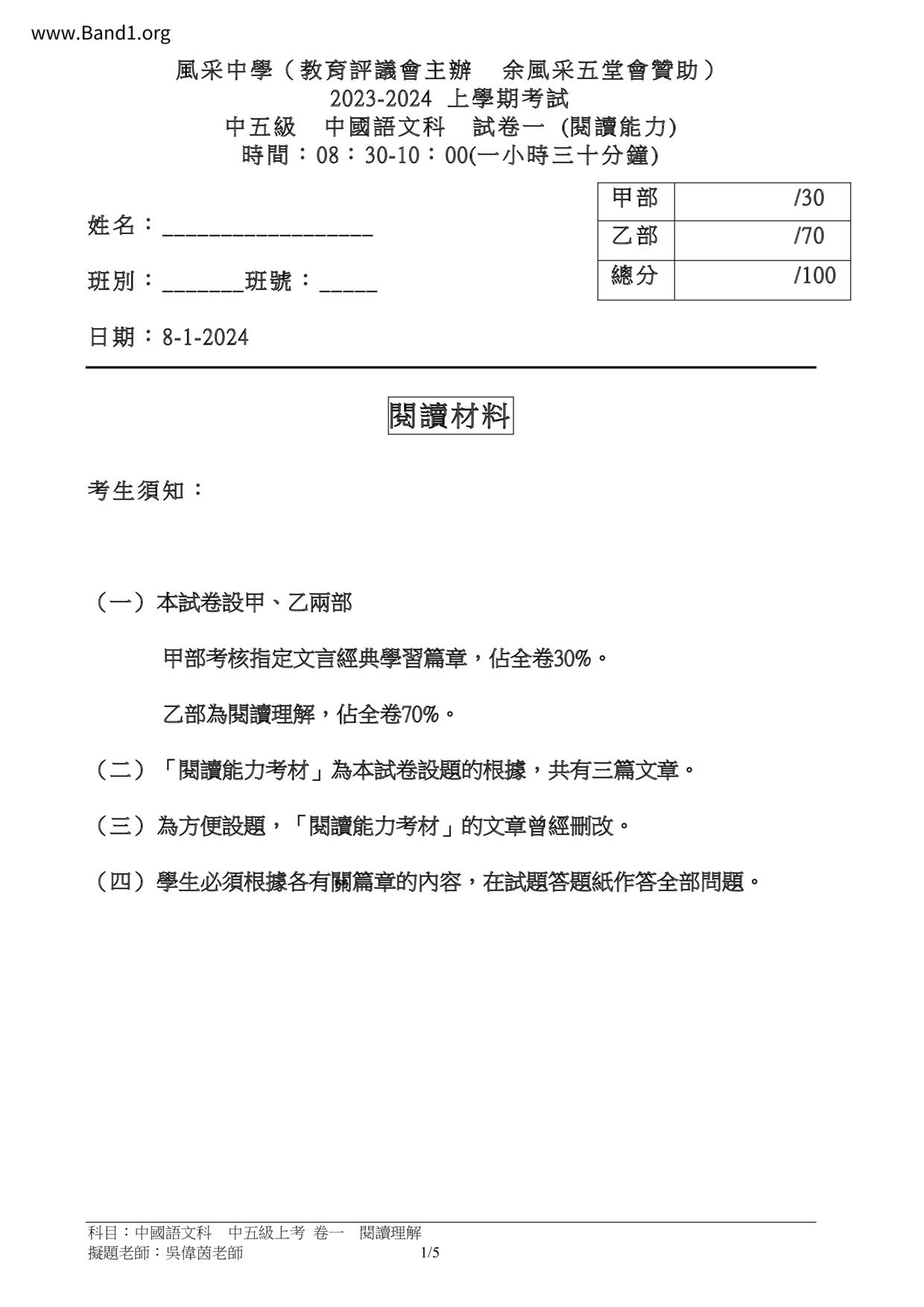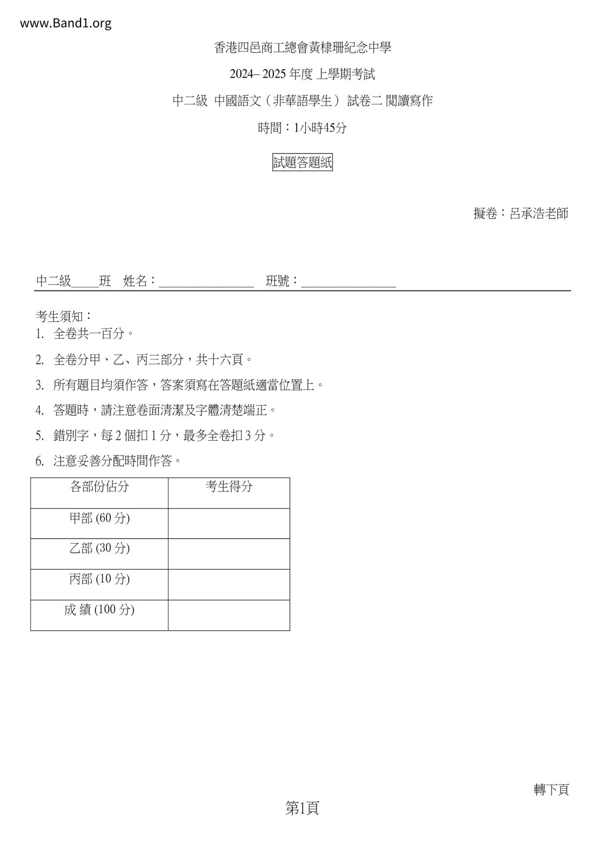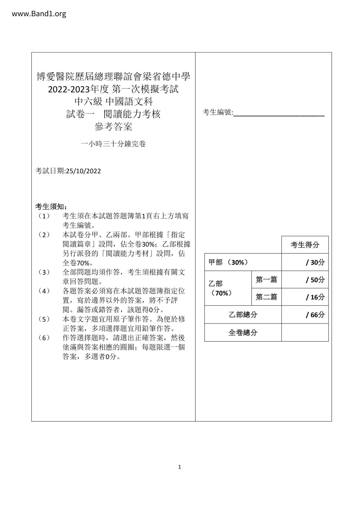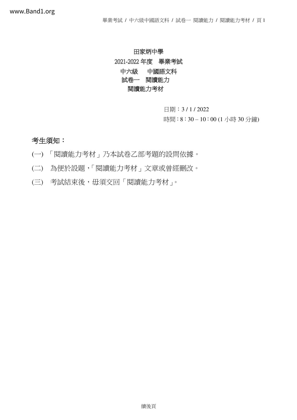 香港 中小學 中文 (HK Chinese) 試卷 pdf