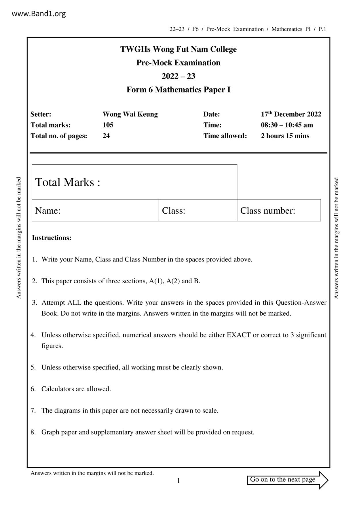 中一 數學 Tsuen Wan Government Secondary School