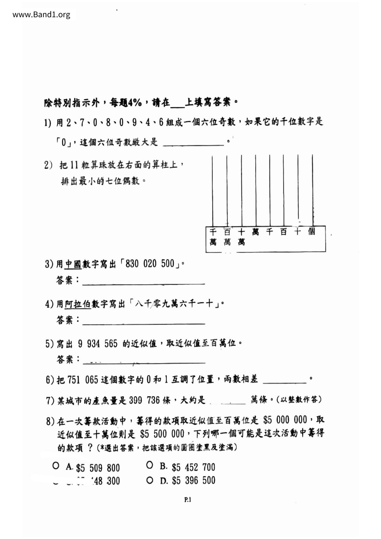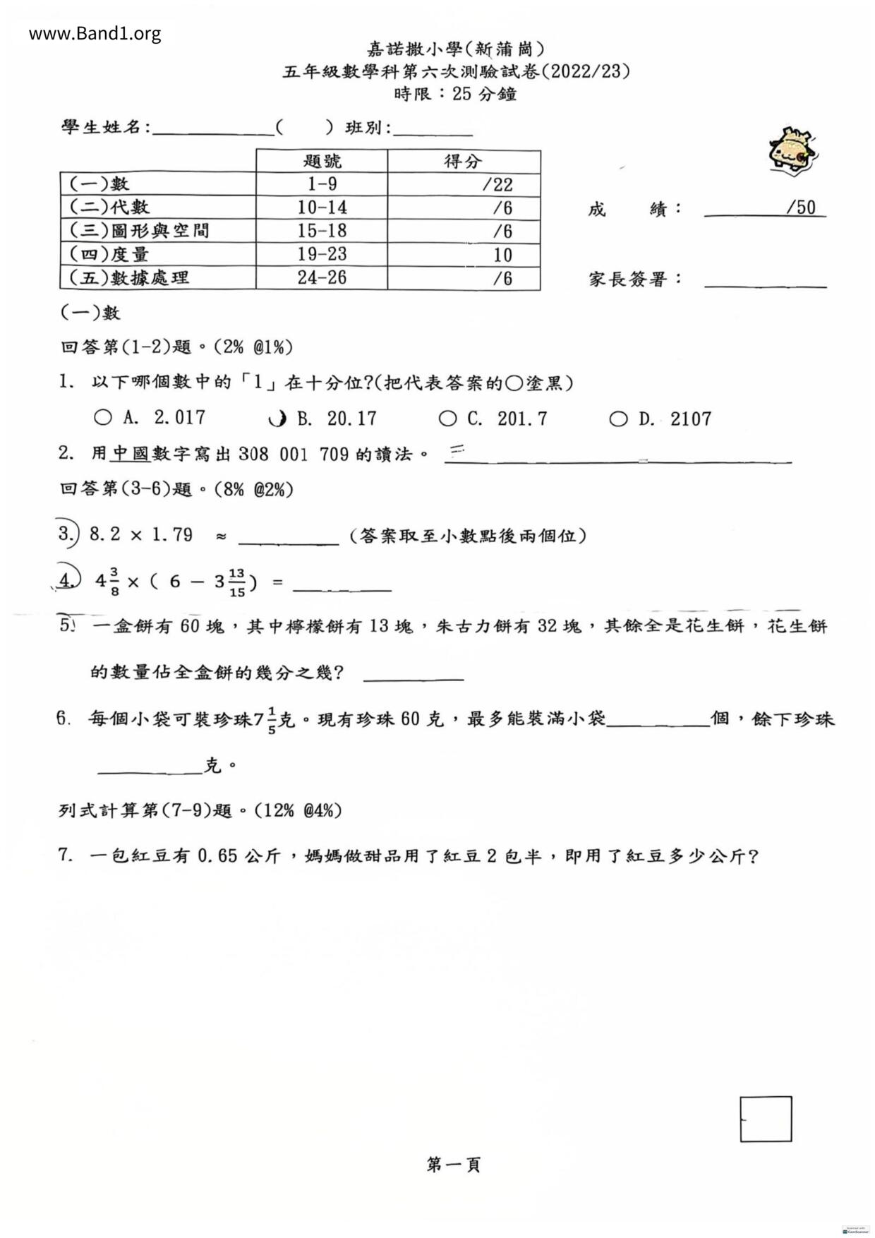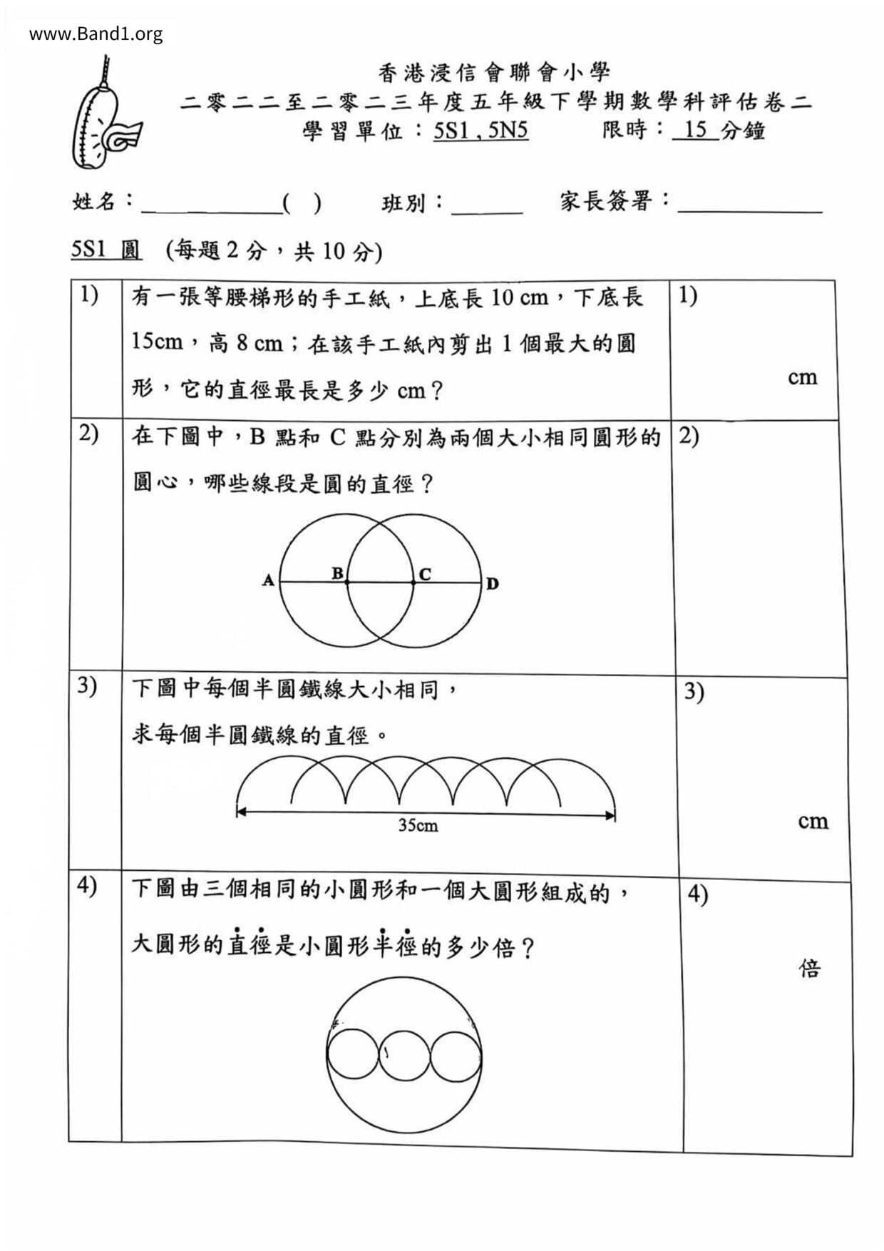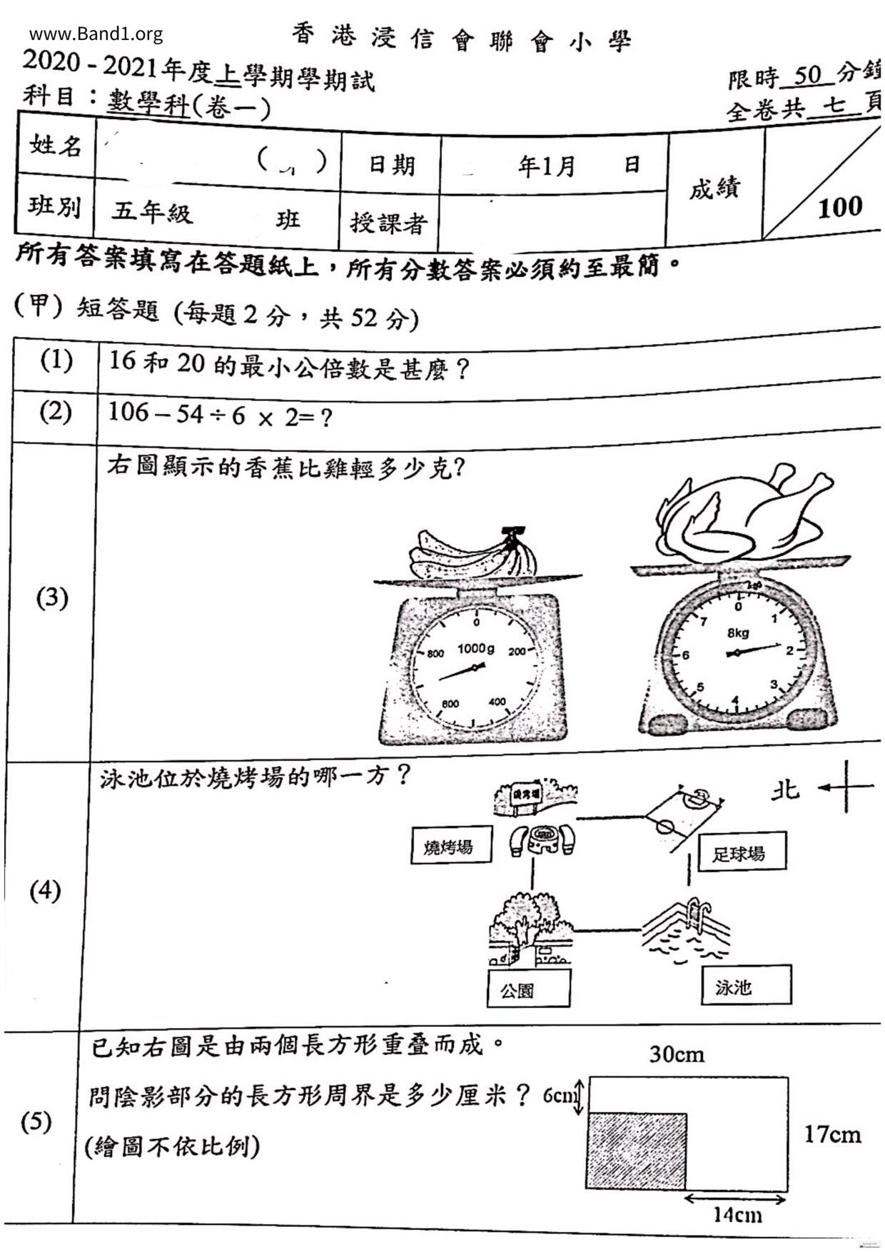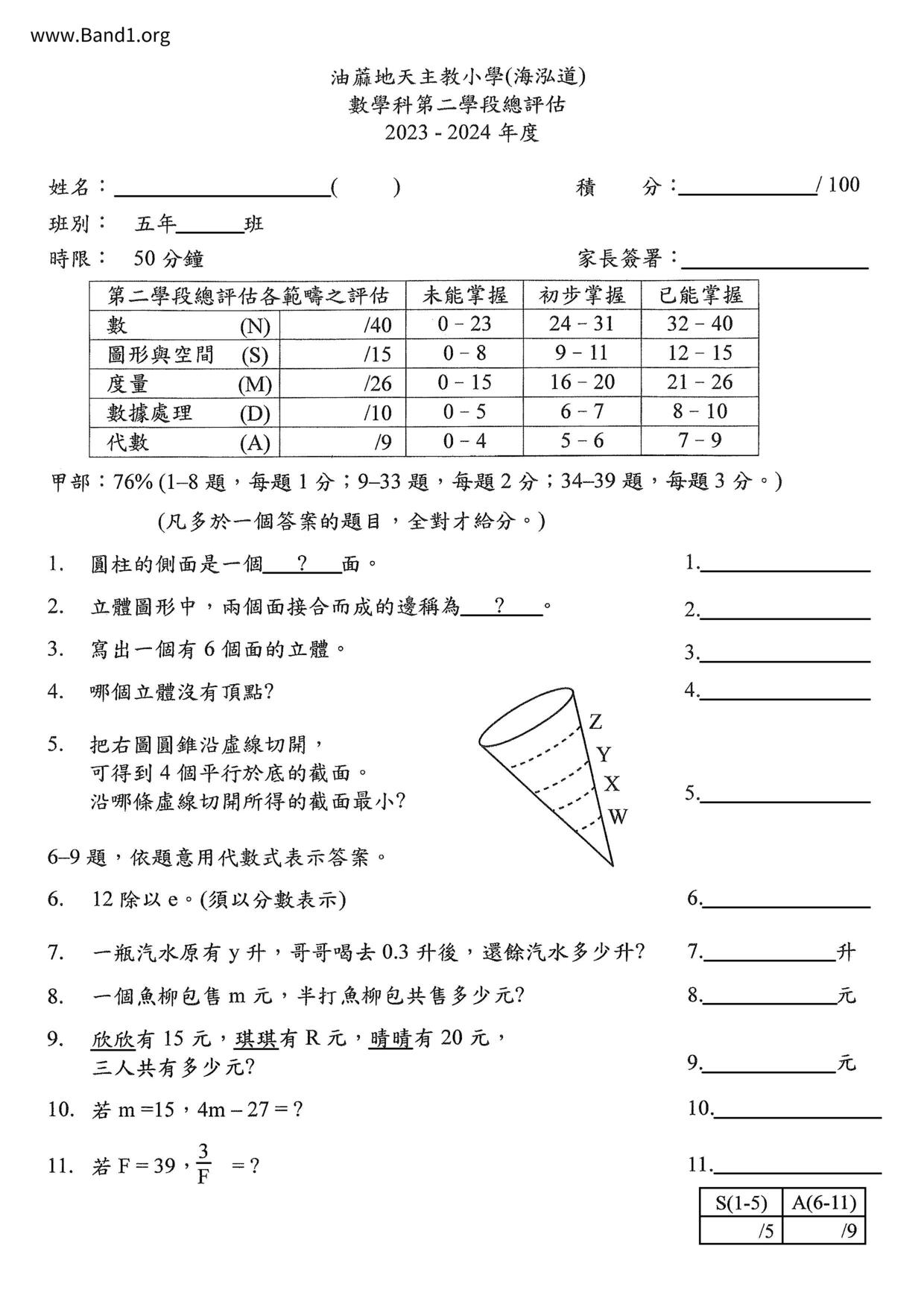 香港 中小學 數學 (HK Maths) 試卷 pdf