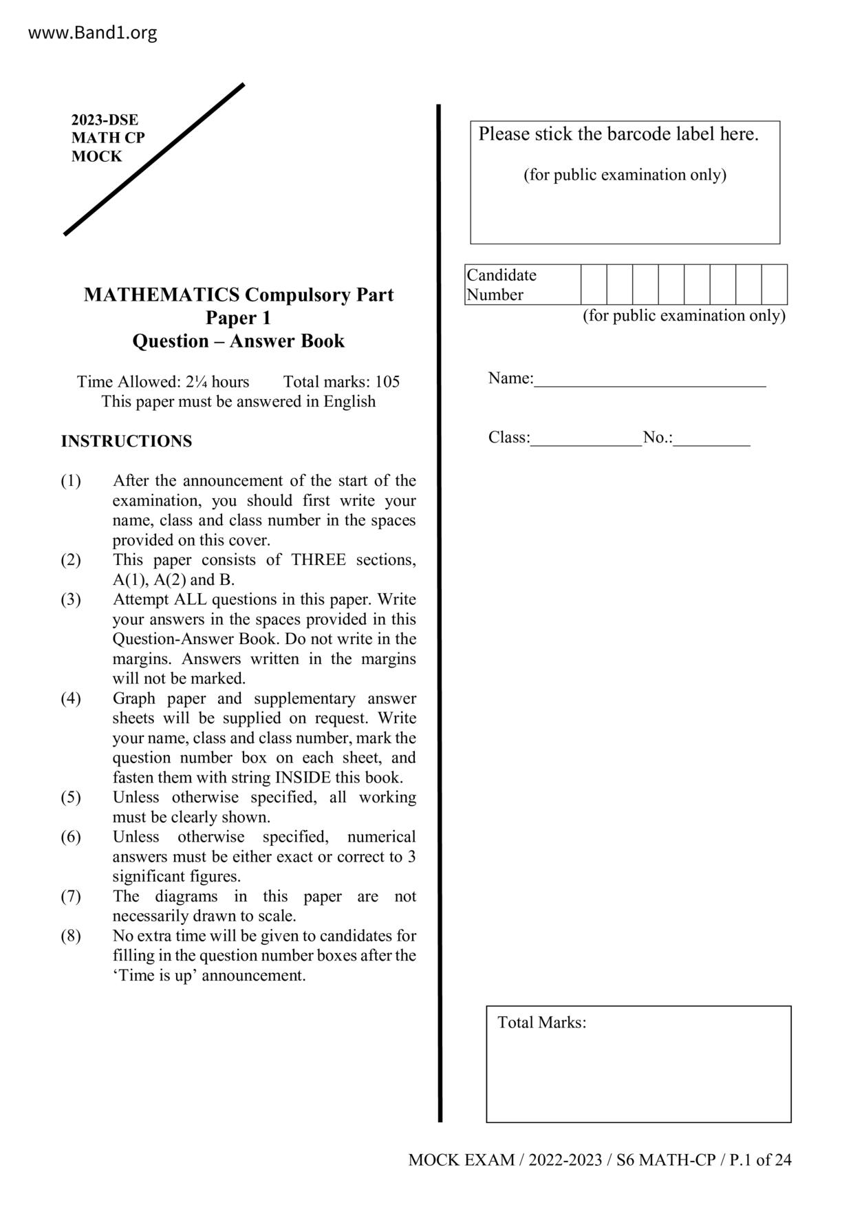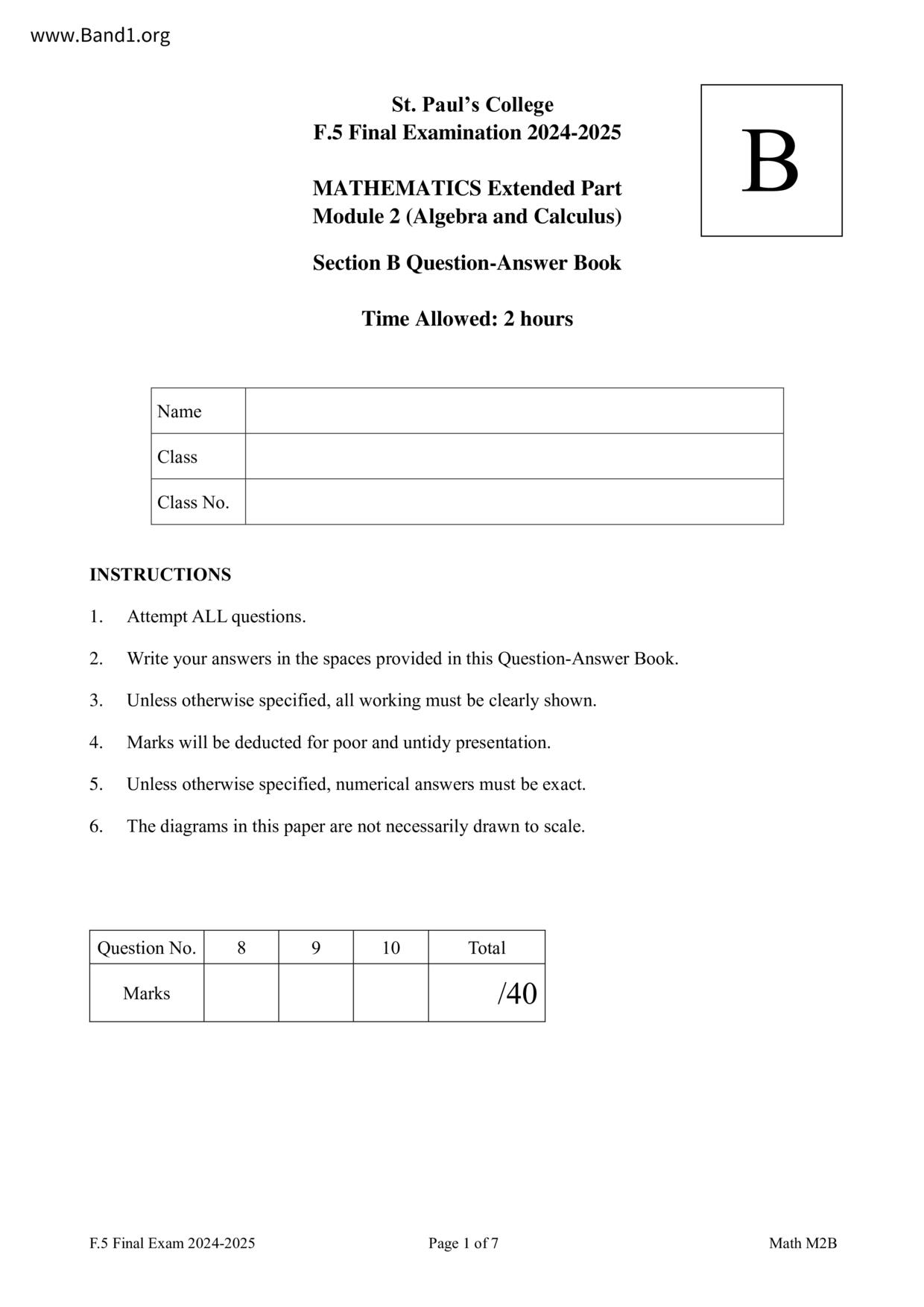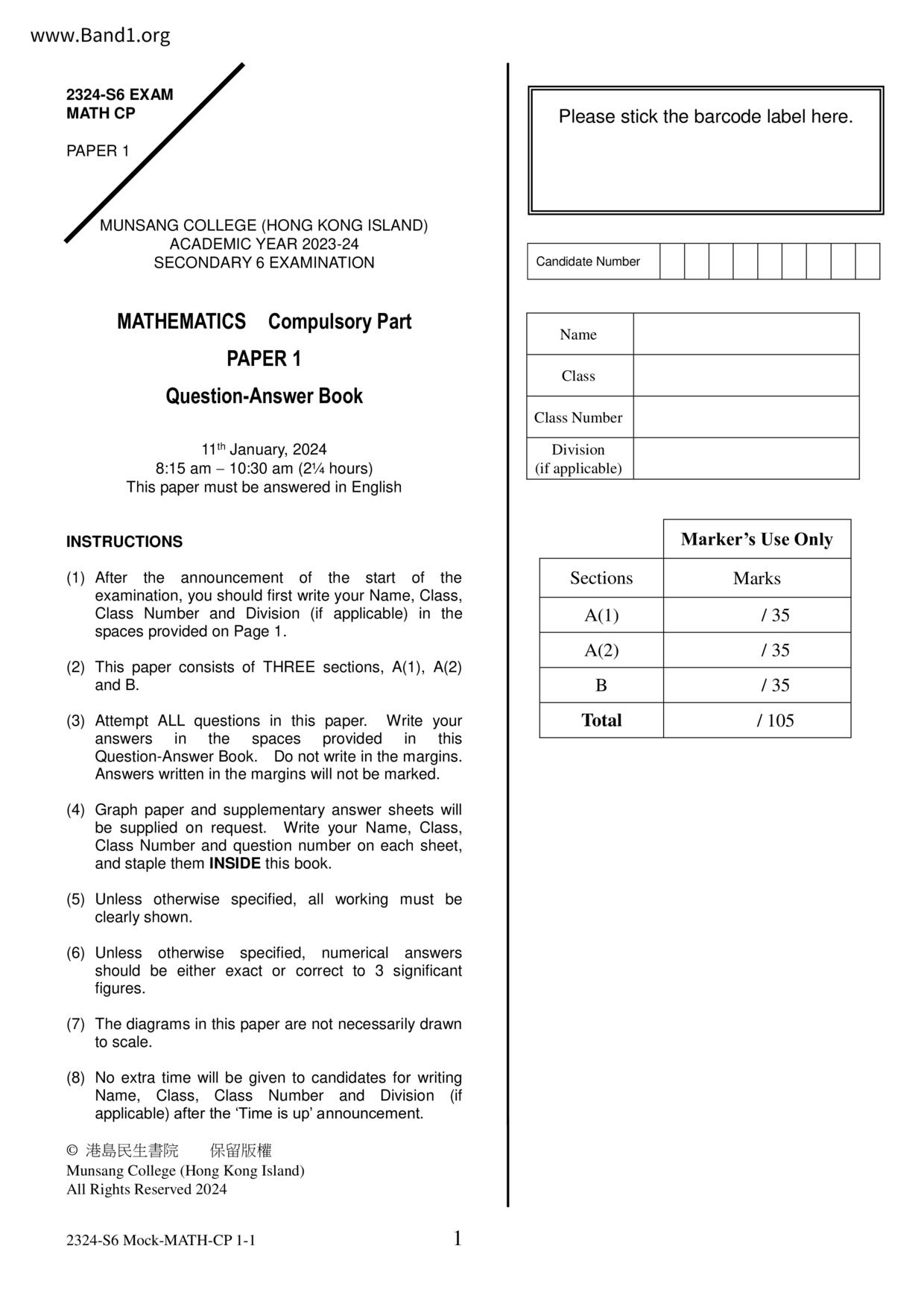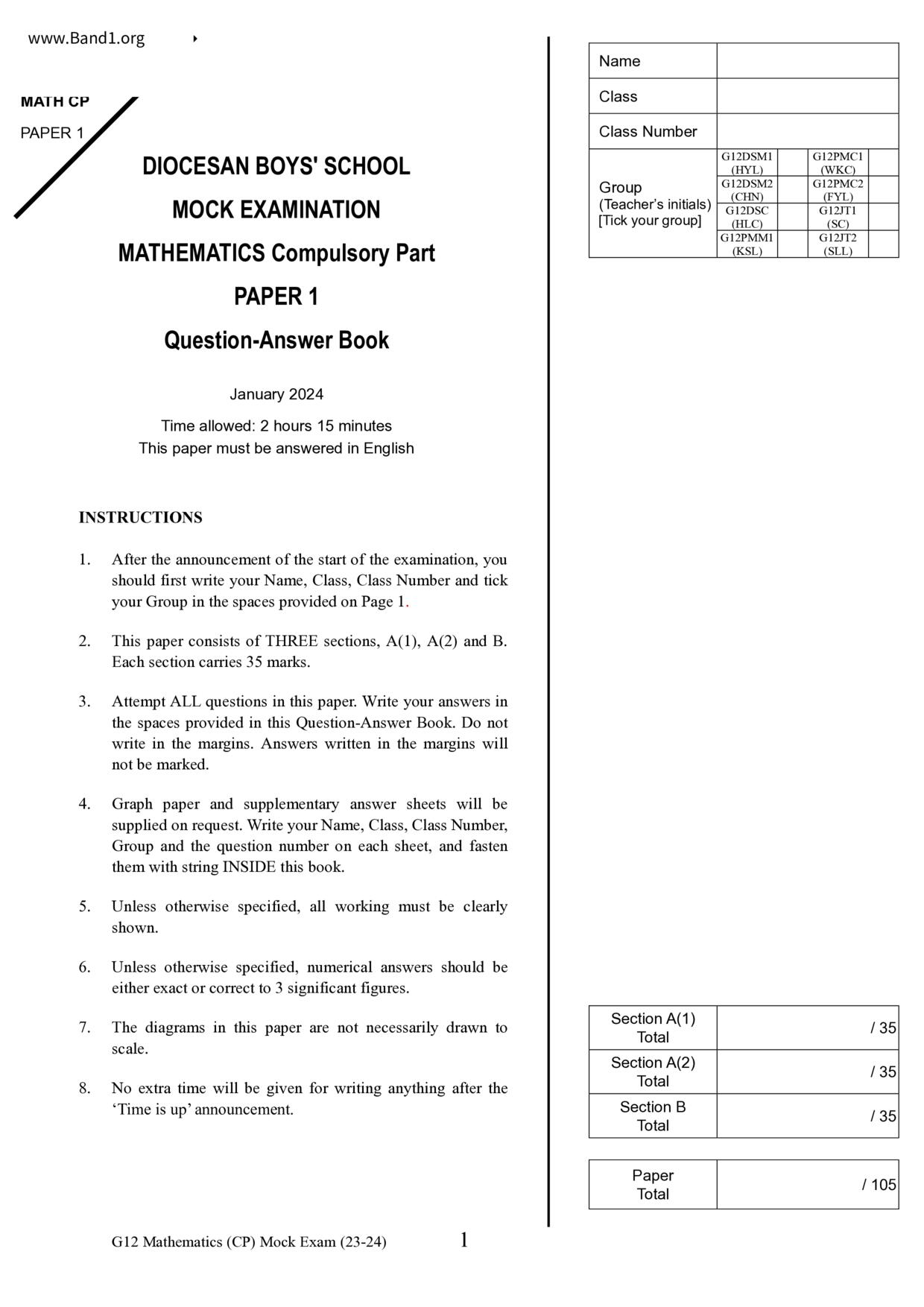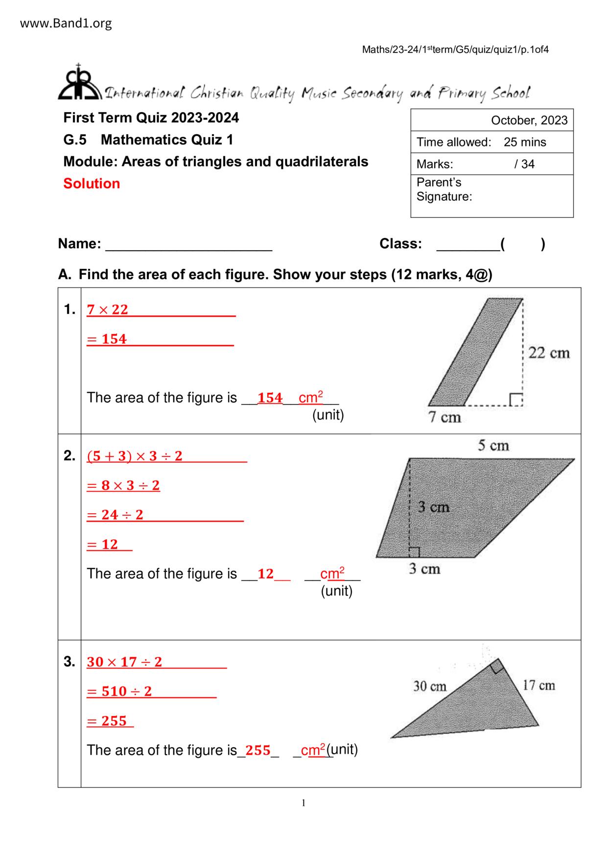 香港 中小學 數學 (HK Maths) 試卷 pdf