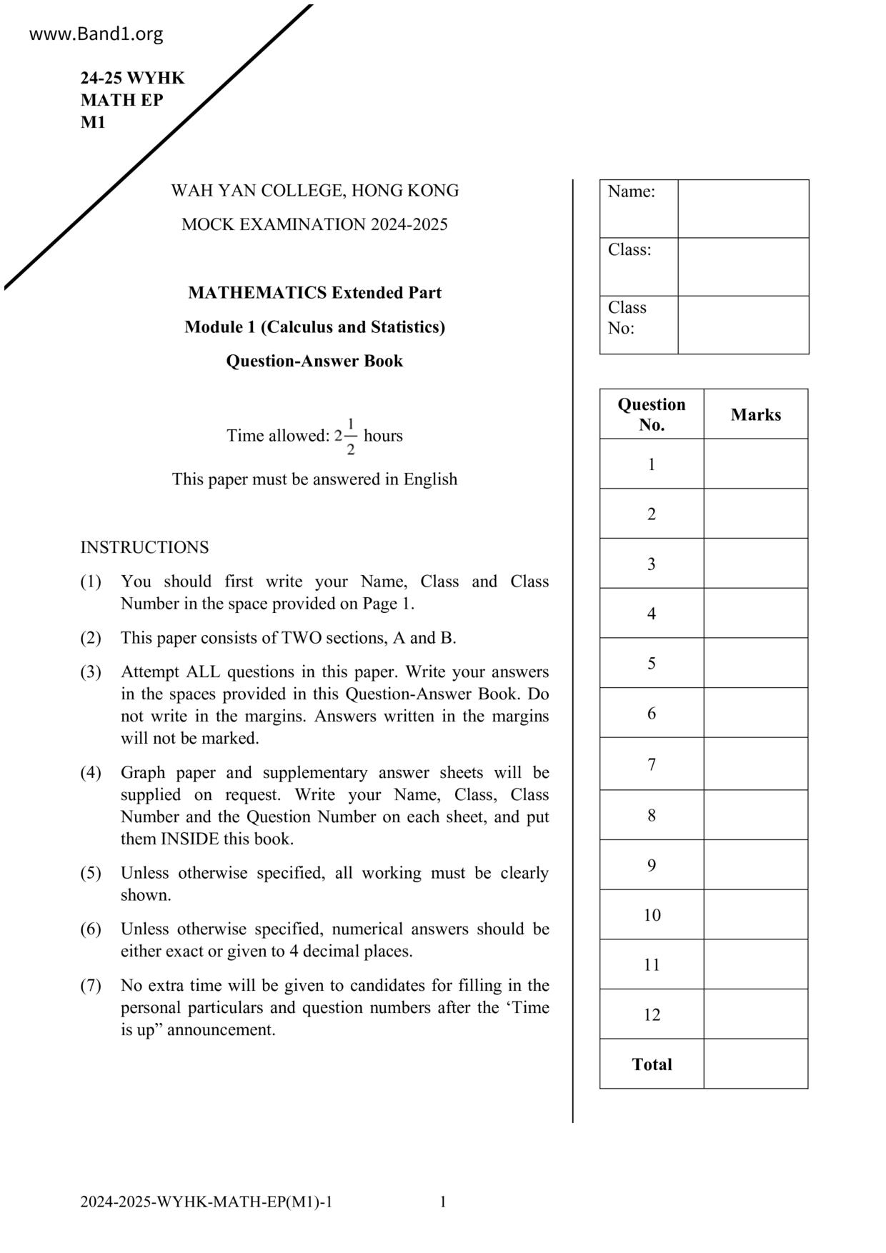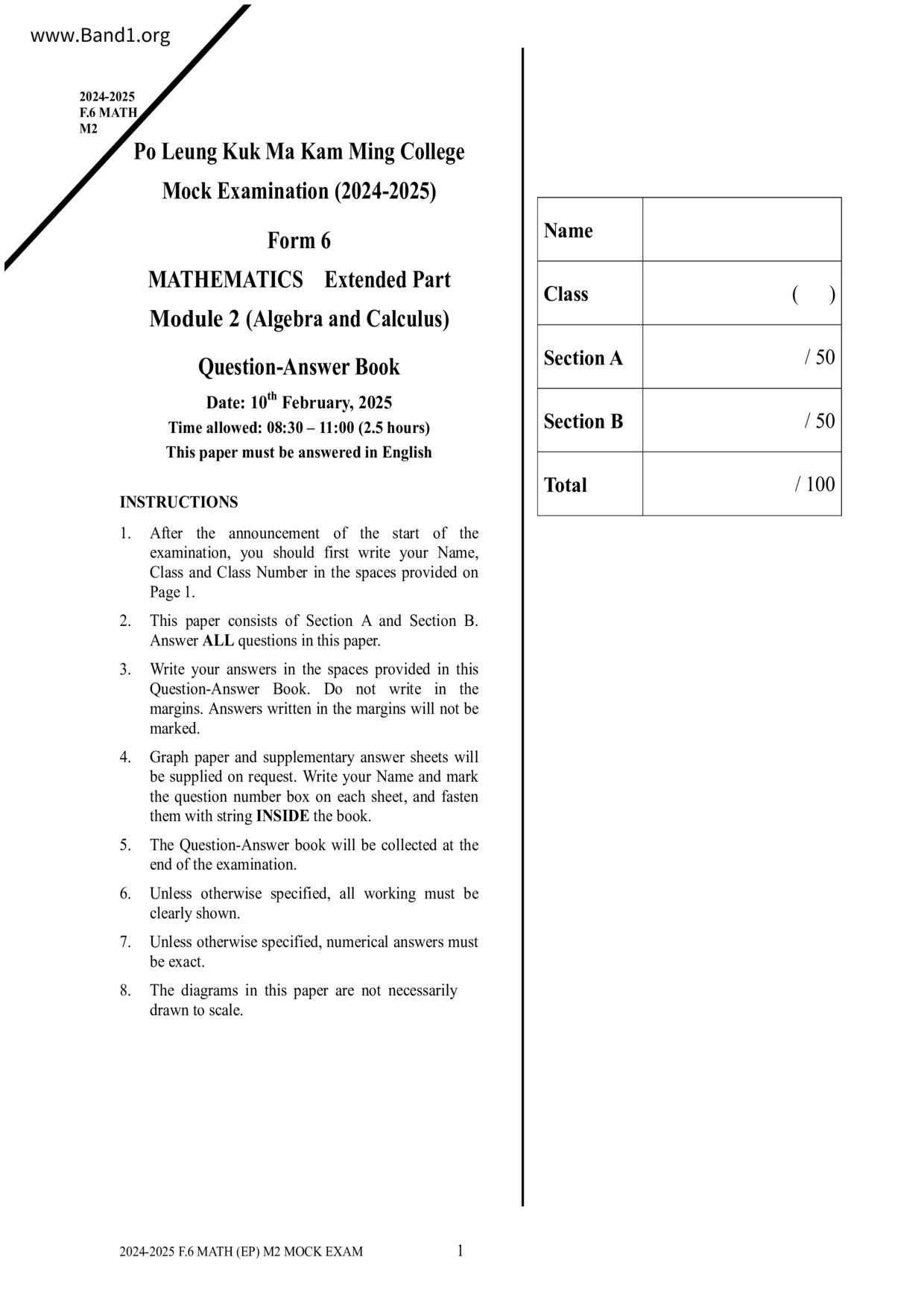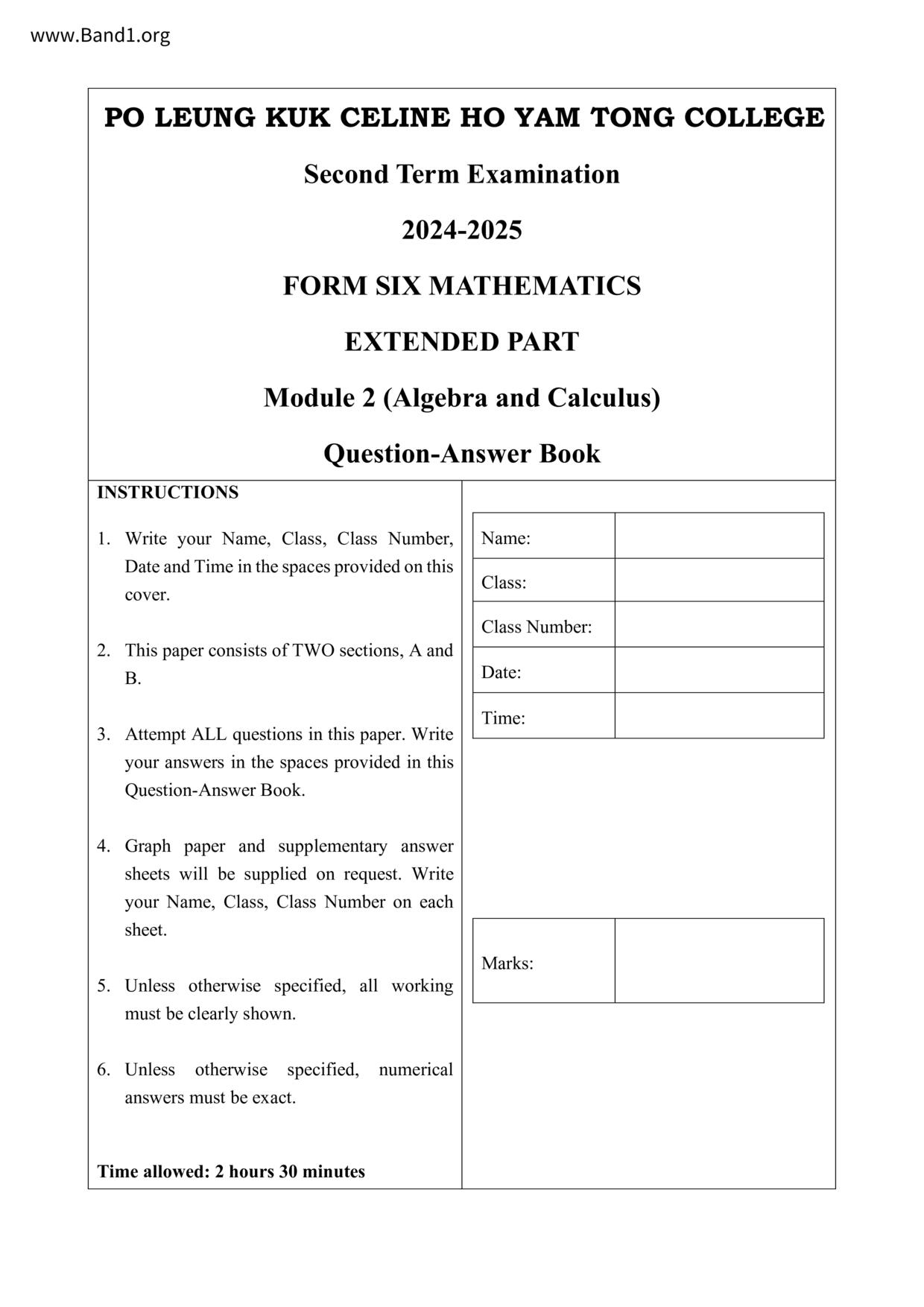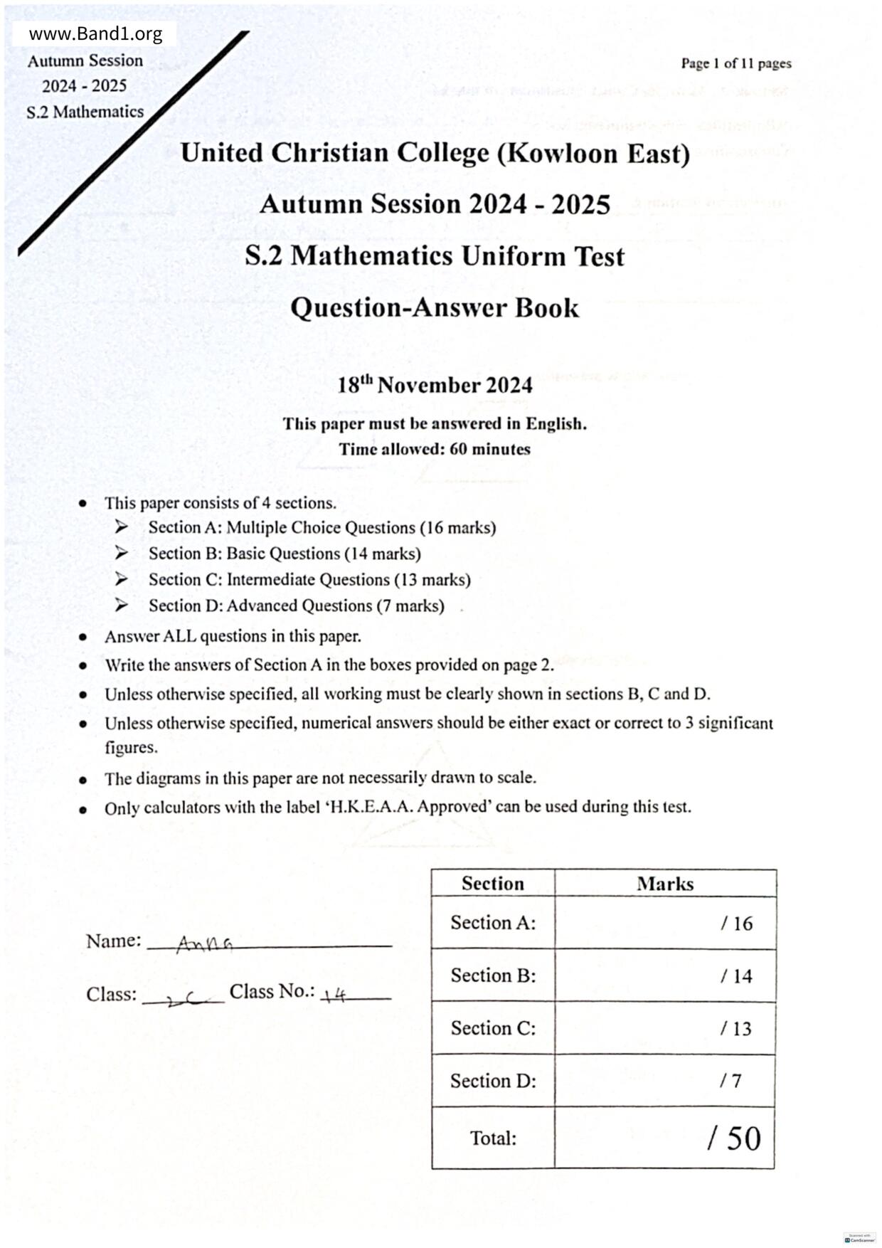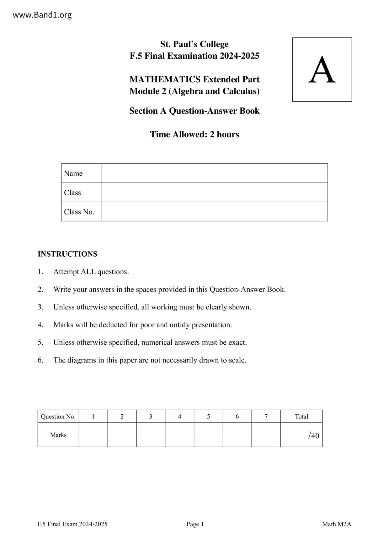 香港 中小學 數學 (HK Maths) 試卷 pdf