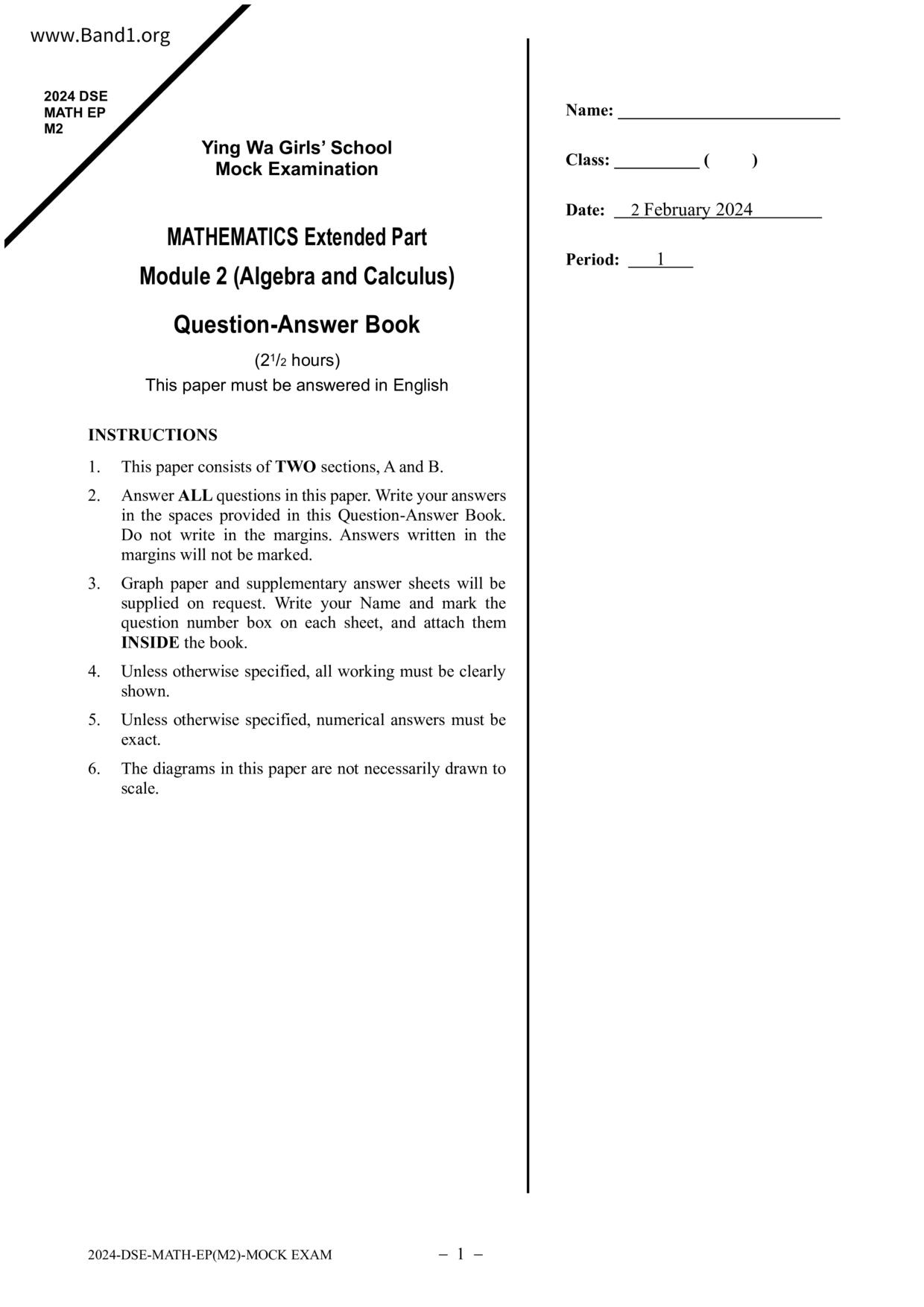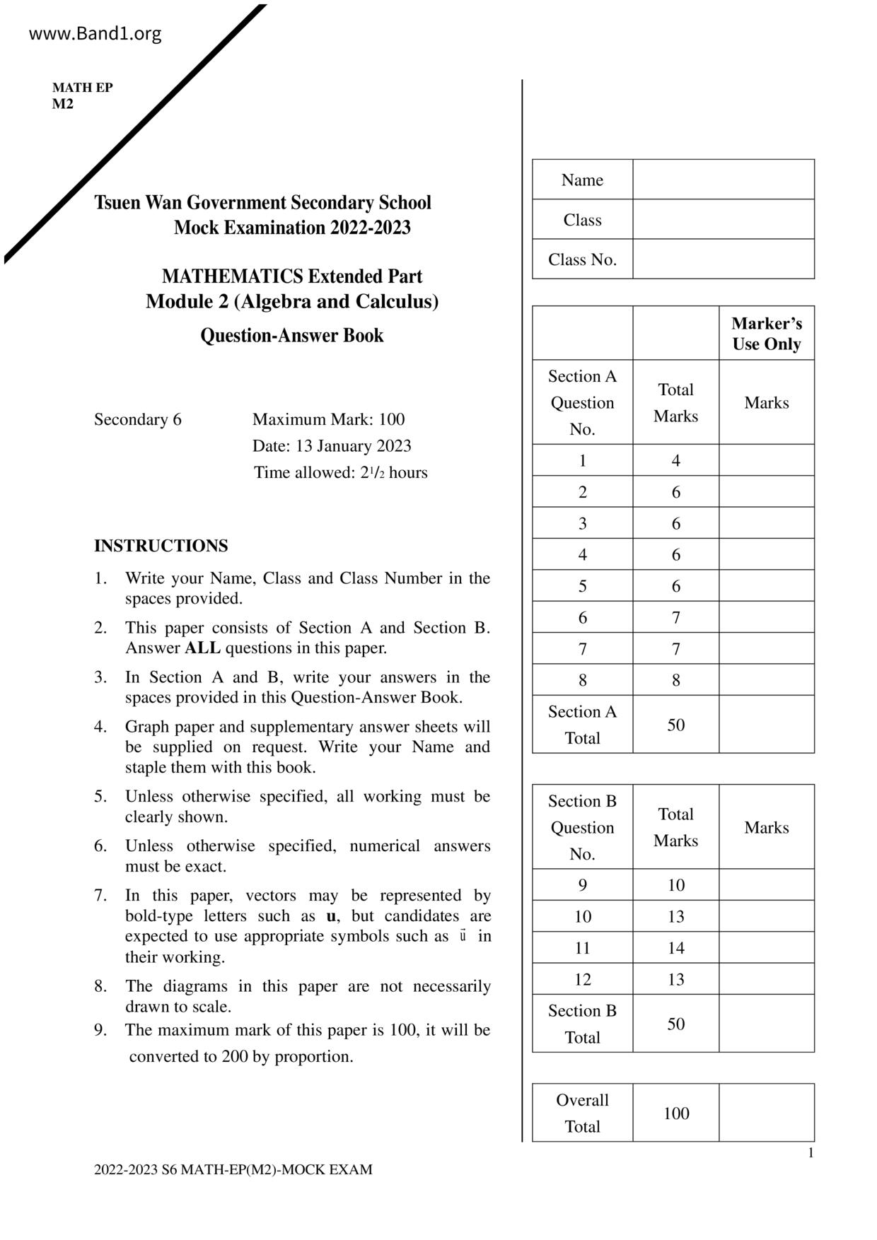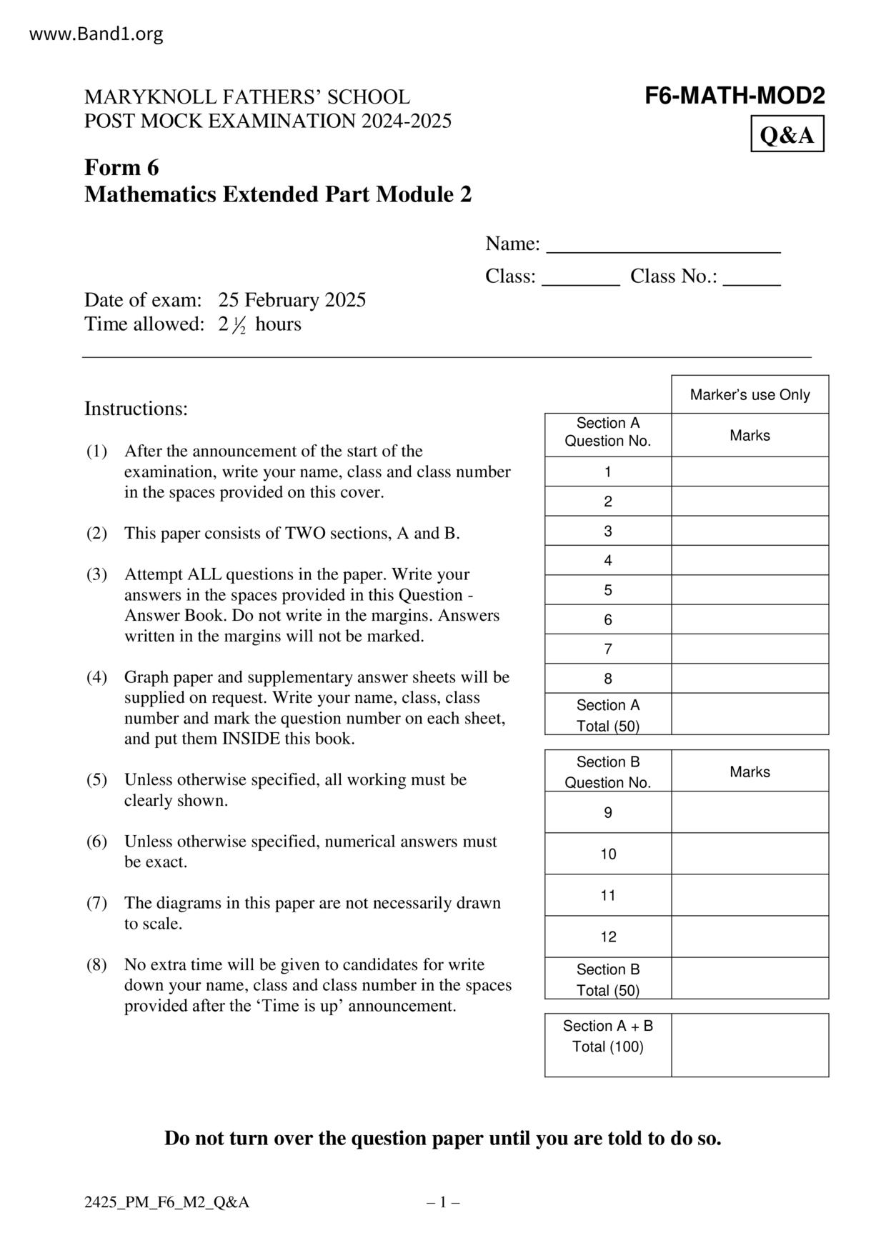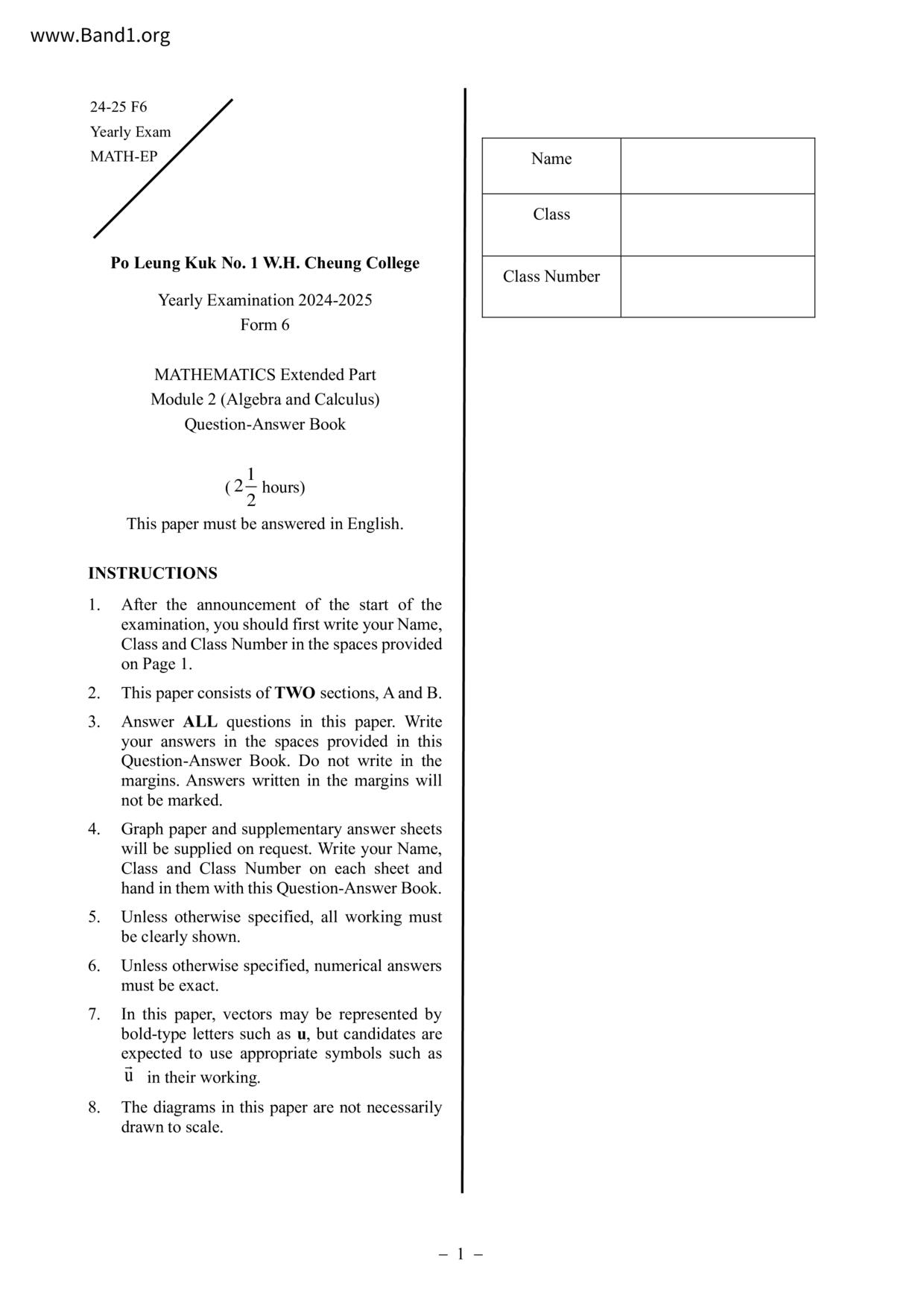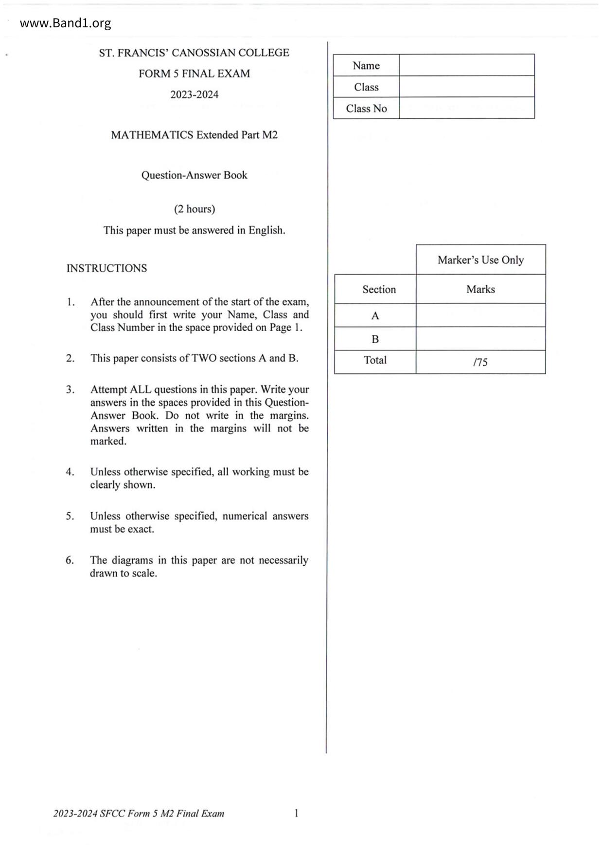 香港 中小學 數學 (HK Maths) 試卷 pdf