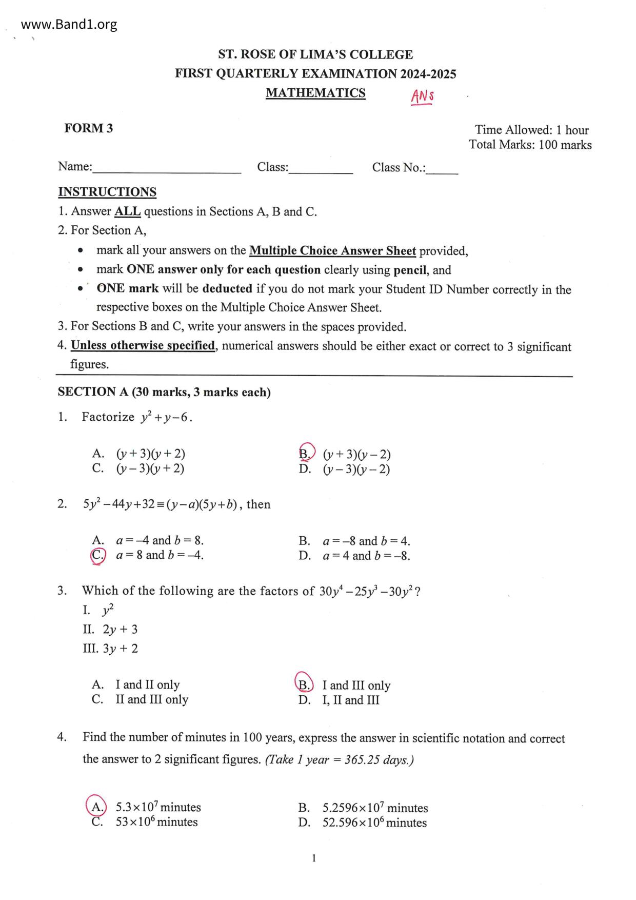 中六 數學 嗇色園主辦可譽中學暨可譽小學