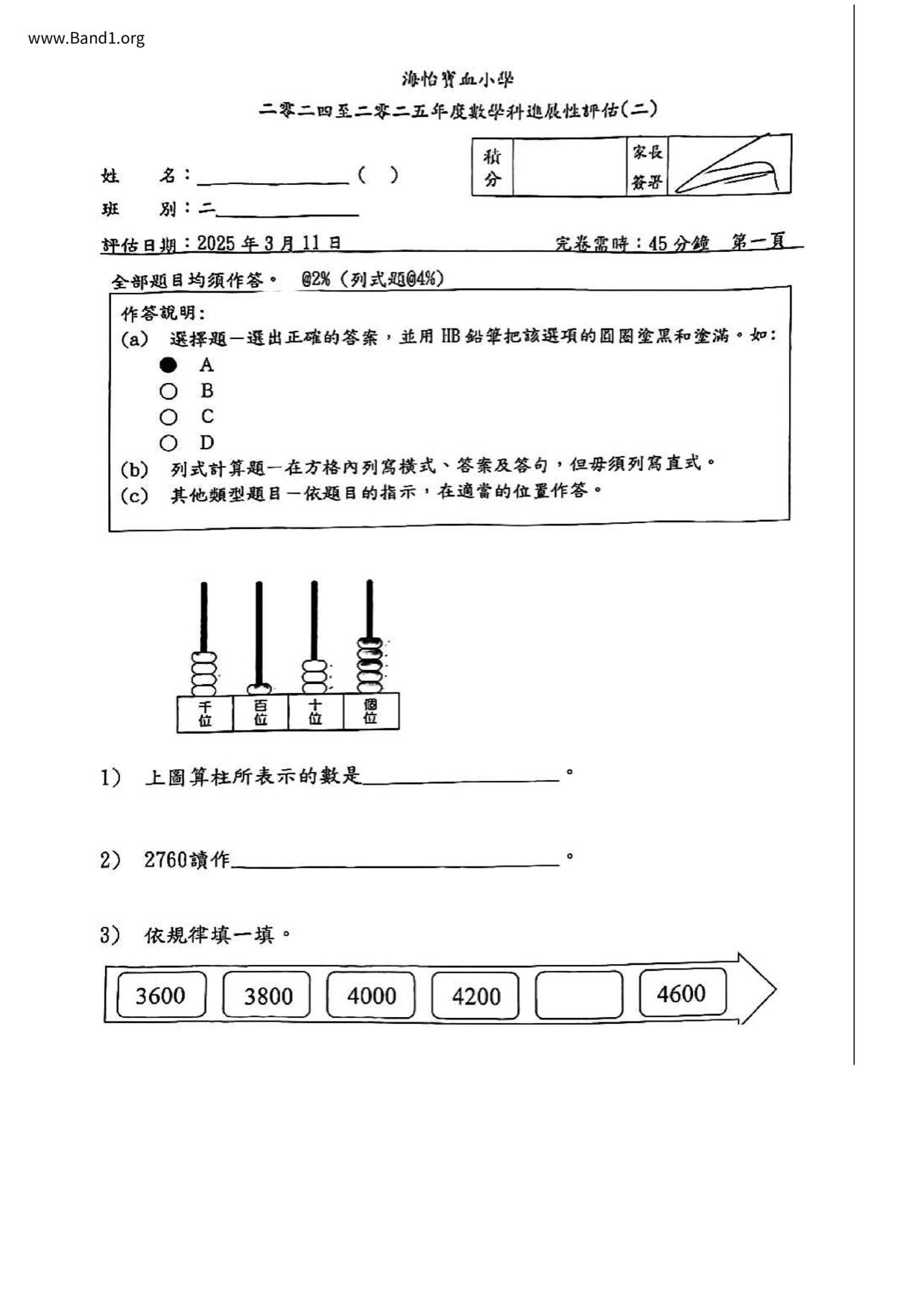 小二 數學 海怡寶血小學