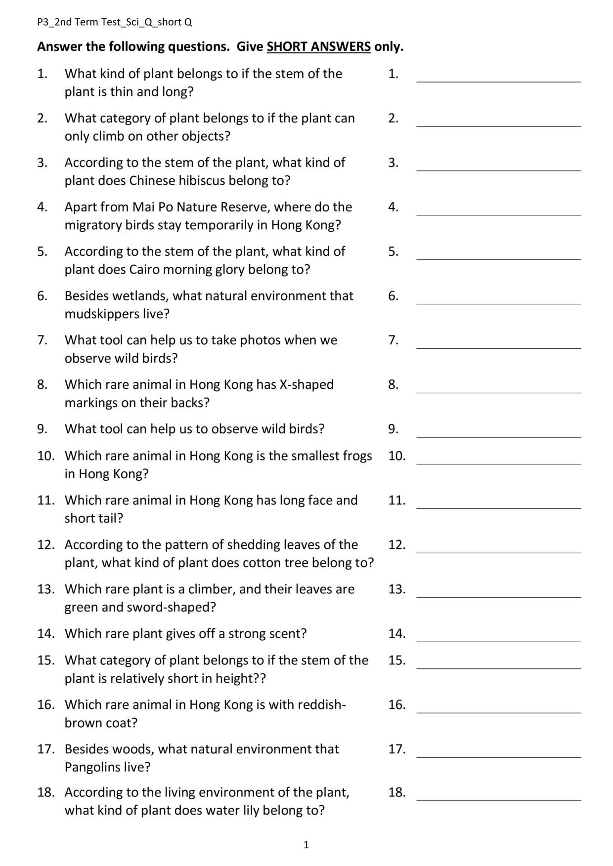 香港 中小學 科學 (HK Science) 試卷 pdf