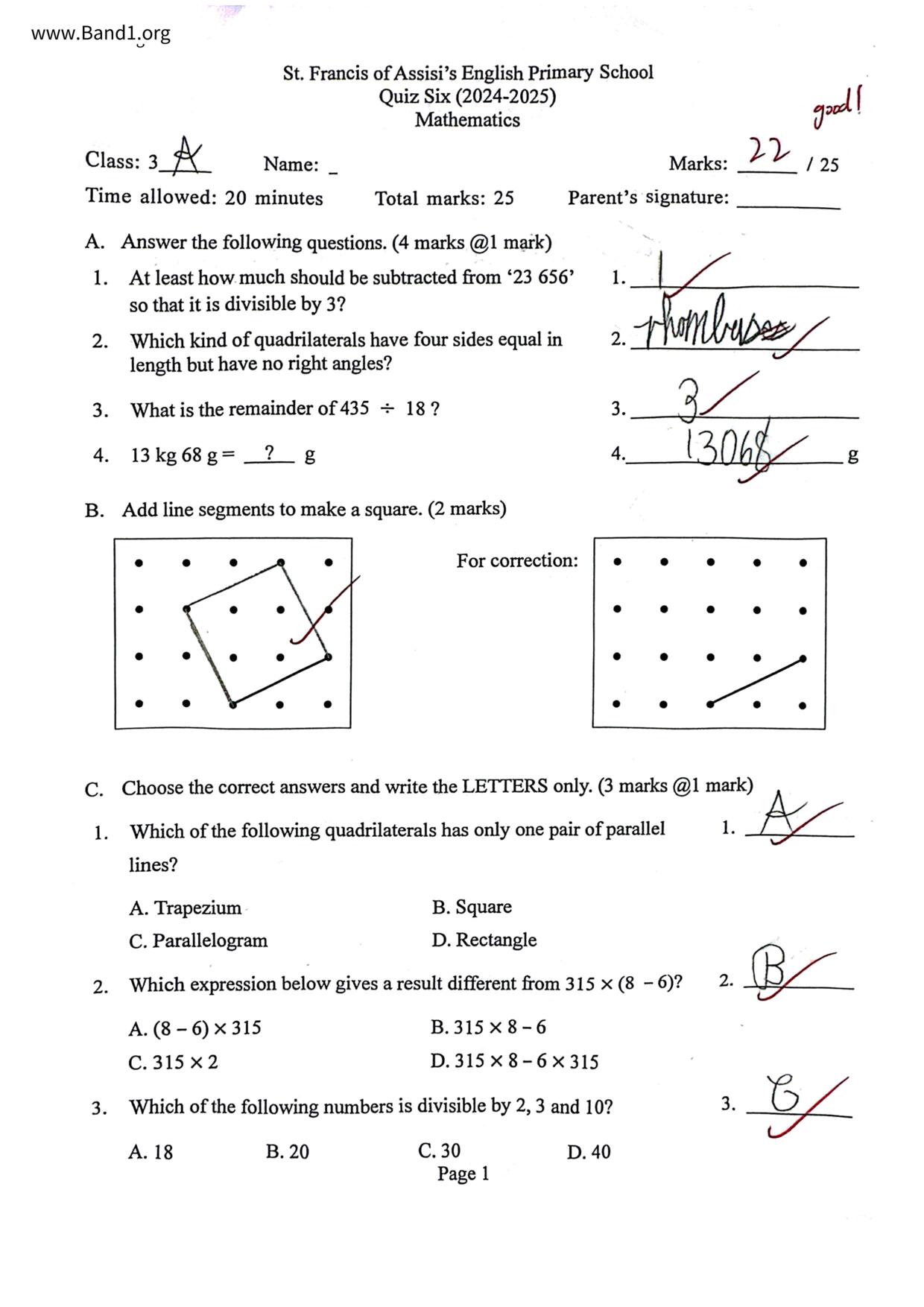 小四 數學 聖方濟各英文小學