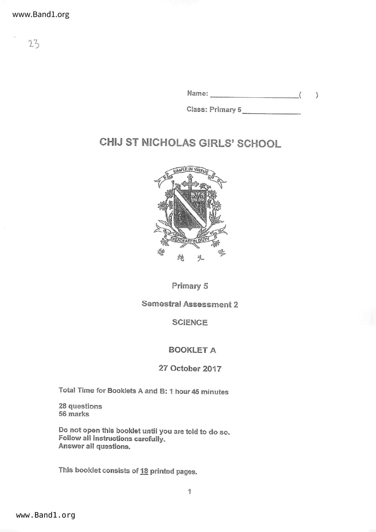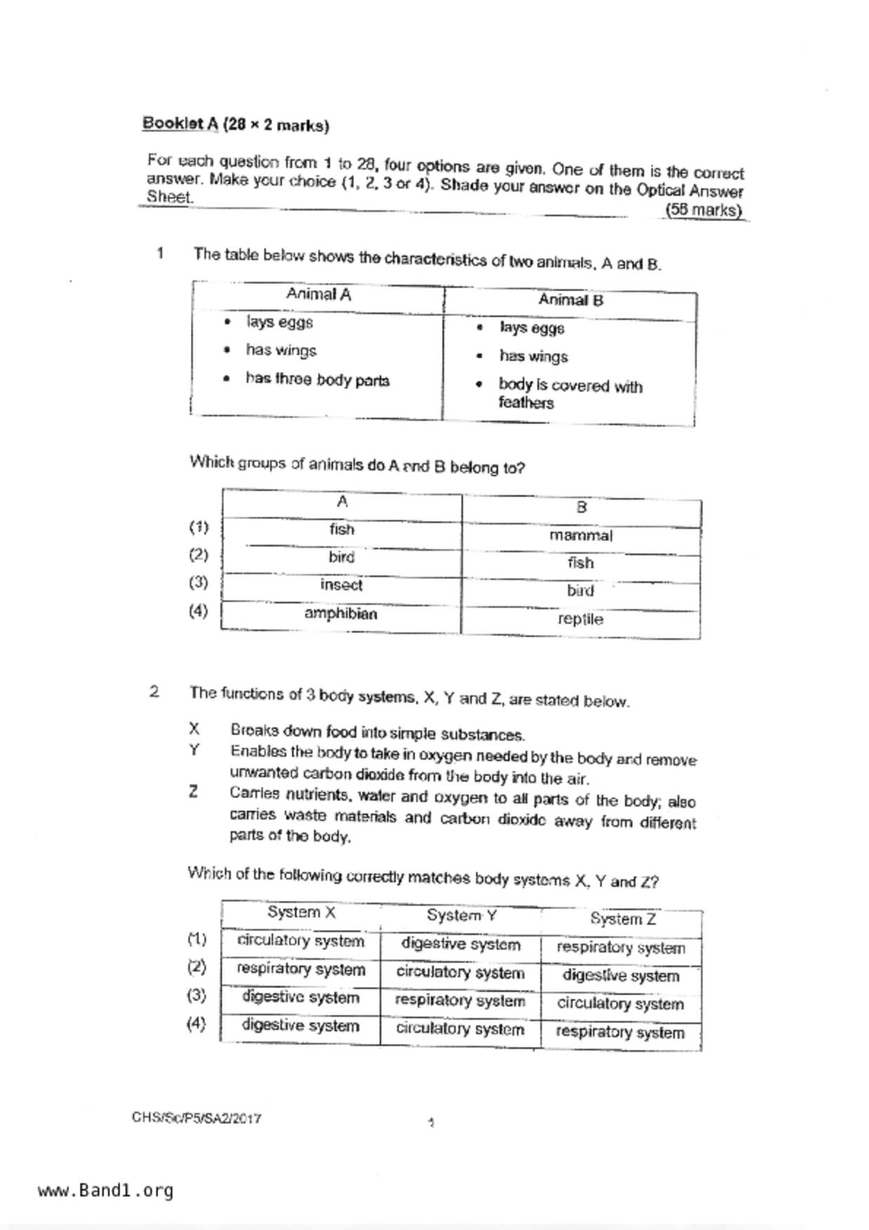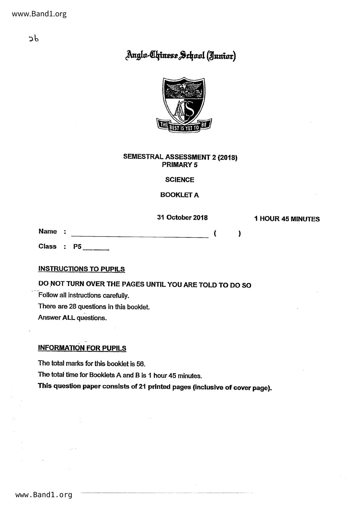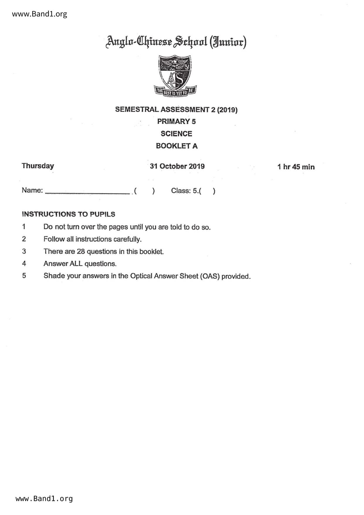 新加坡 小五 科學 (SG P5 Science) 試卷 pdf