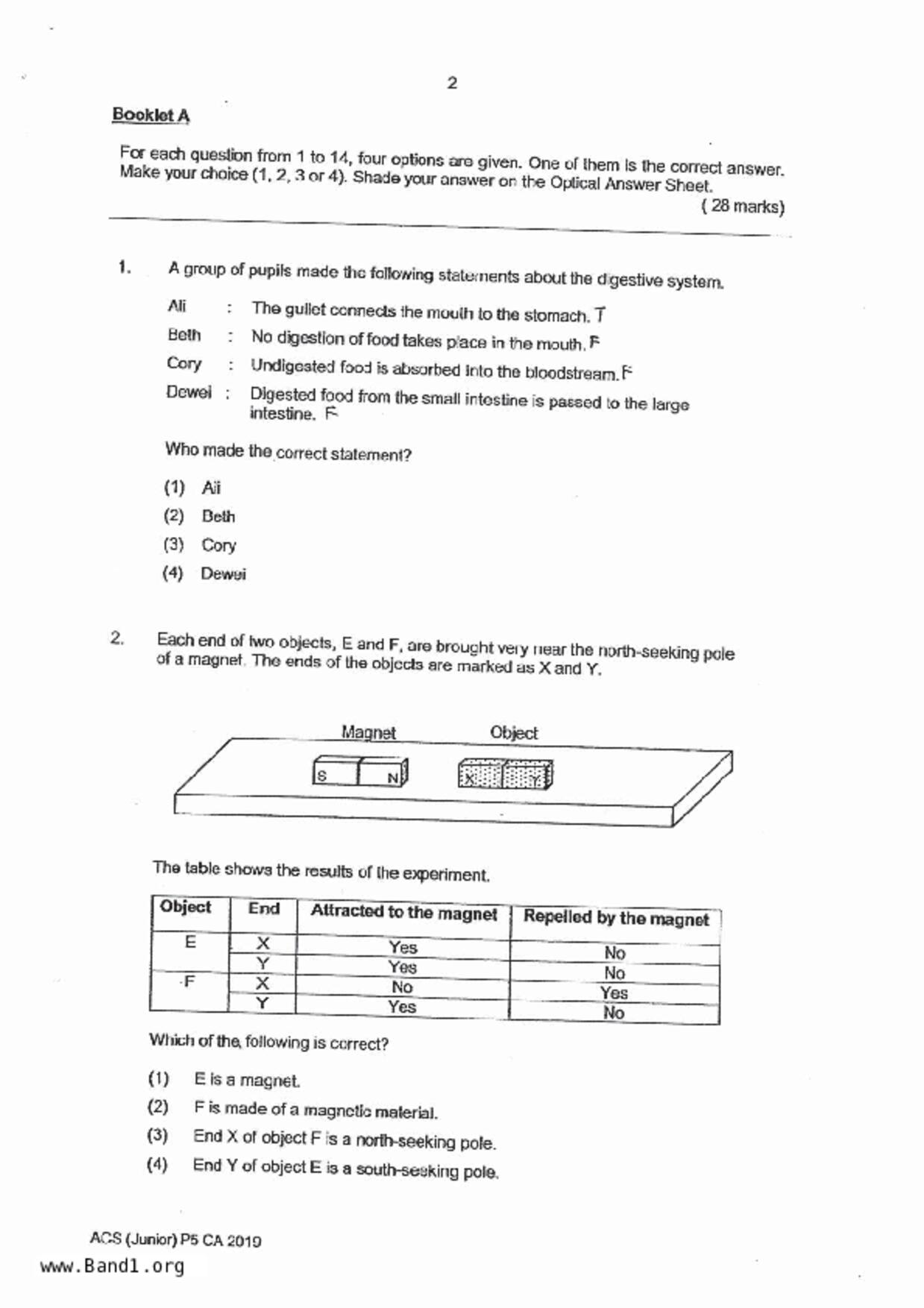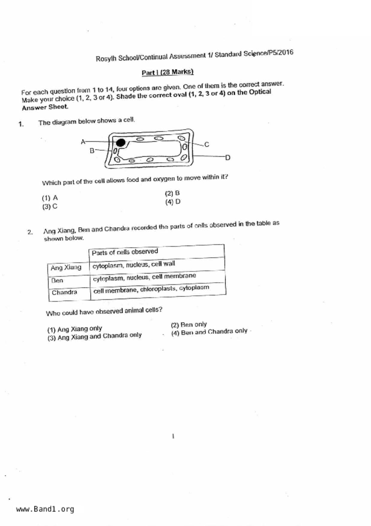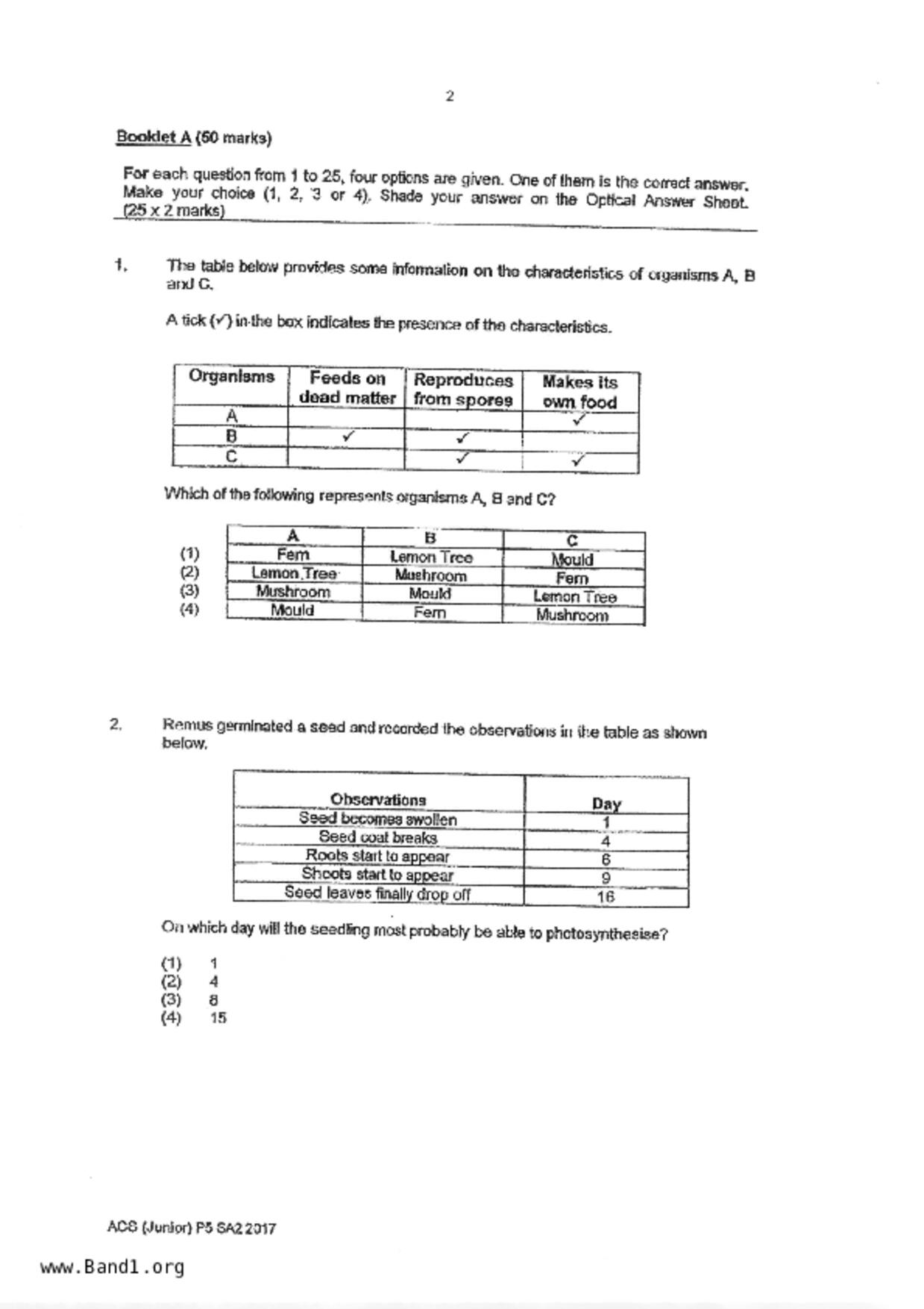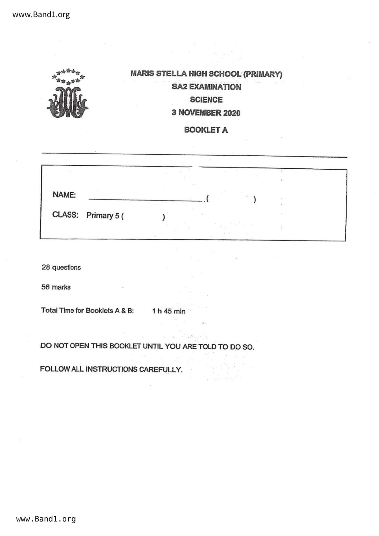 新加坡 小五 科學 (SG P5 Science) 試卷 pdf