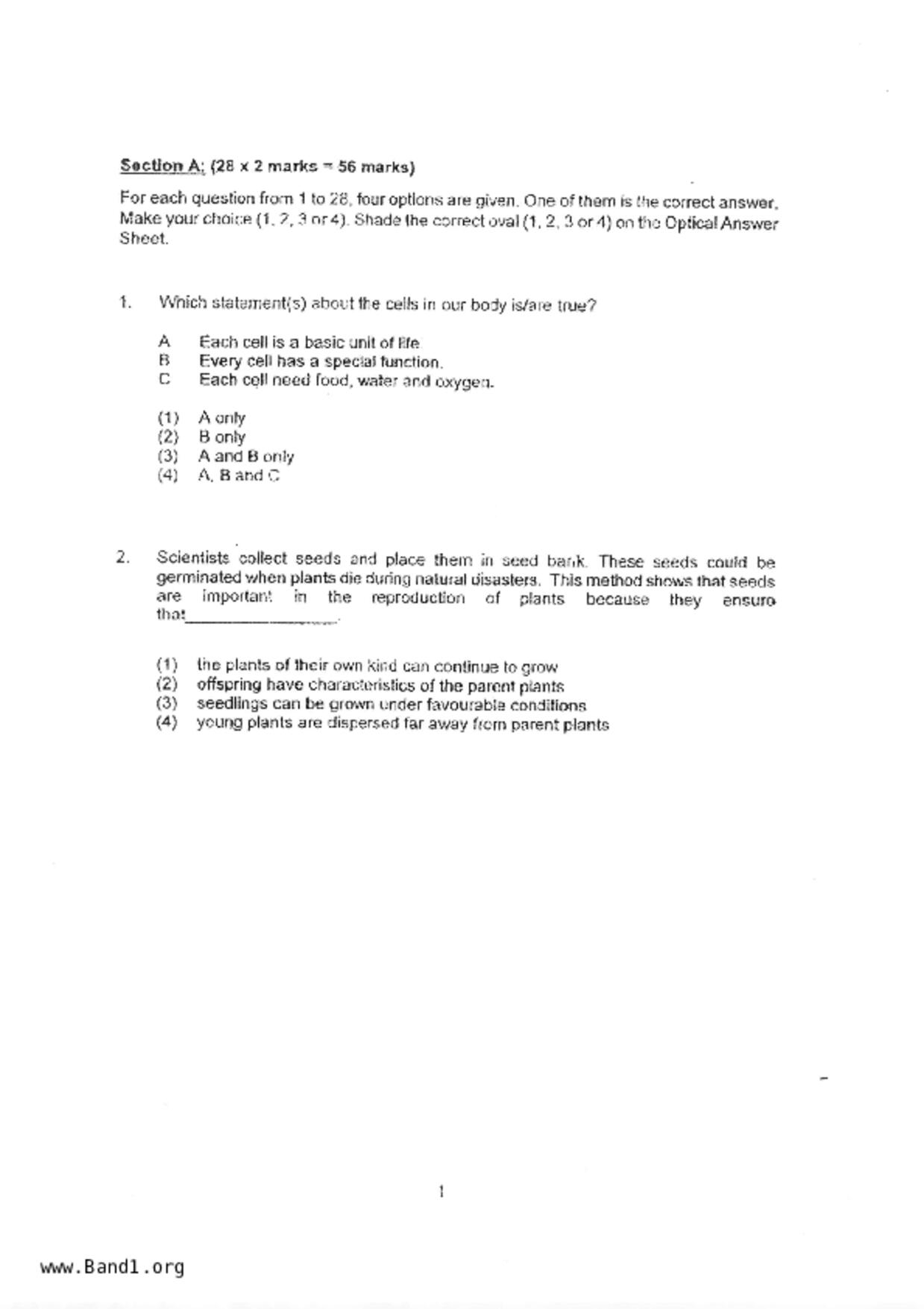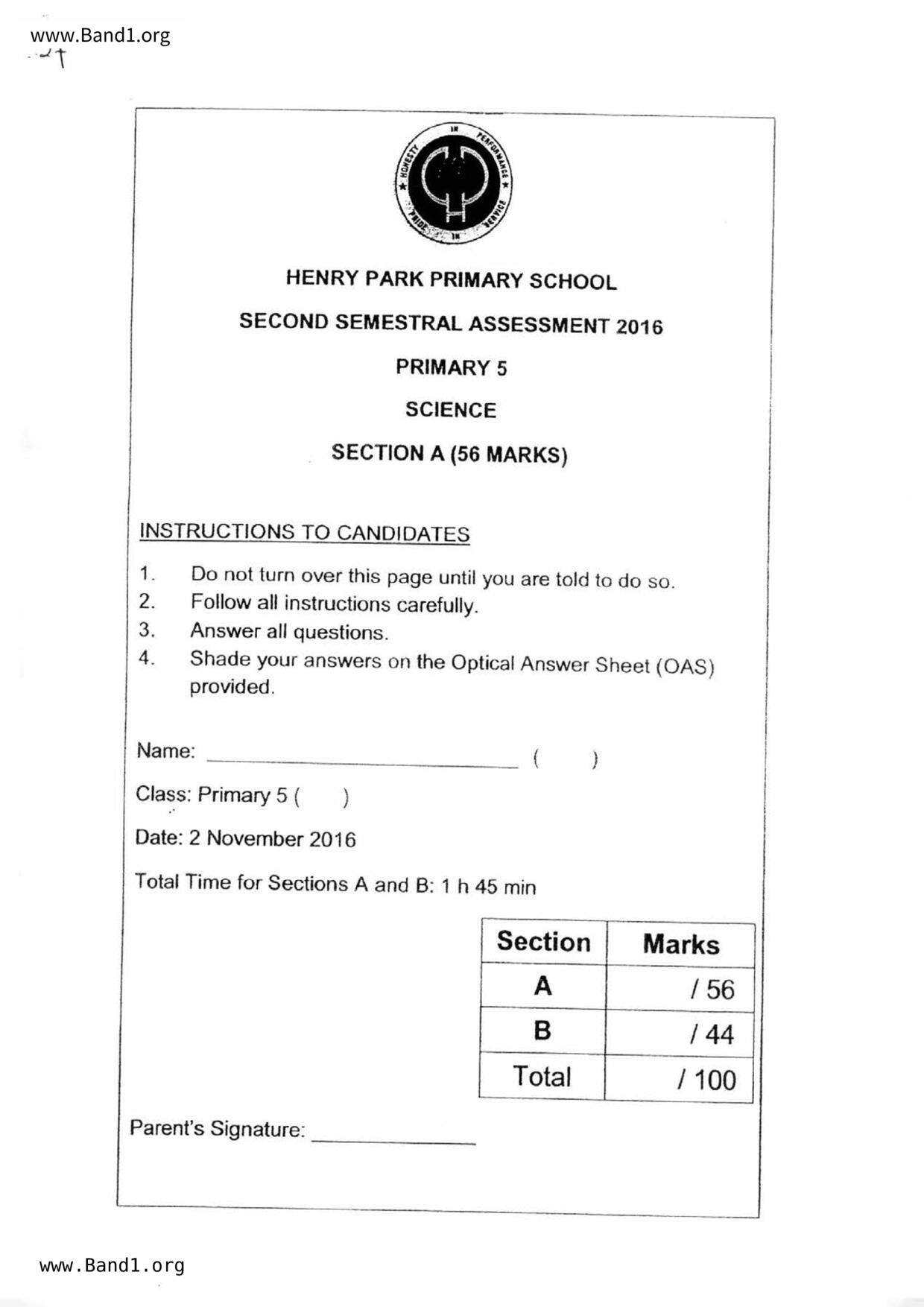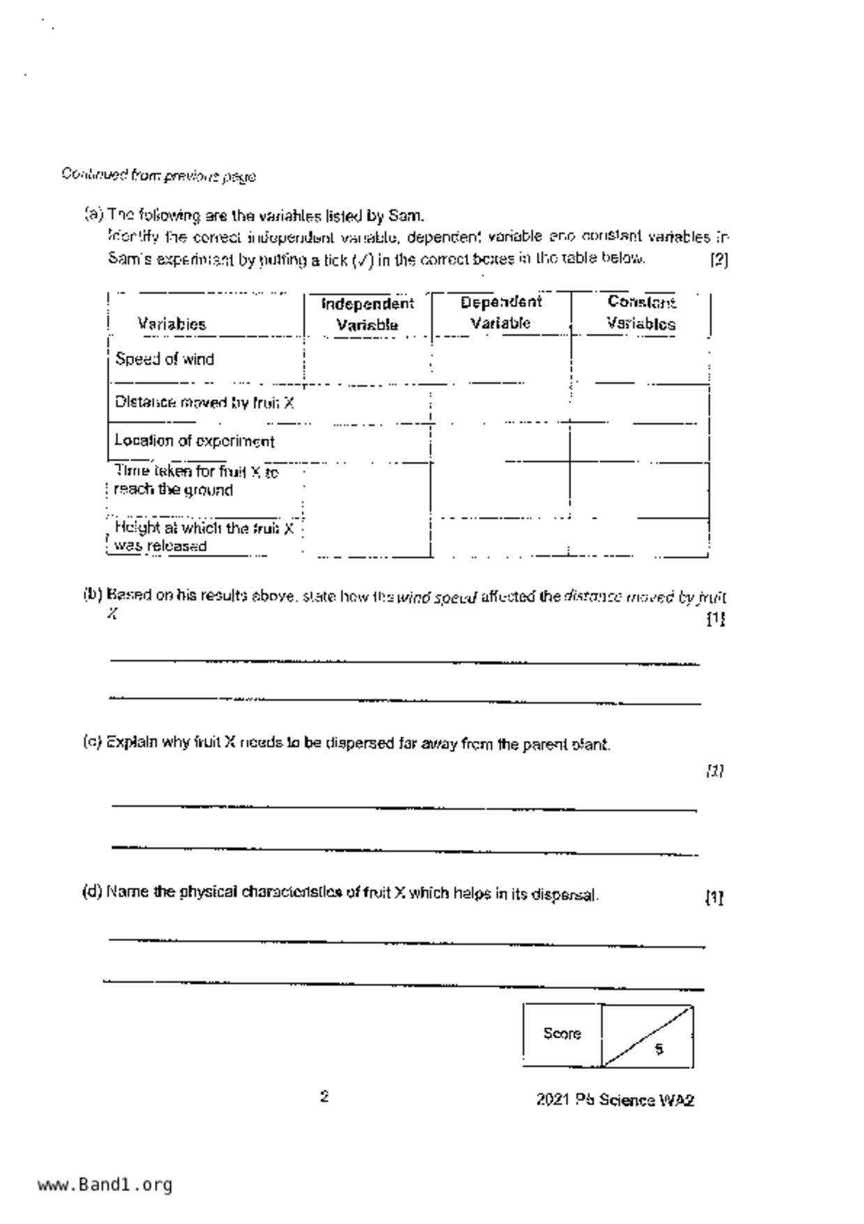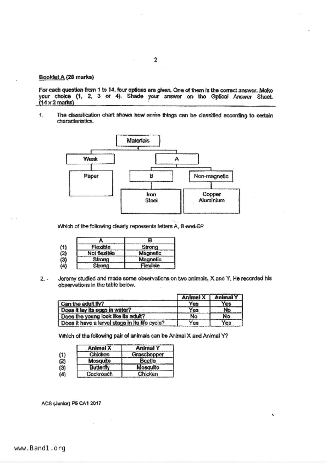 新加坡 小五 科學 (SG P5 Science) 試卷 pdf