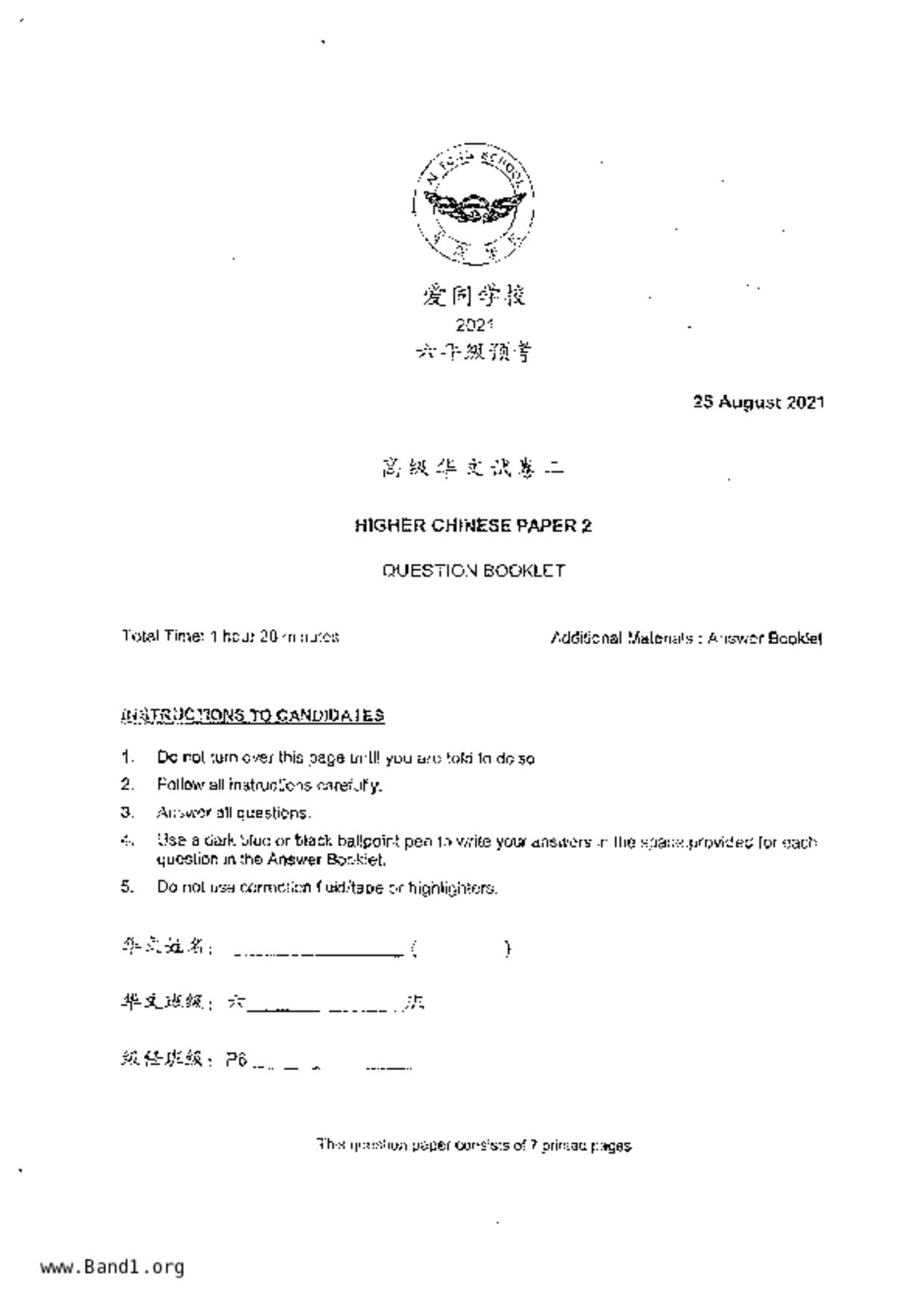 小六 中文 5-School Combined (Hokkien Huay Kuan)