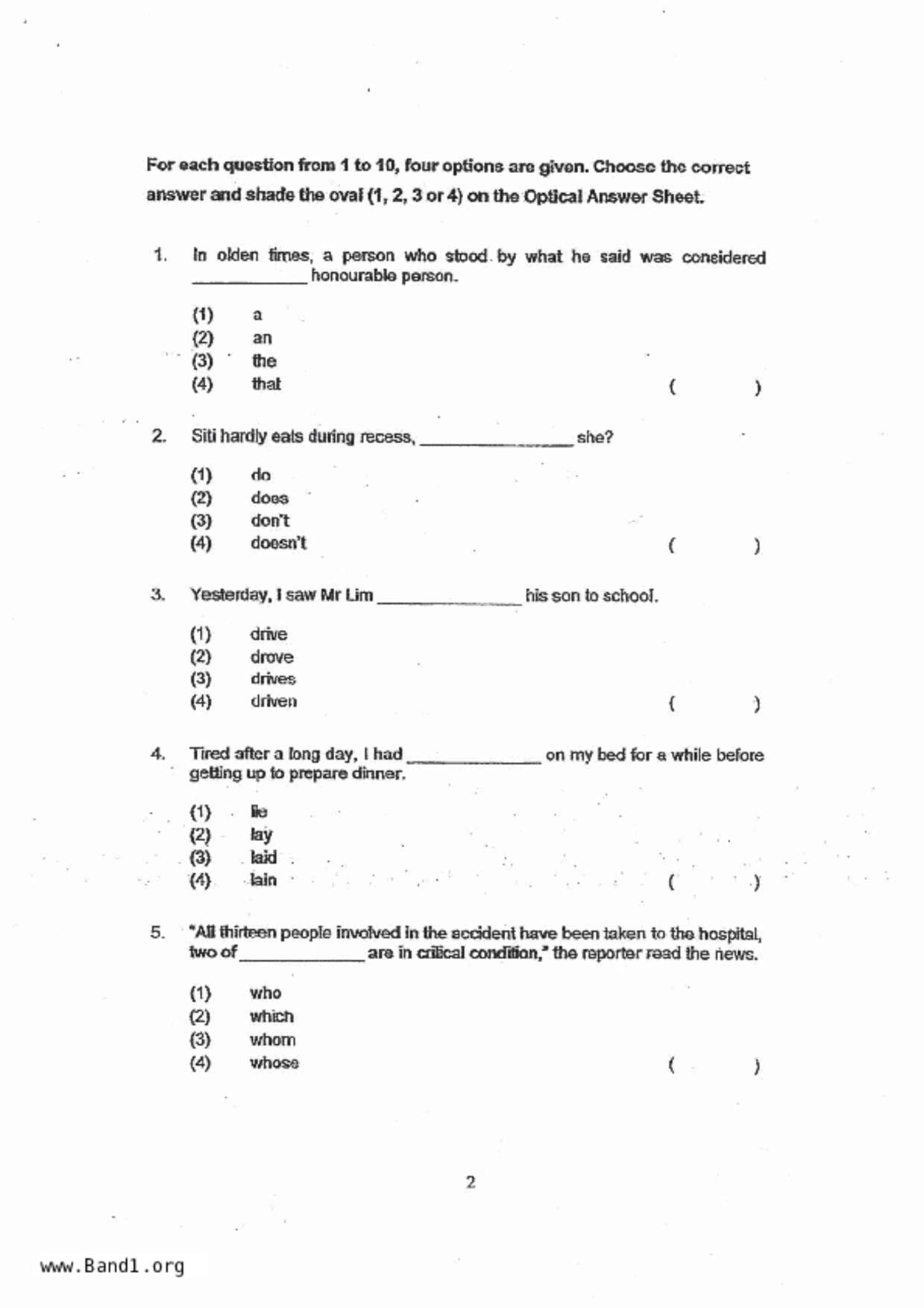 小六 英文 5-School Combined (Hokkien Huay Kuan)