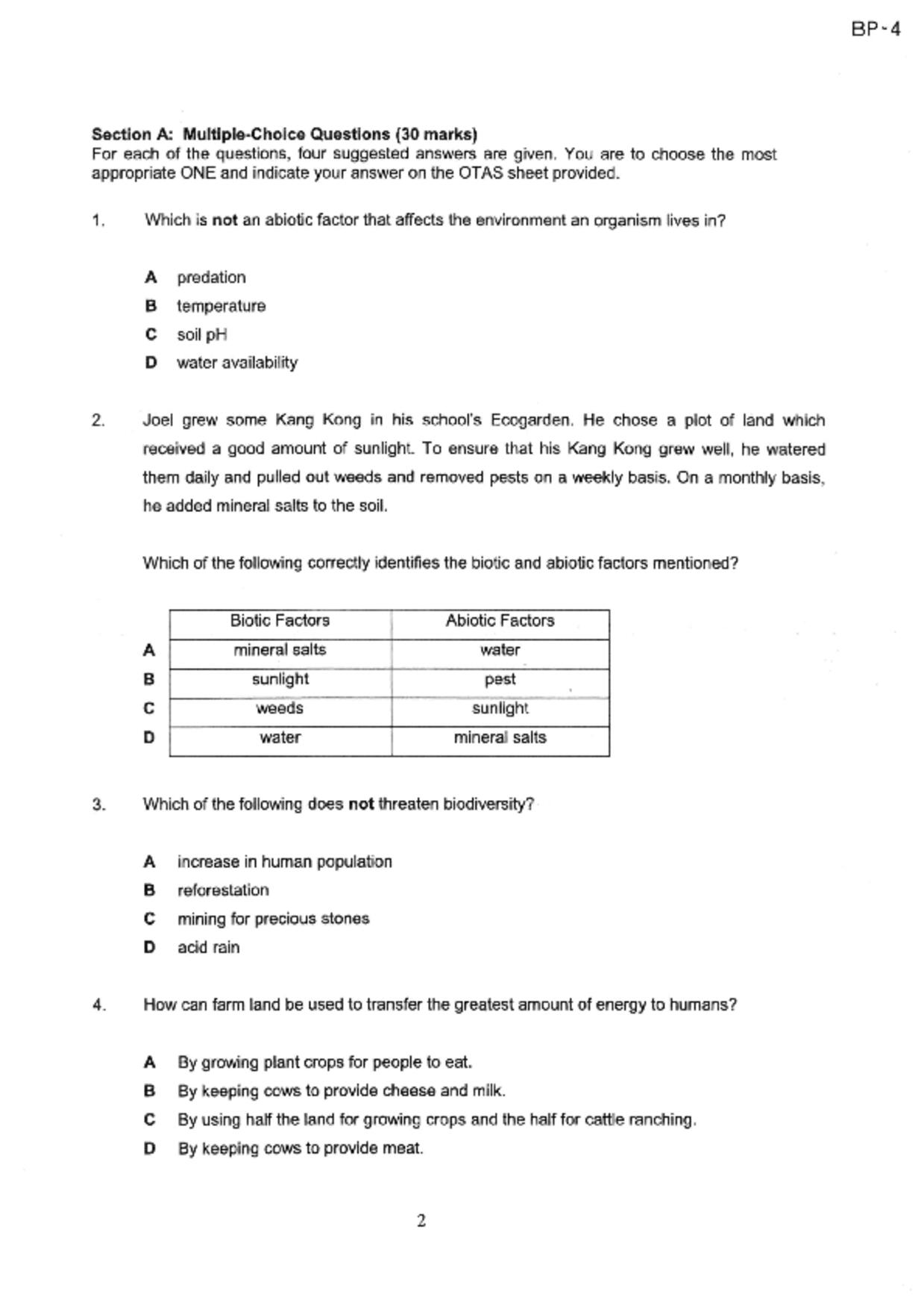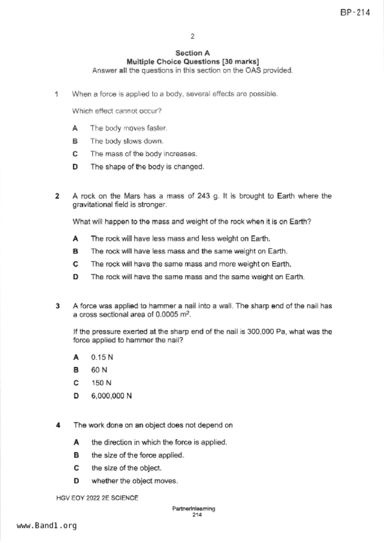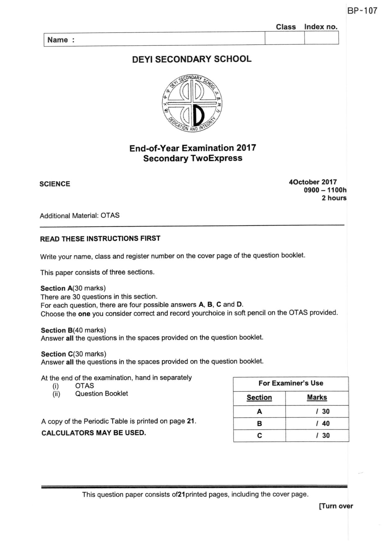 新加坡 中二 科學 (SG S2 Science) 試卷 pdf