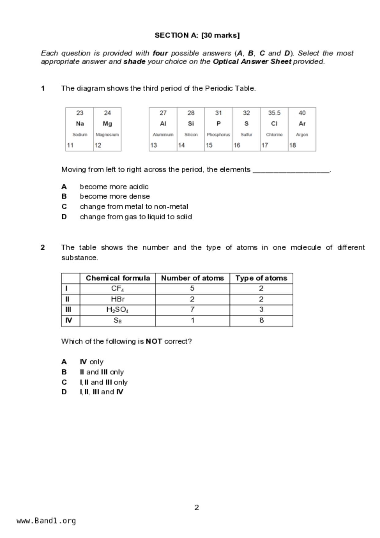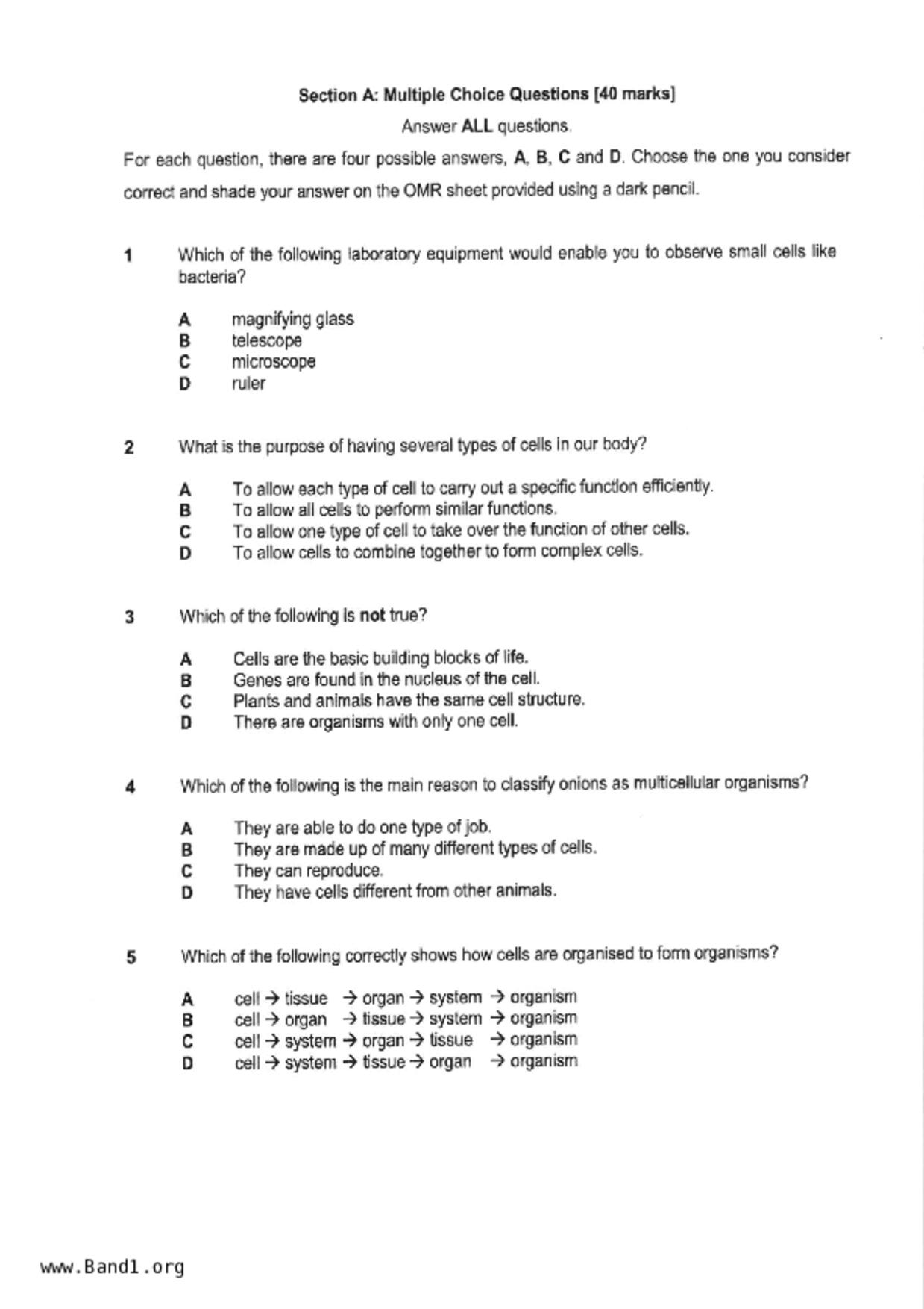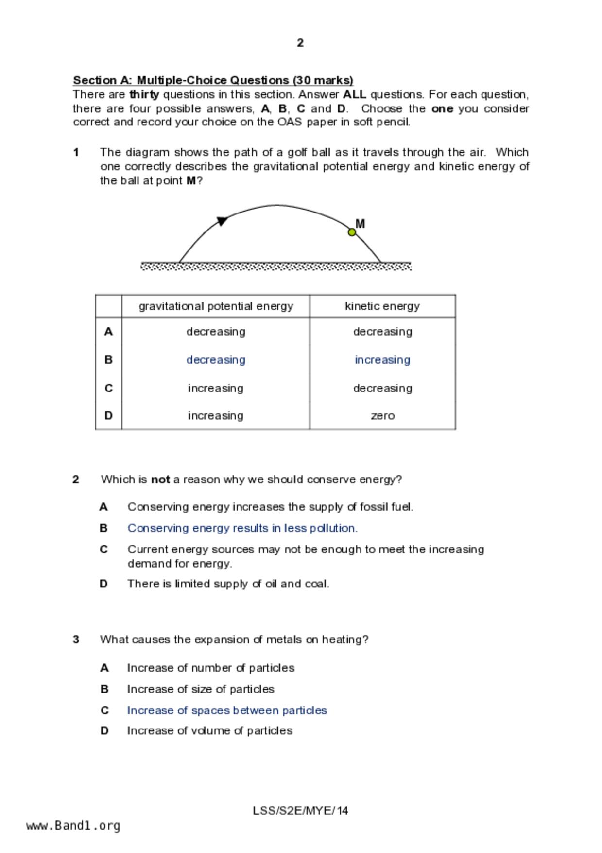 新加坡 中二 科學 (SG S2 Science) 試卷 pdf