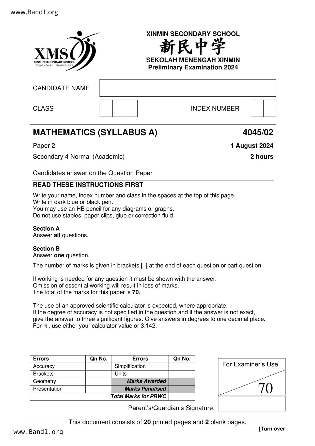 中四 數學 Ahmad Ibrahim Secondary