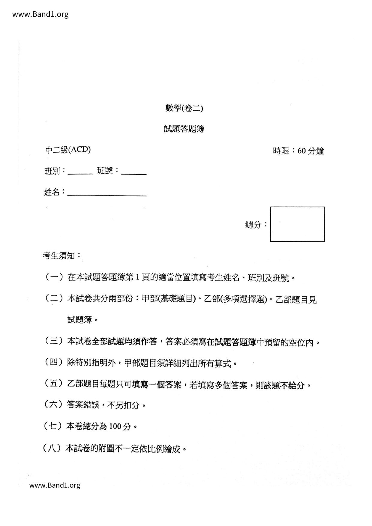 香港 中二 各科 (HK F2 maths) 試卷 pdf