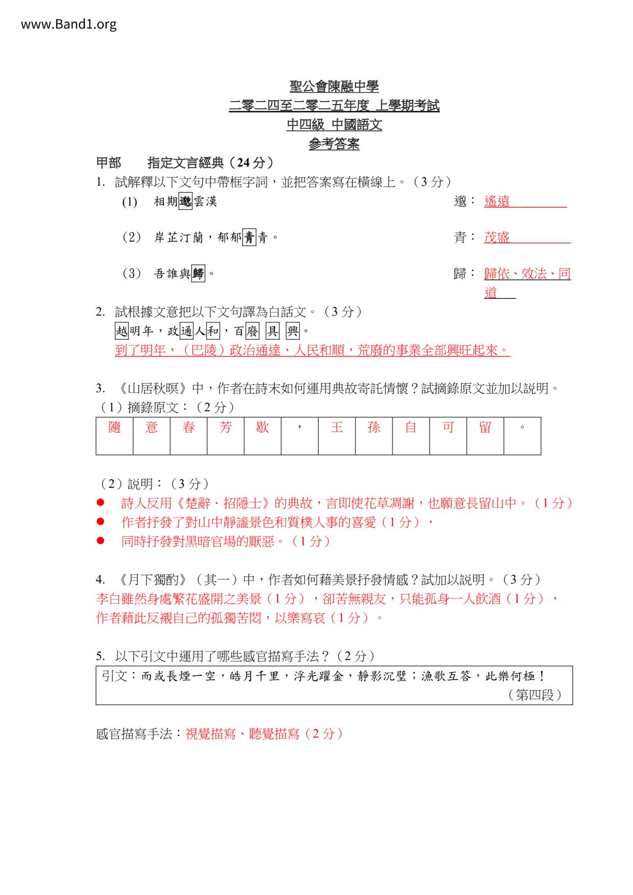 香港 中四 中文 (HK F4 Chinese) 試卷 pdf