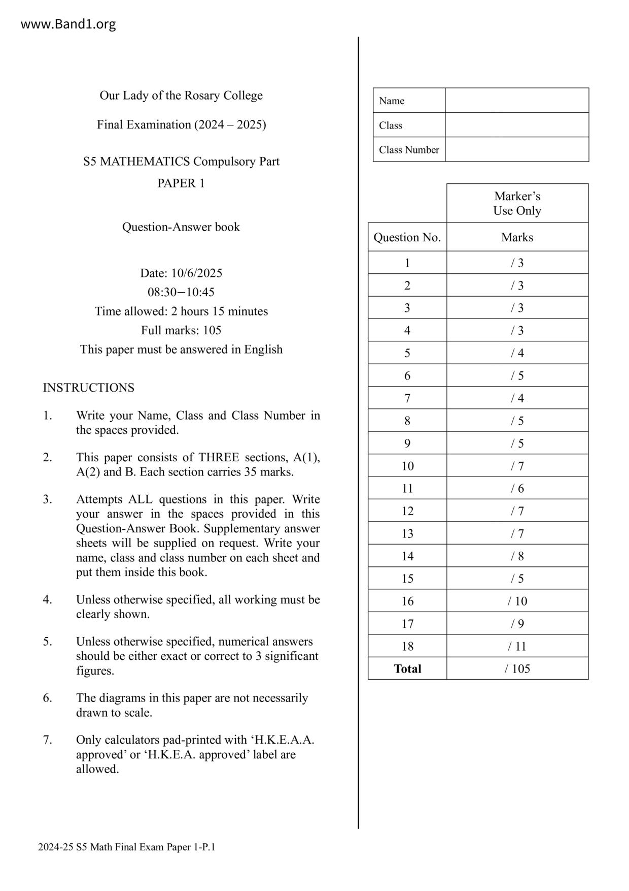 香港 中五 各科 (HK F5) 試卷 pdf