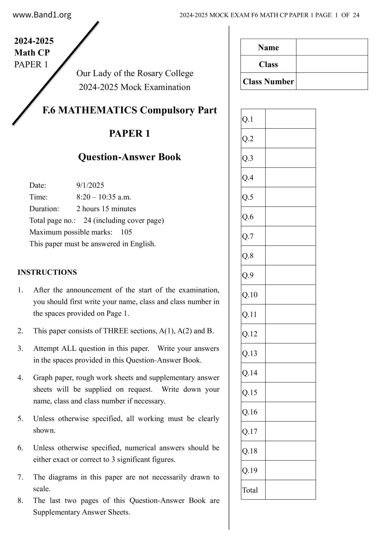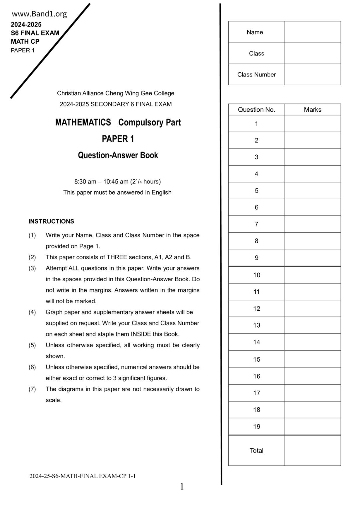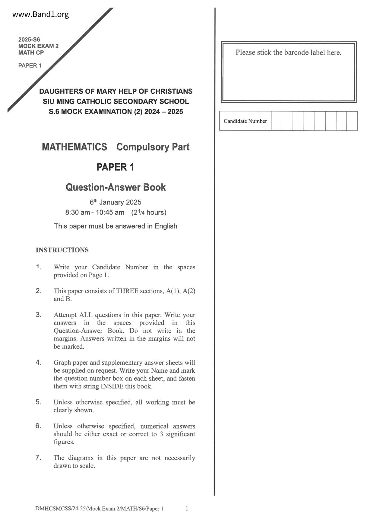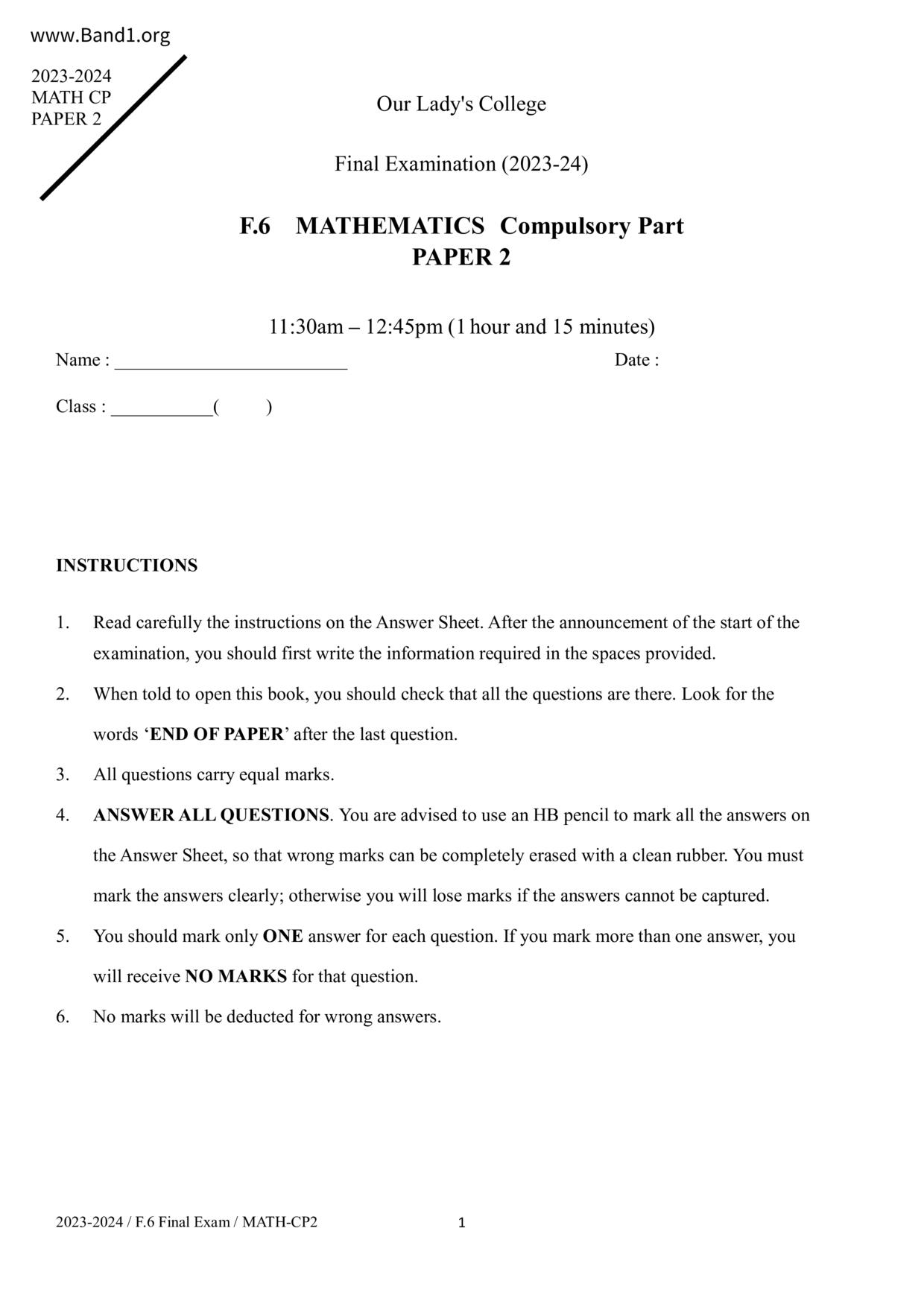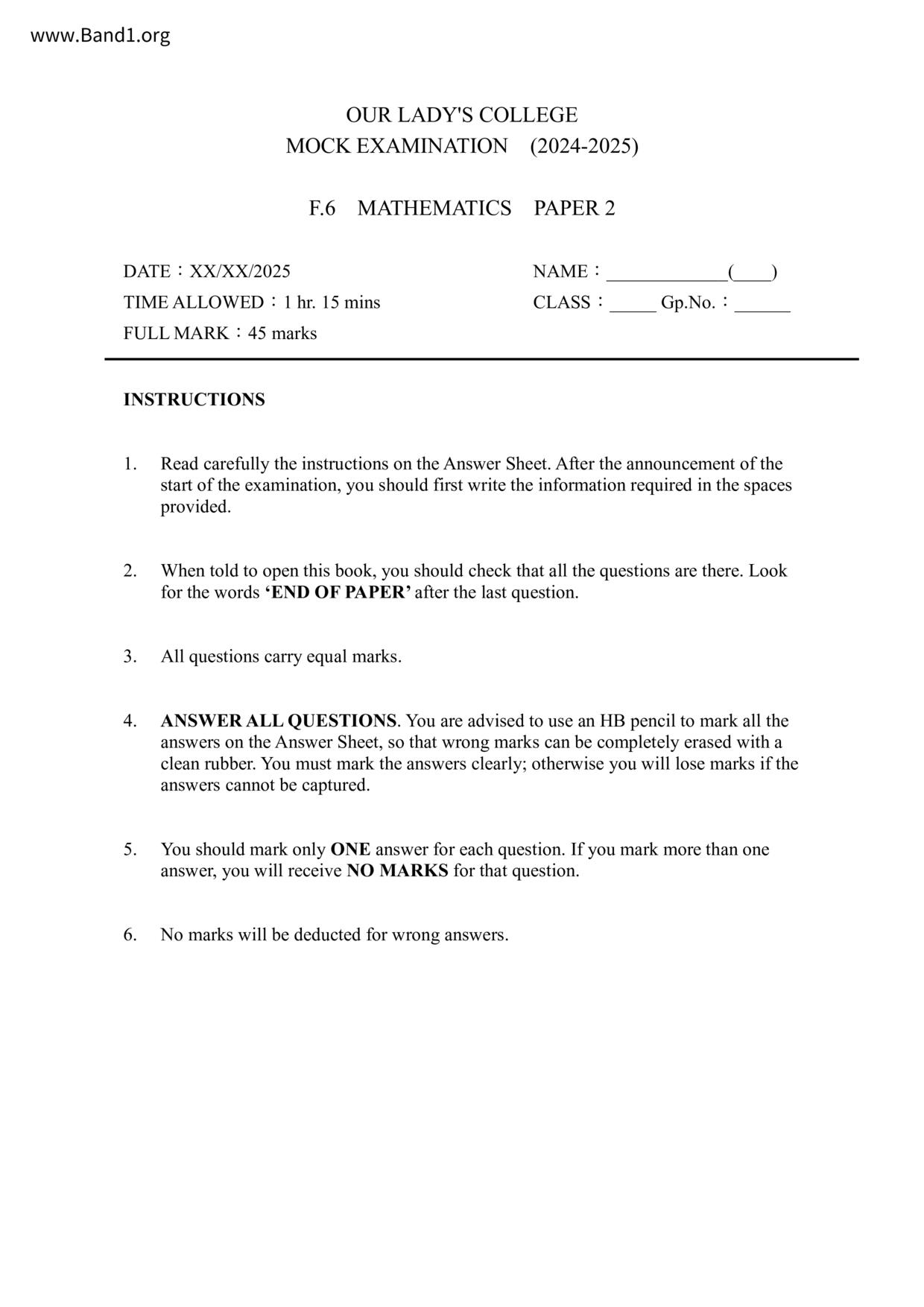 香港 中六 各科 (HK F6 maths) 試卷 pdf