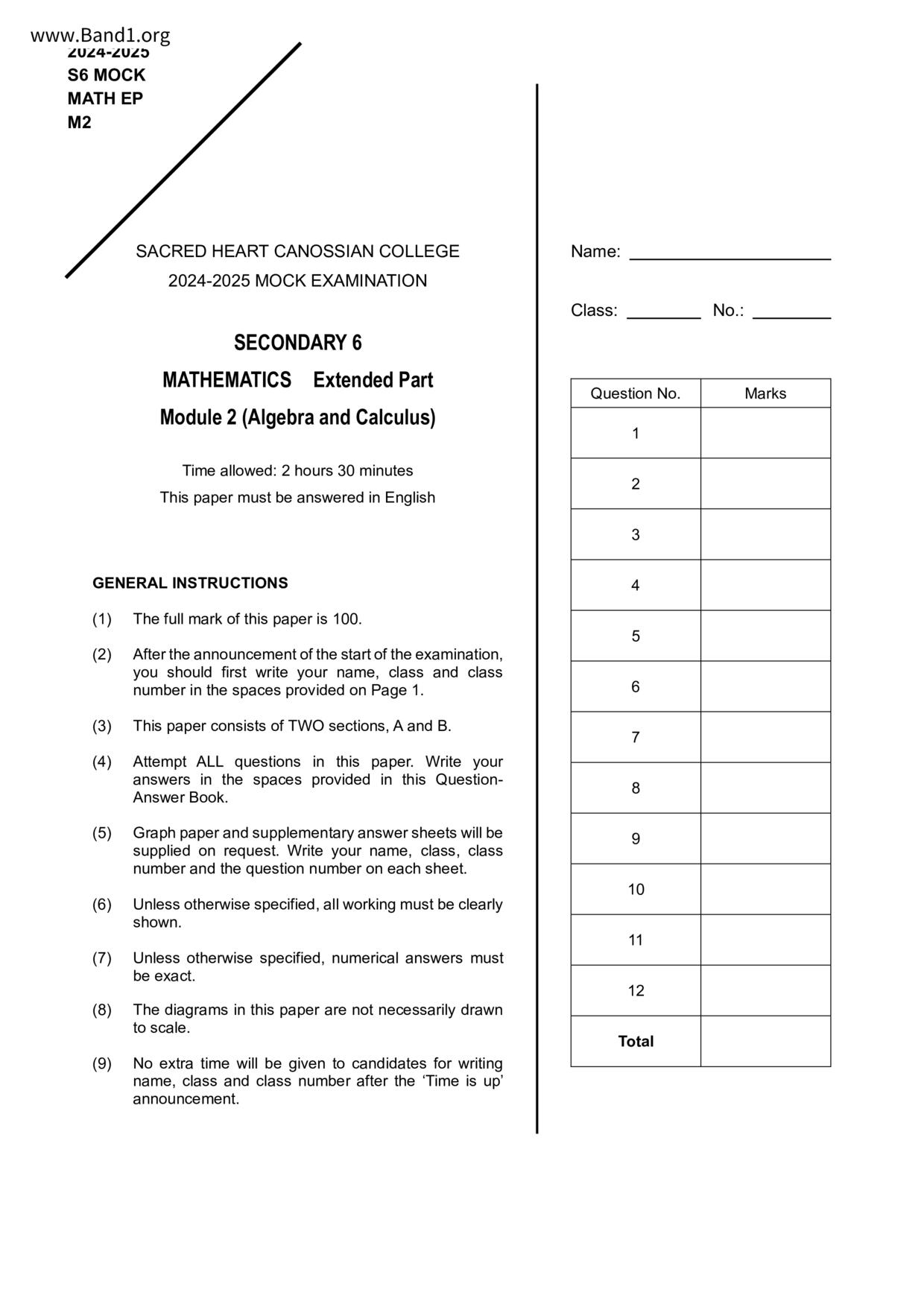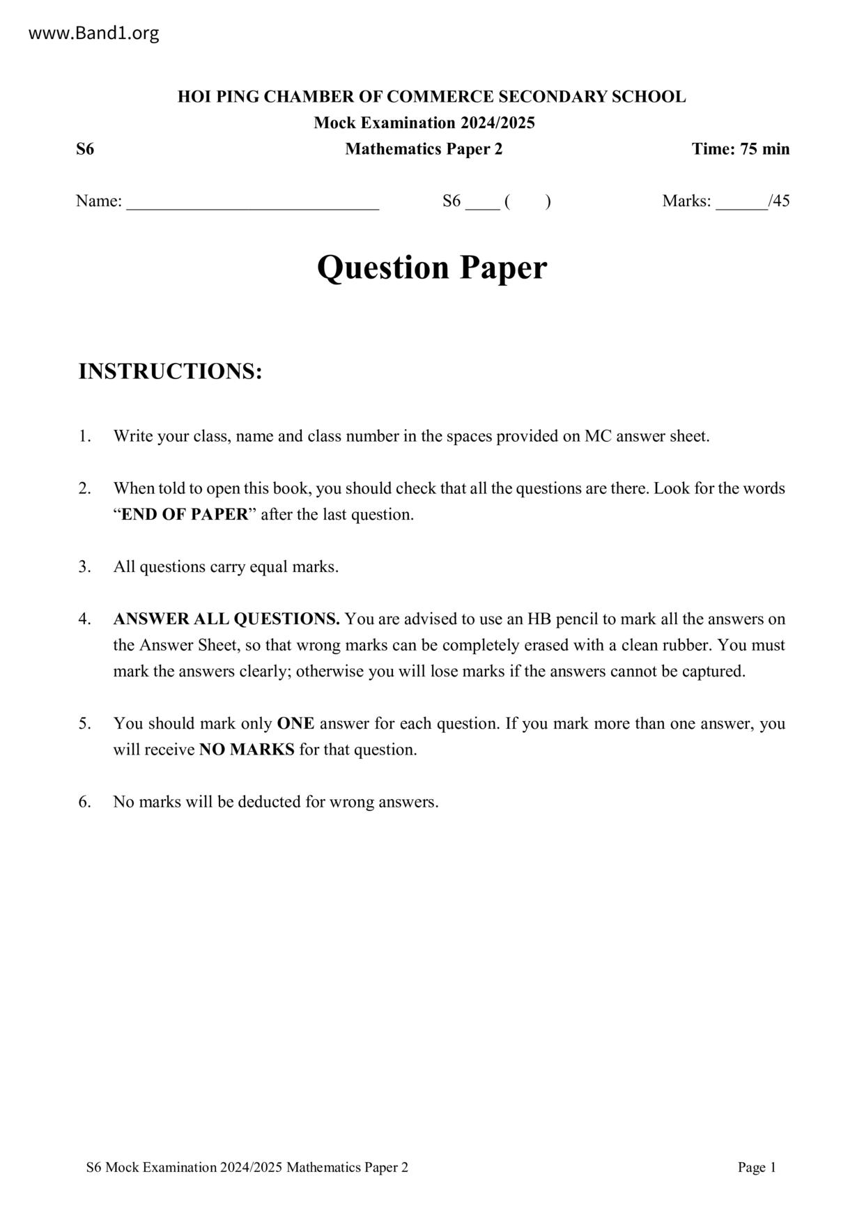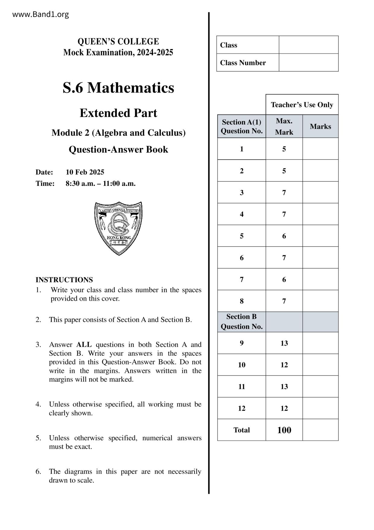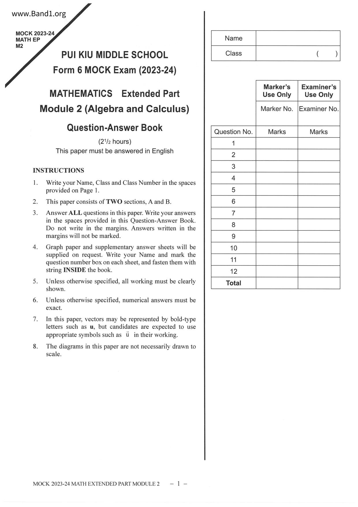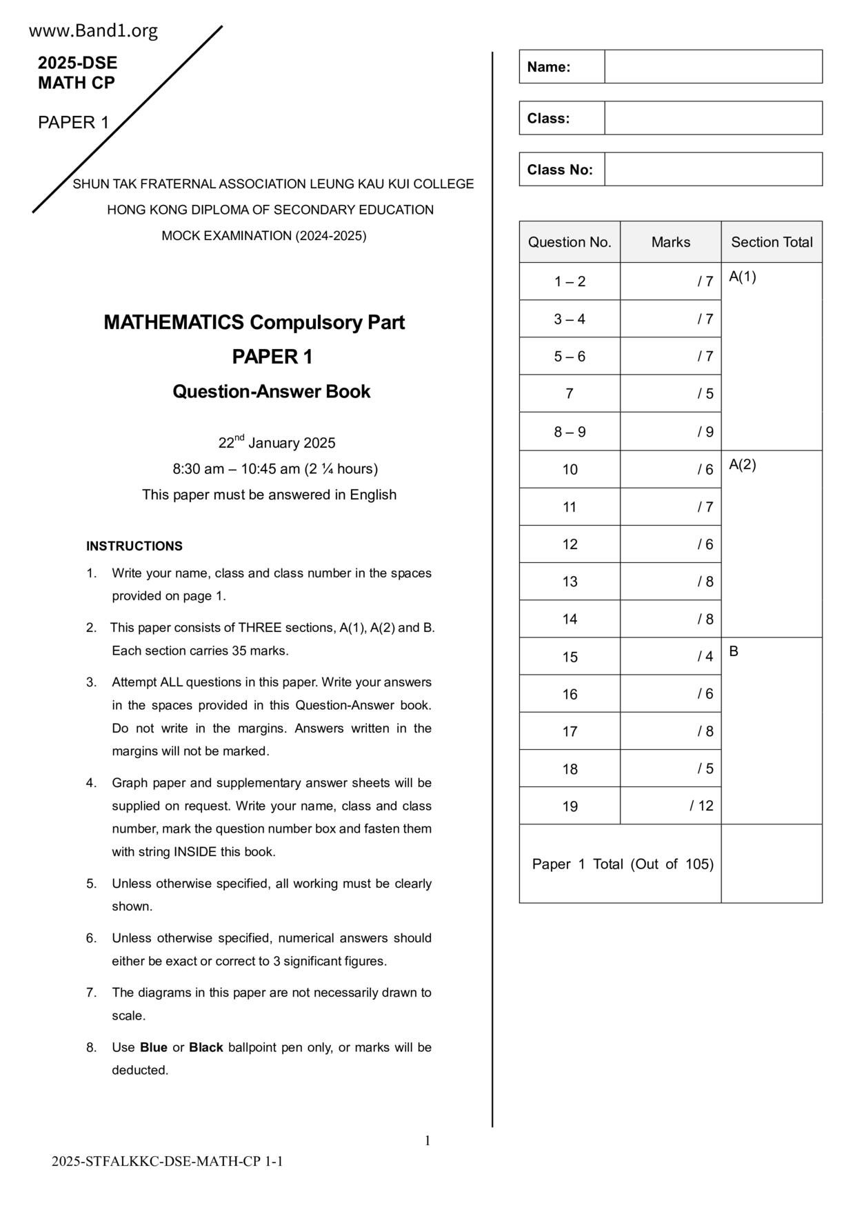 香港 中六 各科 (HK F6 maths) 試卷 pdf